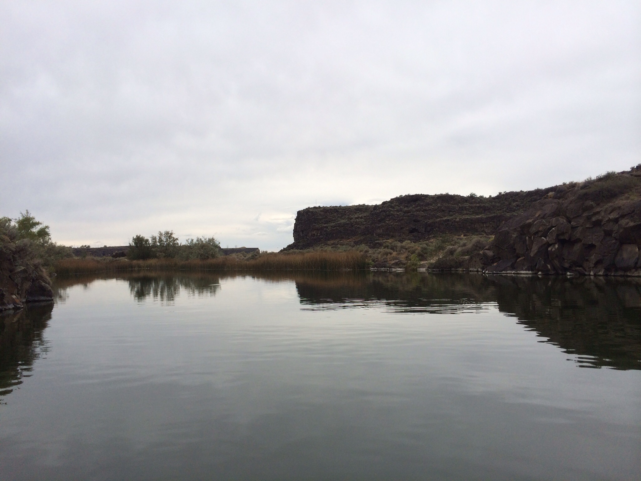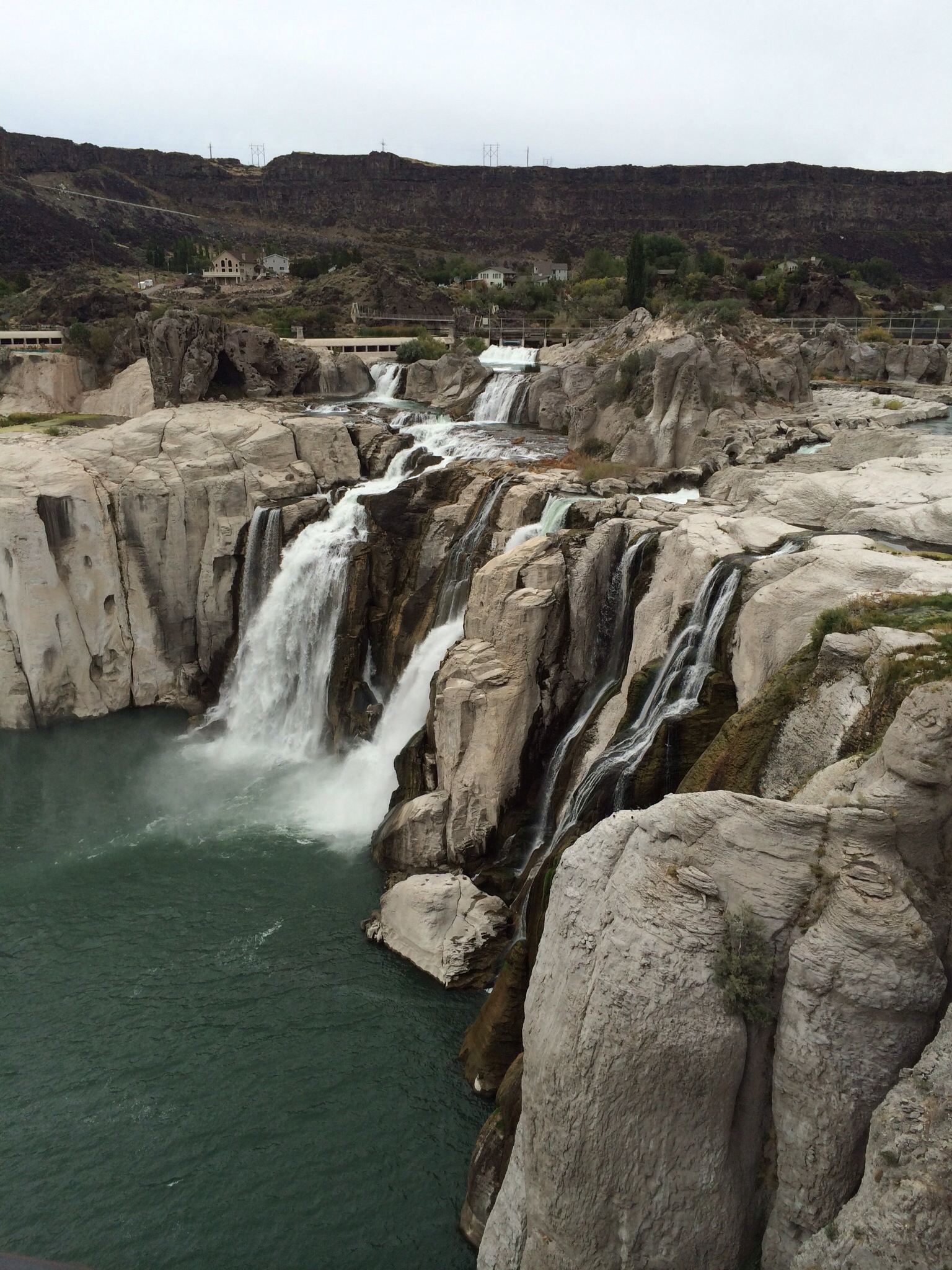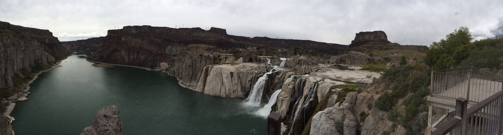 Funny thing is from there on the scenery got prettier although the horizon looked bleaker. I turned off towards Twin Falls as I had a desire to see Shoshone Falls. As I approached the Perrine Bridge there was a viewpoint and I quickly jumped out to take a shot of the Snake River. It was so green and lush around it.