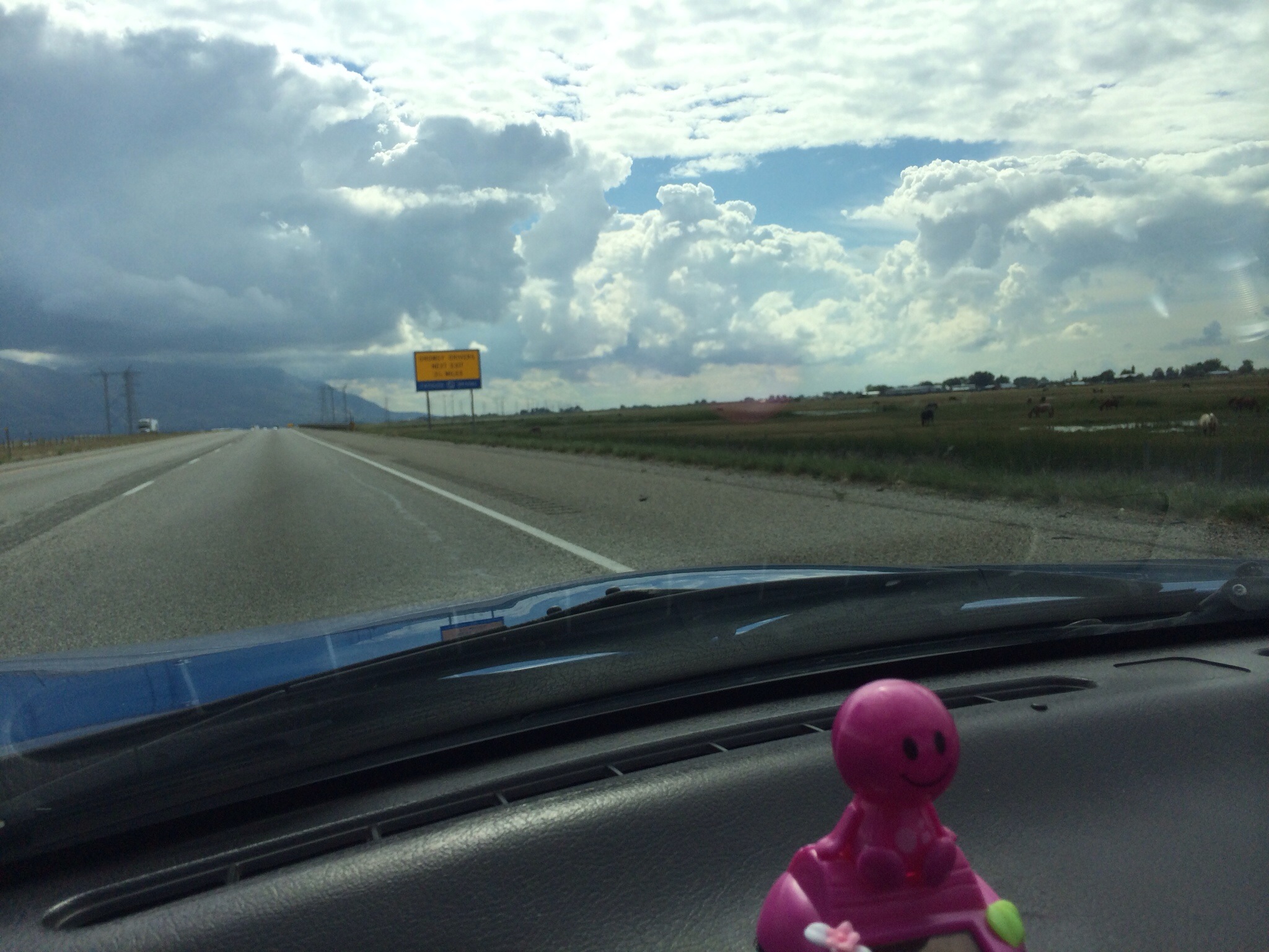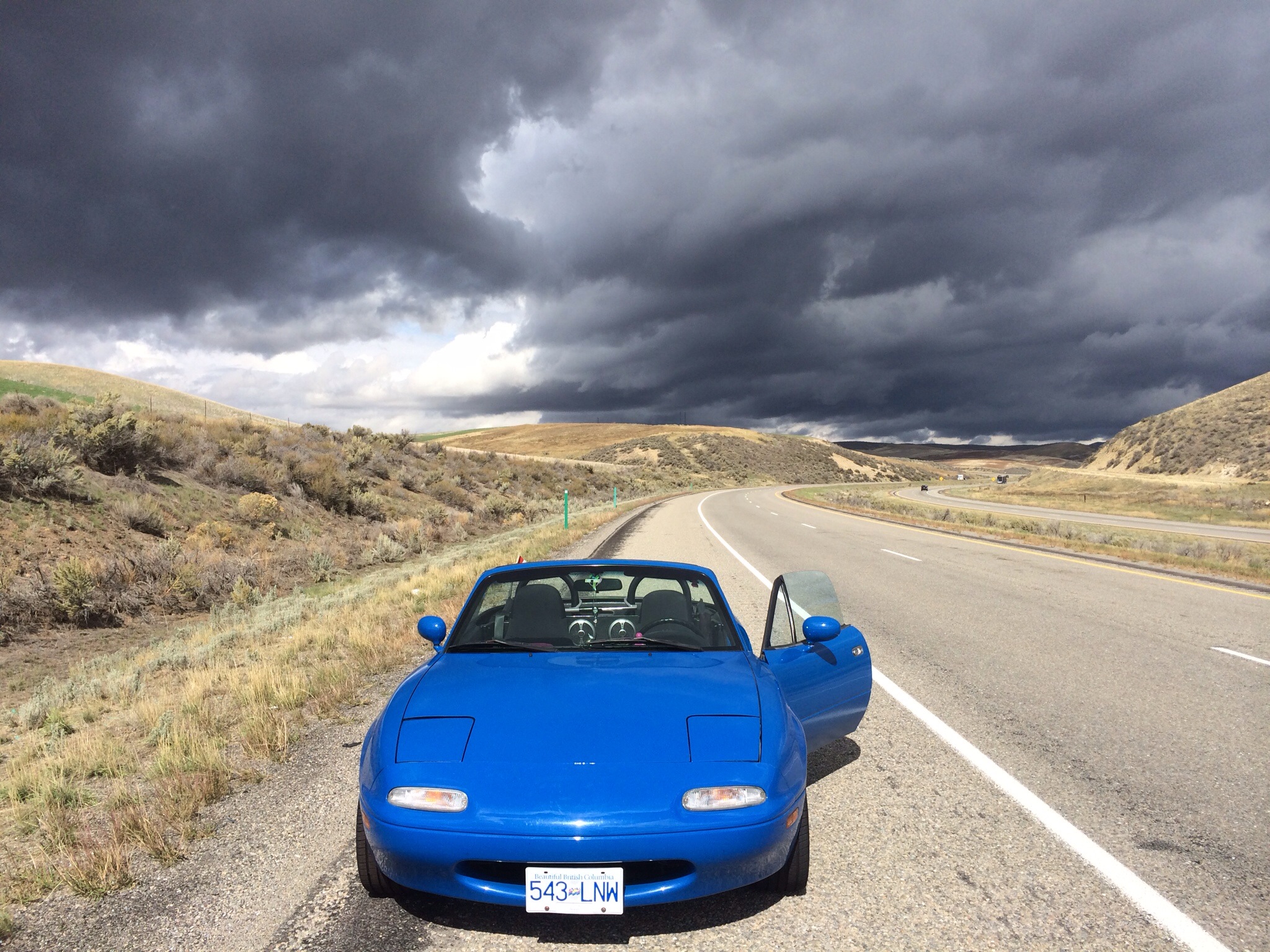 It took me 1 hour to outrun the rain and another 20 until I stopped to drop the top and take a picture facing back to Idaho…