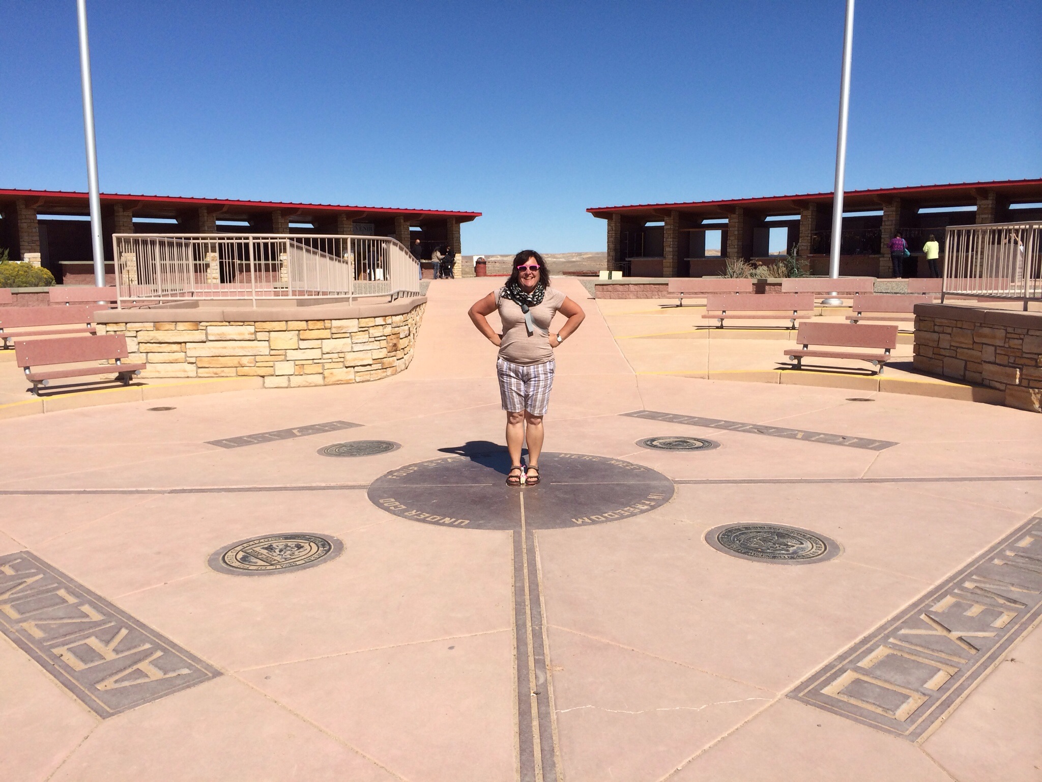 we arrived at a less than impressive muddy parking lot with a market surrounding a ‘monument’. It cost $5 to get in and was so worth it, lol Four Corners Monument allowed us to stand in all four states, Utah, Colorado, Arizona and New Mexico at the same time