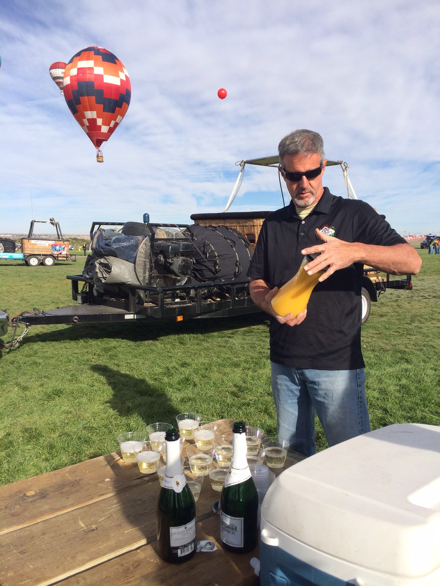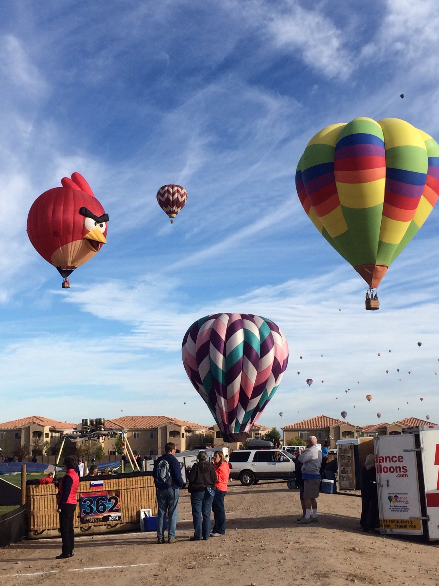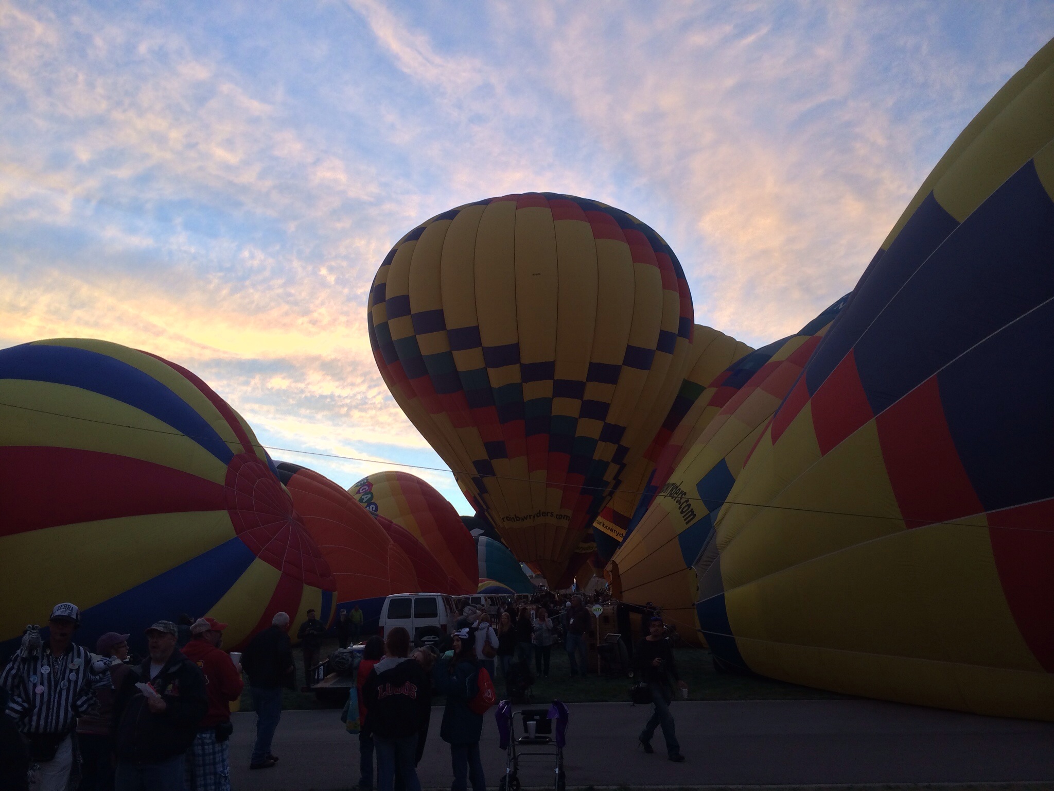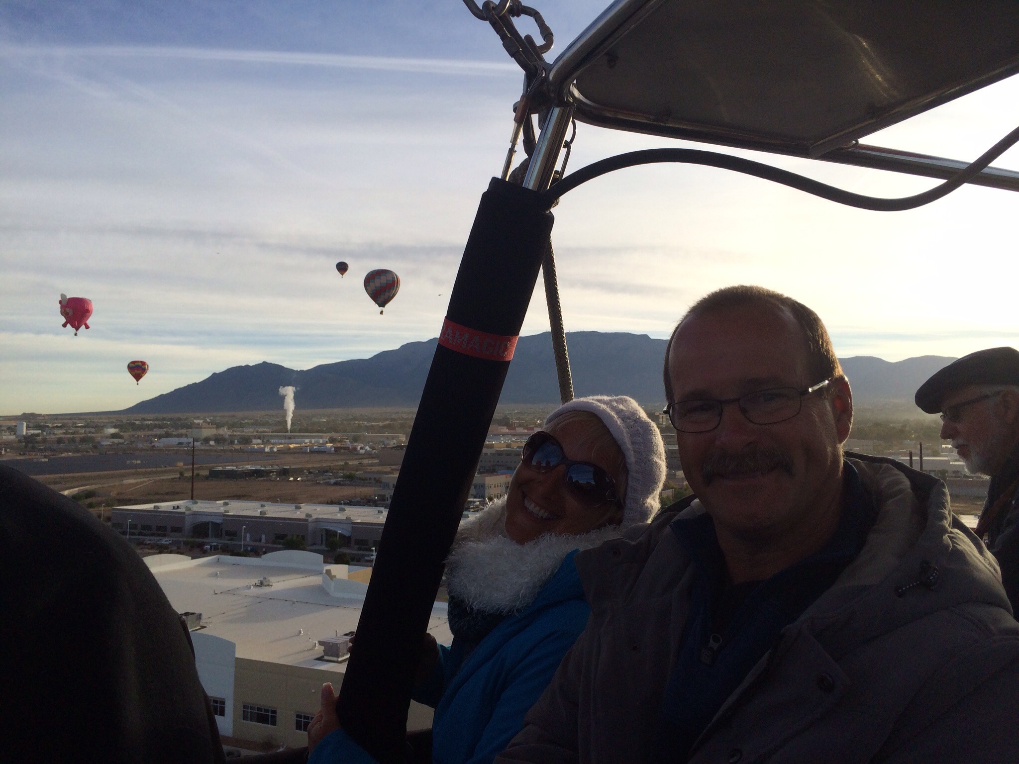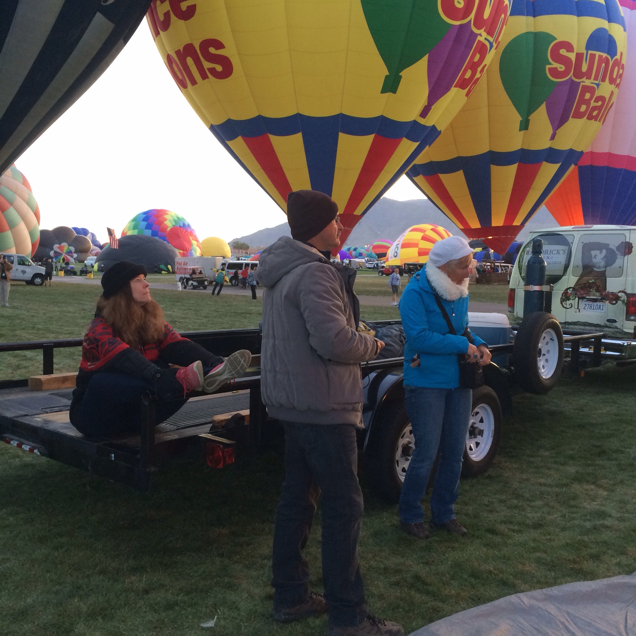 Up at 3:30 am and off to ABQ again with Celia (bless her for driving us around), Colin and Wendy. Way fewer people so we were in early and got signed in for our ride. Found out we were to be with Pilot Pierre Brunner in the Hendricks Gin balloon, oh the irony. I do love my G&T and it is the only screen printed balloon with matching chase vehicle. It is also one of the larger ones. First we watched the few dawn patrol and then got excited as the bright moon shone over the filling balloons. This was a very good sign!