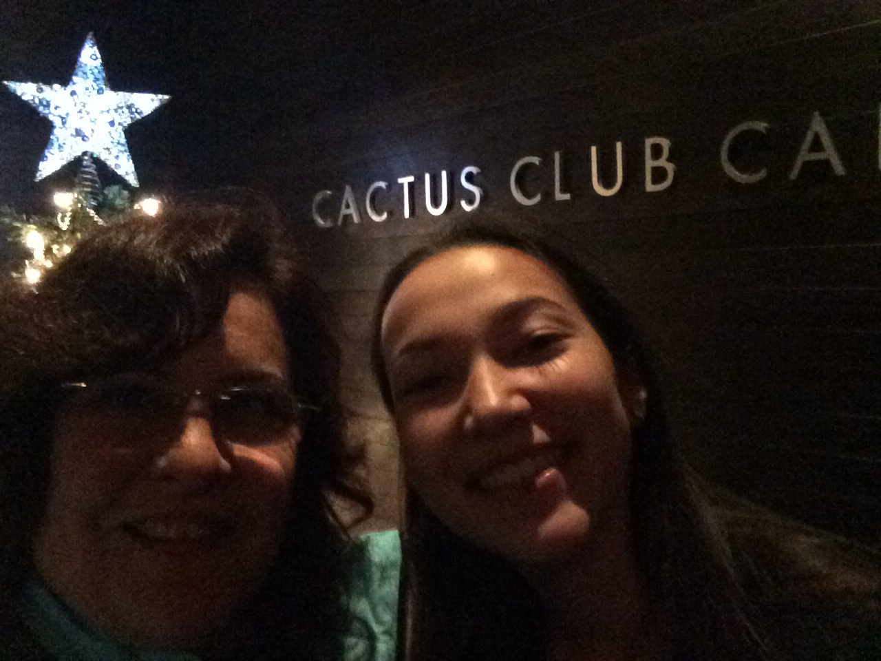 It was so nice to have a visit with Susan, my used to be ‘sister in law’ and the I got to keep them in the breakup, niece and nephew Ashley and Alex. Cactus Club was good and Sue treated! By now I was once again getting to the nod off stage and we headed back to Moms. I had to review the lists of which I had many. Most things are checked off or will be tomorrow. The minute I am checked in Wednesday I will actually remember to exhale and feel as though I am on holidays. I had two quite similar but opposite people moments. While in line at Toys R Us, I paused momentarily to reach for a stocking stuffer and the woman and her family behind me went in front! I chose not to say anything and their transaction went on far too long as we waited for manager overrides, etc. I was annoyed by it all. While in line at Walmart in the 12 items or less line, a pair of ladies was behind me chatting and one started to go around me but stopped suddenly and apologized. I turned and said ‘after today I was getting ready to trip you’. There was a pause and they both broke out laughing which lead to a chat about the holiday season.