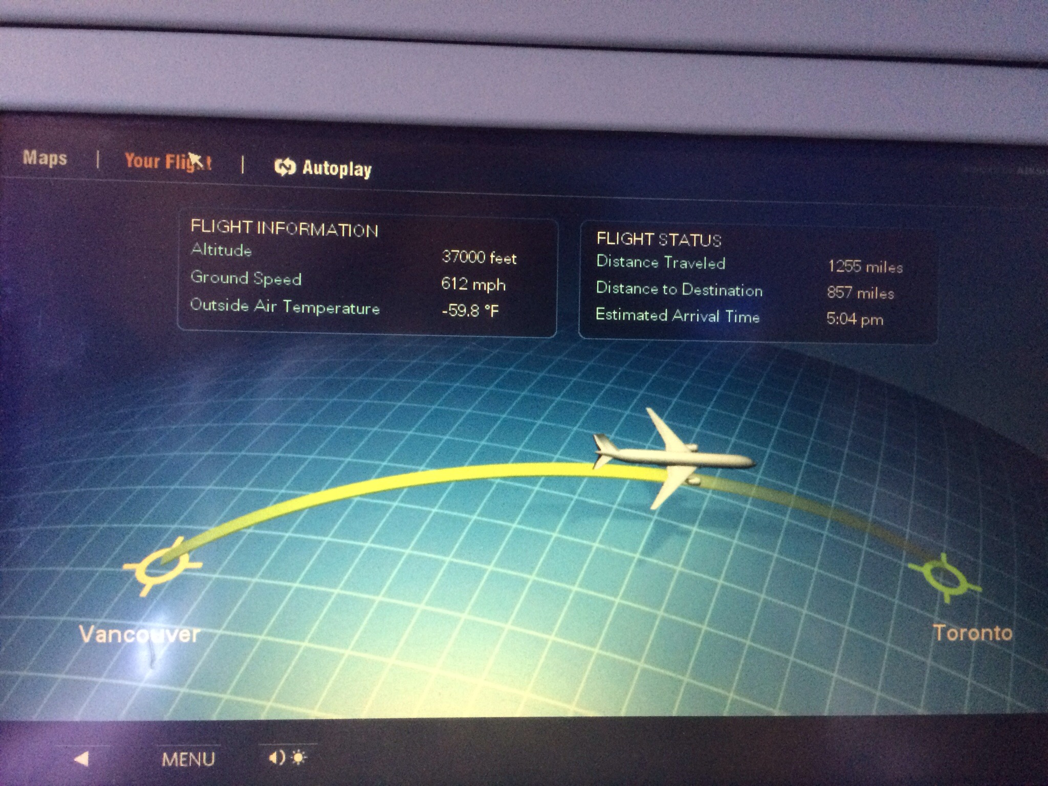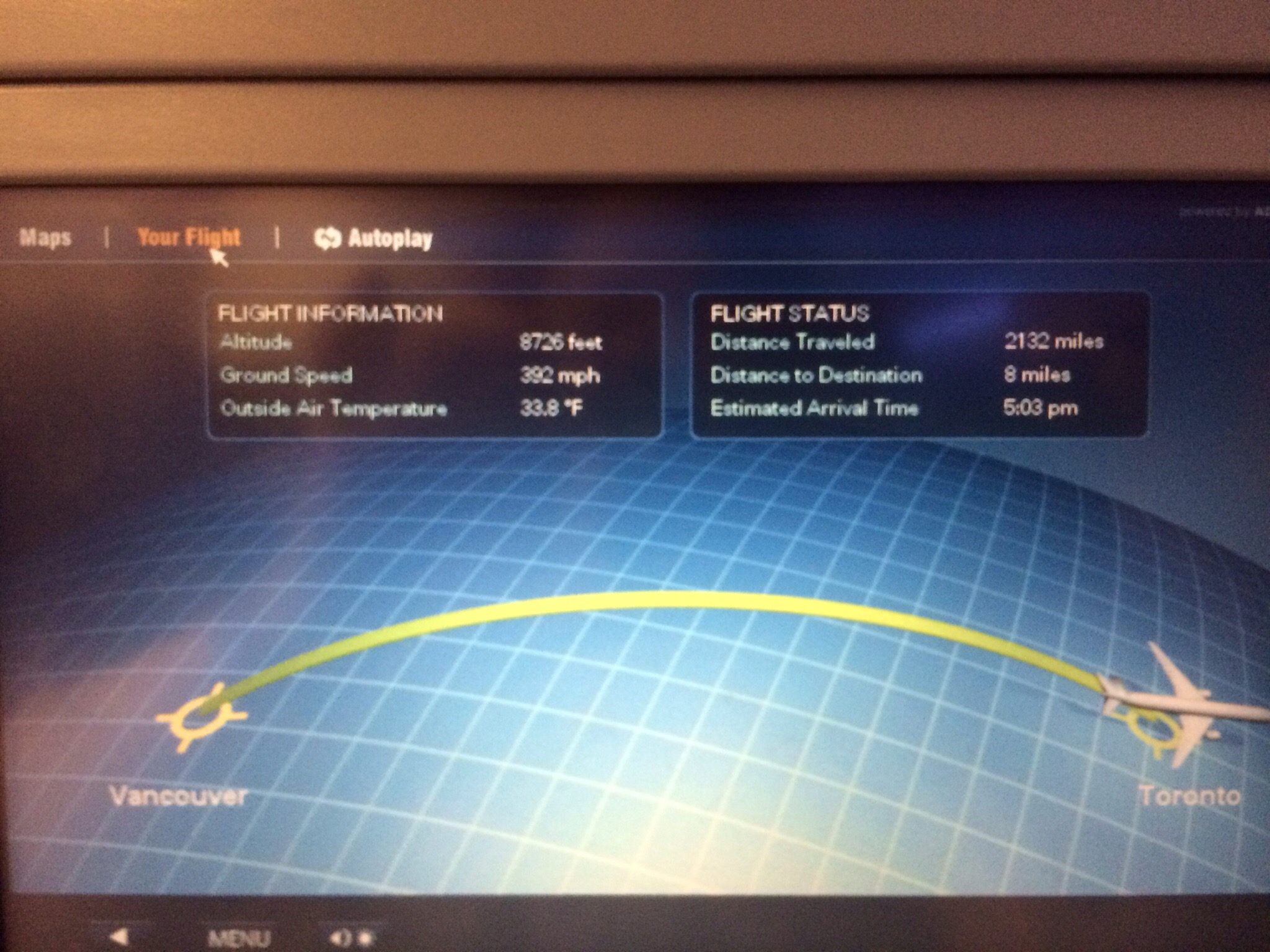 while I watched The F Word with Daniel Radcliffe. Having left half an hour late we were late arriving in Toronto but I really enjoyed the tracking map.
