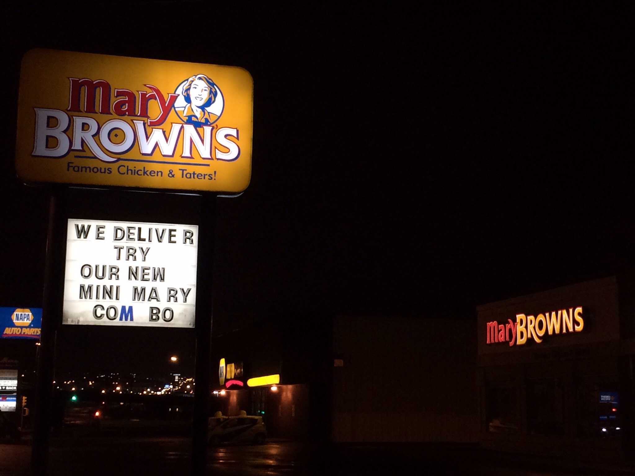 The last stop of the evening was to take a picture of a very popular chain here as one of the School Board members at home is Mary Brown