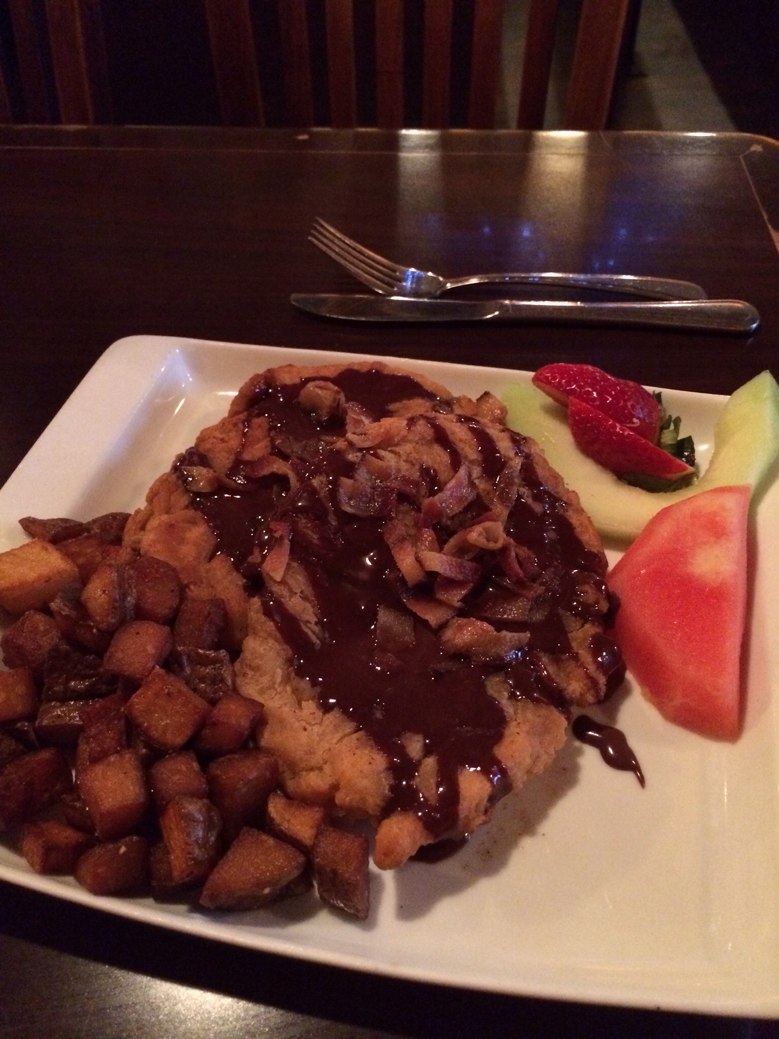 I decided to try the Toutons with chocolate but asked for the crumbled bacon too, which was good but I liked Ashlée’s better