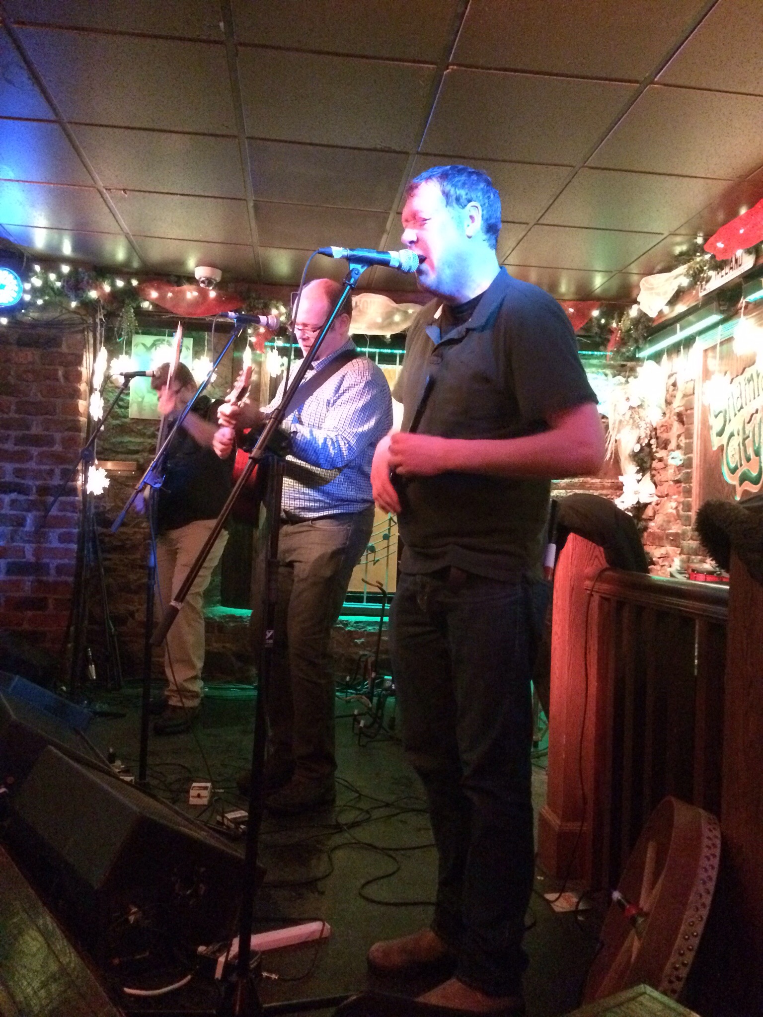 After everyone left we wandered up George Street looking for live music and everyone pointed us to Shamrocks. Ash was very happy to hear The Navigators would be playing as she wanted me to hear them. Only problem, in NL style, they weren’t starting until 11! We decided to hang for a bit, have a snack and a drink and see how long we lasted as she has to work tomorrow. Suddenly I looked across the room and said, hey I know him. I guess I pointed too as ‘he’ came over. It was the bass player from Shanneyganock, Bob Pike. He sat and chatted with us for a great time, making the evening.