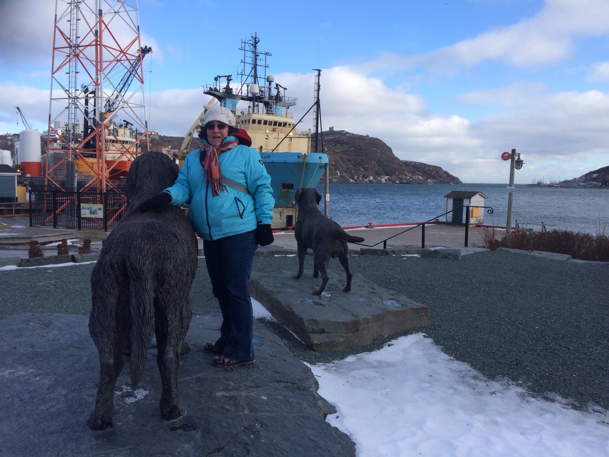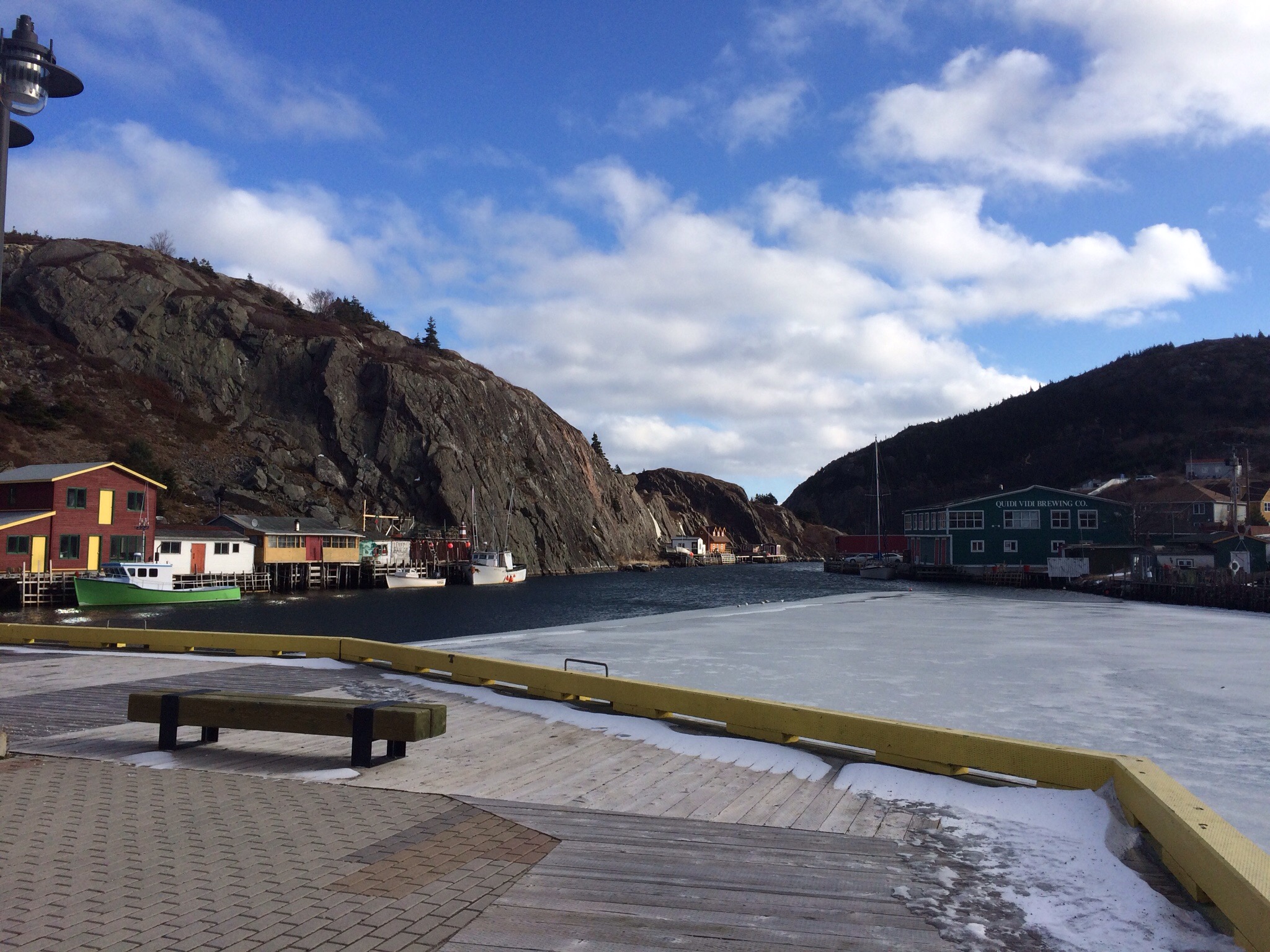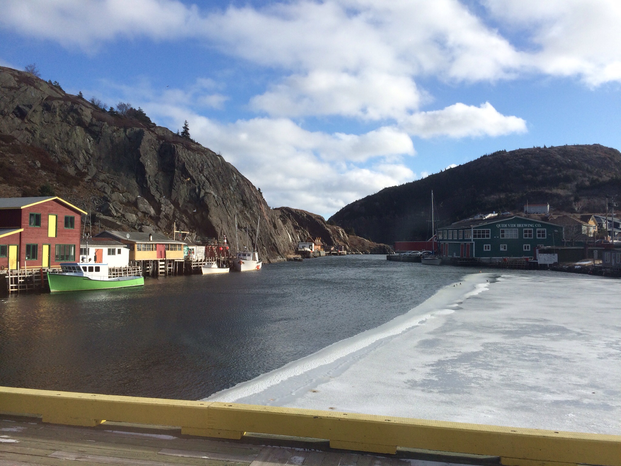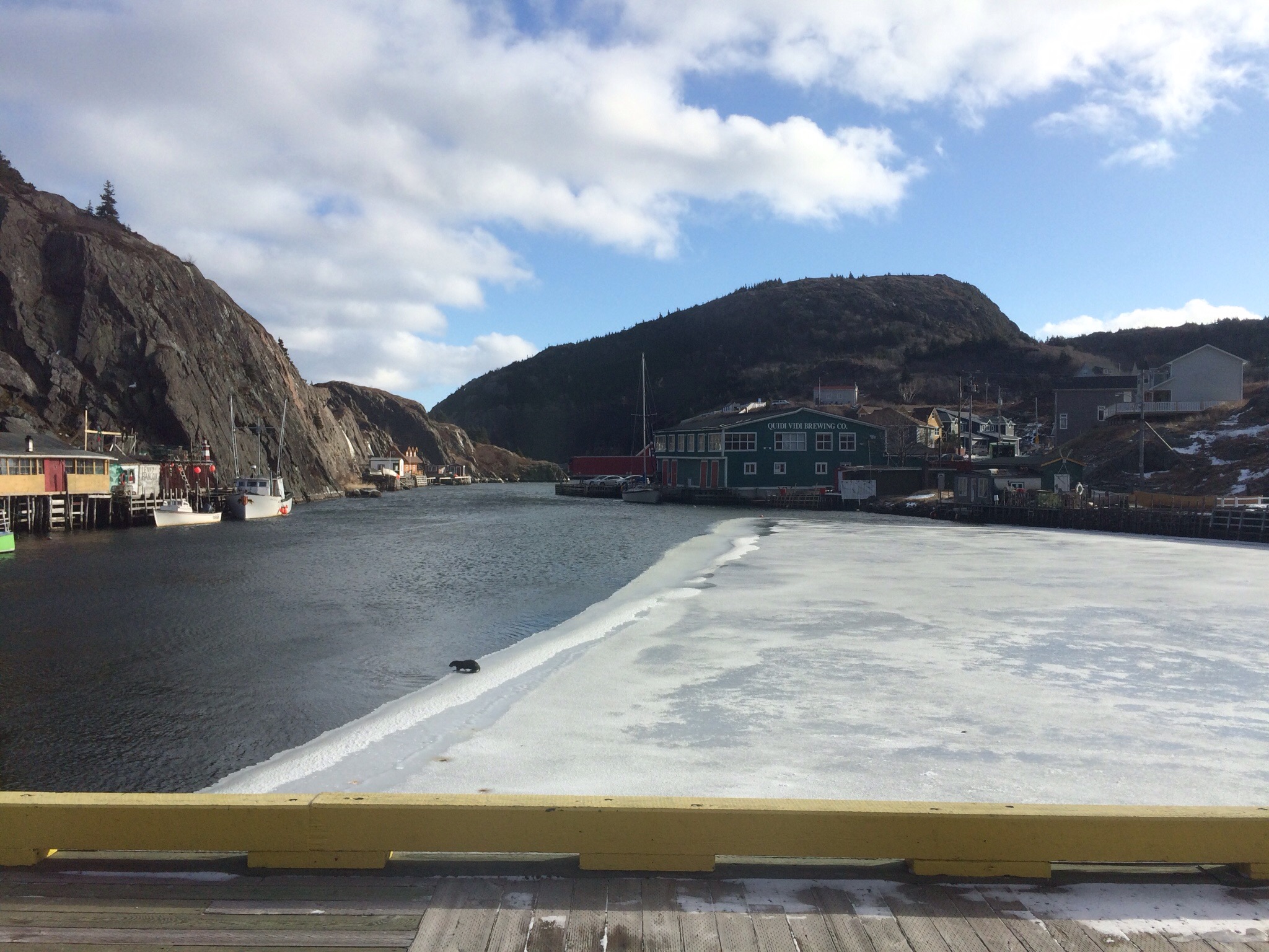 We dropped off Rati on our way to Quidi Vidi. It’s a blustery cold day but blueish sky. Quidi Vidi is simply lovely and it has the coolest narrows and a brewery that has cobalt blue bottles