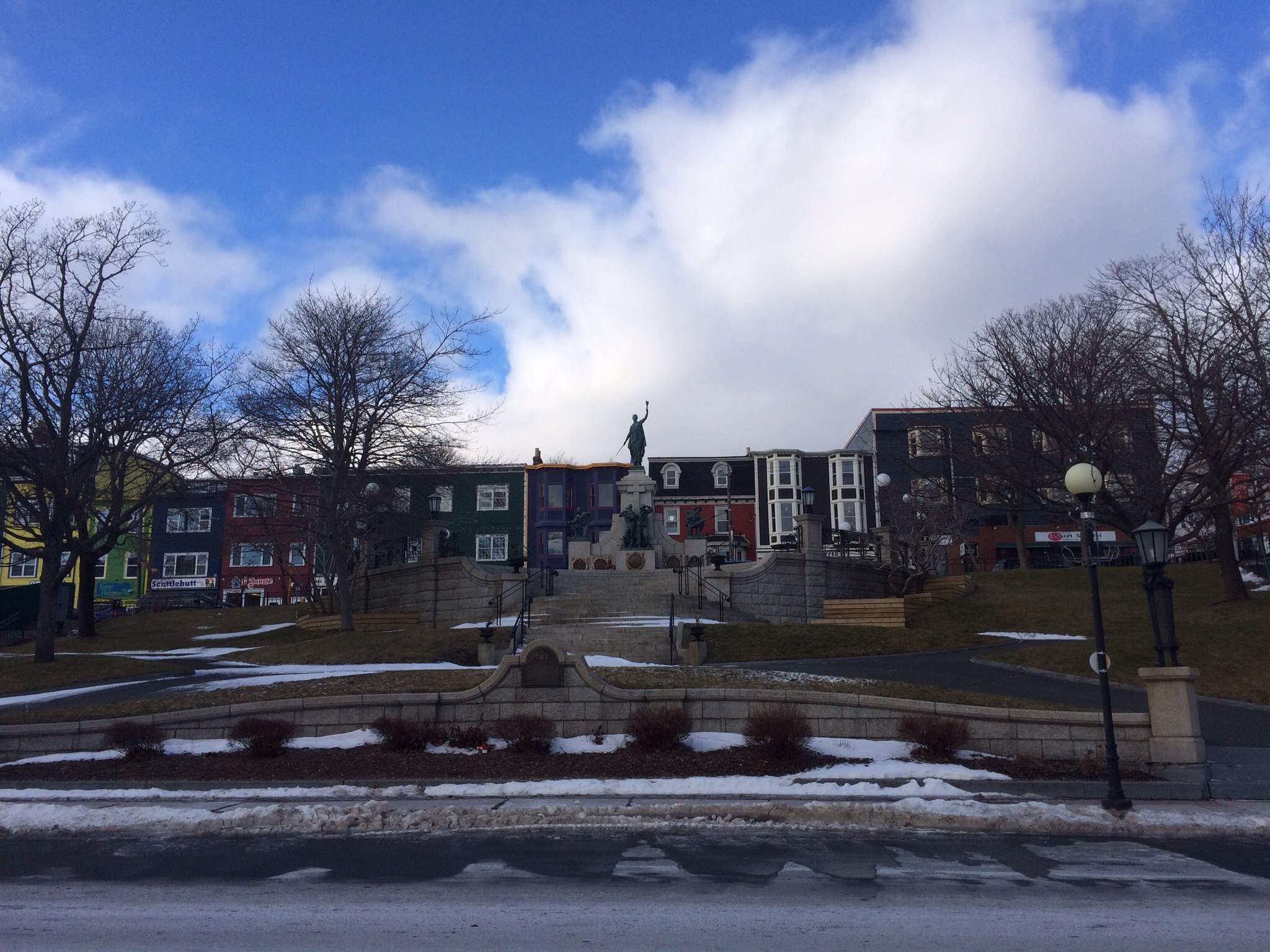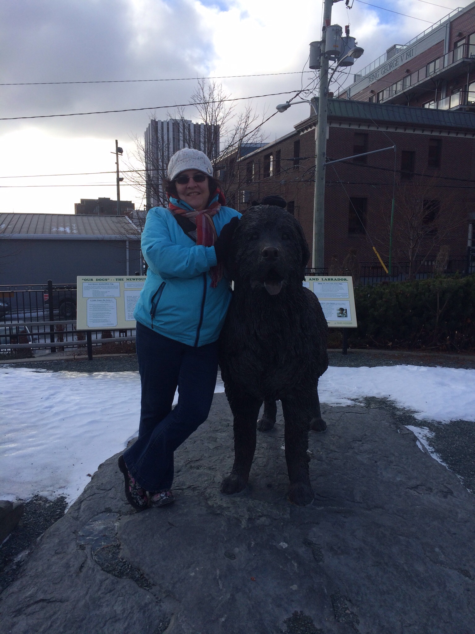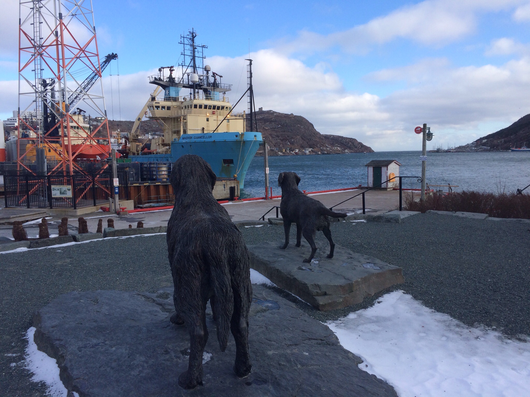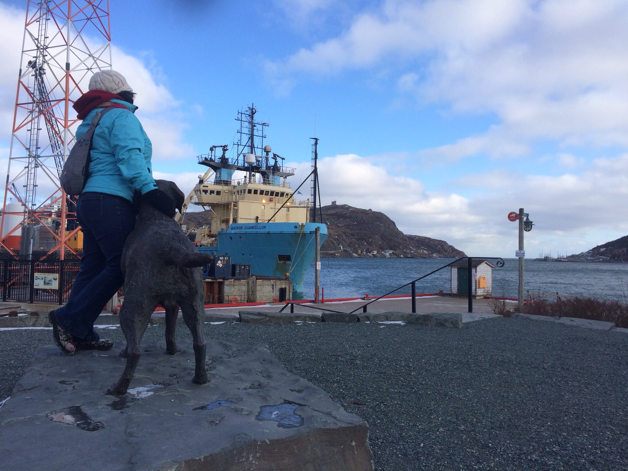 We dropped off Rati on our way to Quidi Vidi. It’s a blustery cold day but blueish sky. Quidi Vidi is simply lovely and it has the coolest narrows and a brewery that has cobalt blue bottles