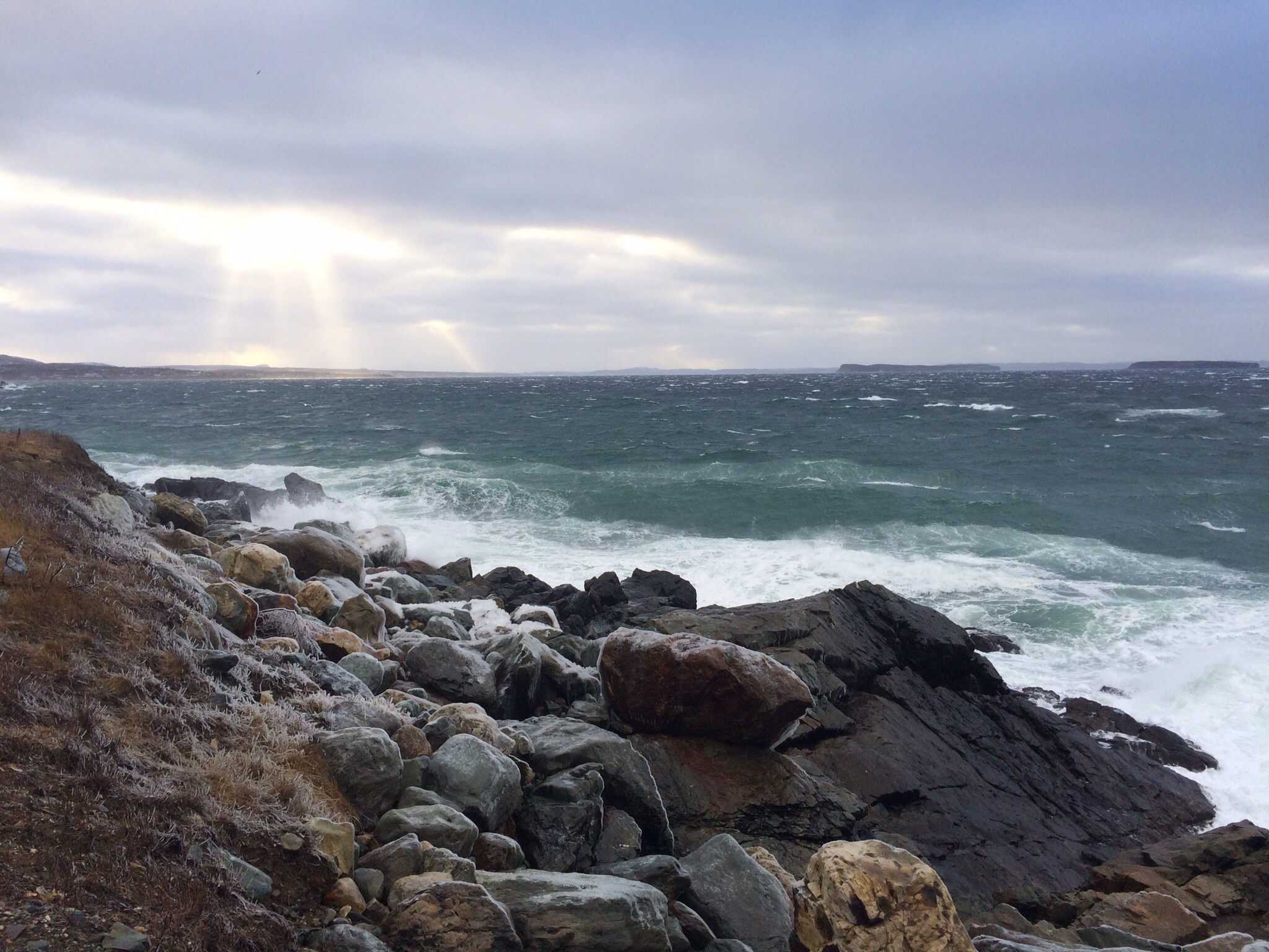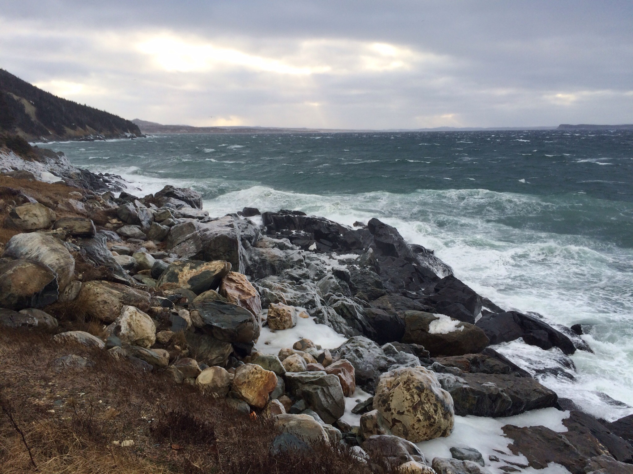 I picked up a few treasures at the brewery and then drove up to the battery (there’s sure a lot of them here) where we looked across to Cape Spear and the ocean was nasty although the scenery beautiful.