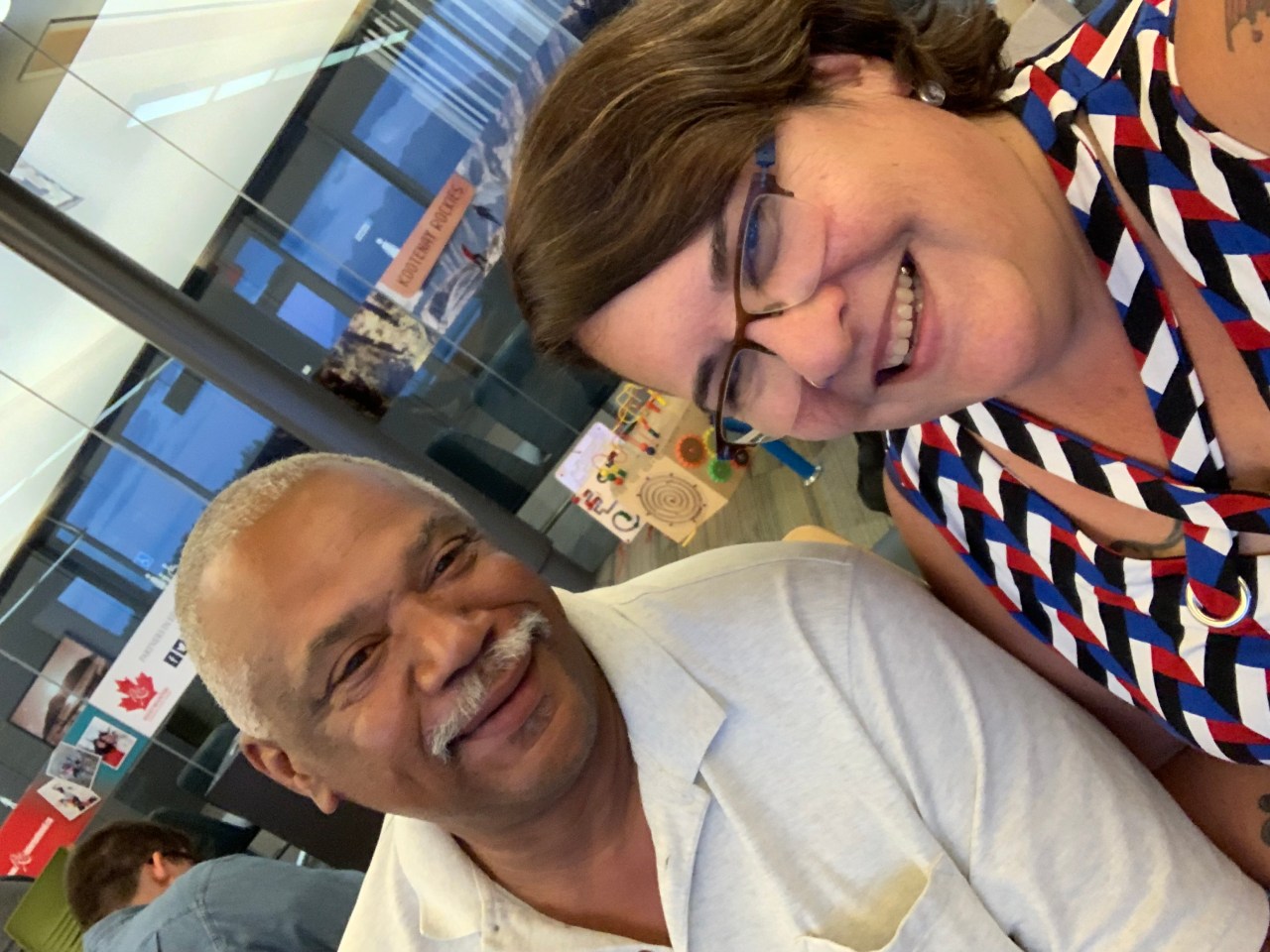 As the sun was setting, red sky at night, sailor’s delight crossed my mind. Jake dropped me and was about to drive off when the doors open and there was his co-worker (other Mom), Kim and family. Seems they had just dropped off her Dad, Larry who was heading home to Nova Scotia. After weighing my bag (I managed to bring 49.85 of my allotted 50) and checking through security I walked up to Larry who had never seen me before and asked for a selfie. He enjoyed the joke and we sent the pic to his family.