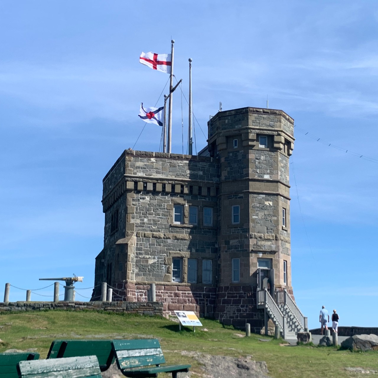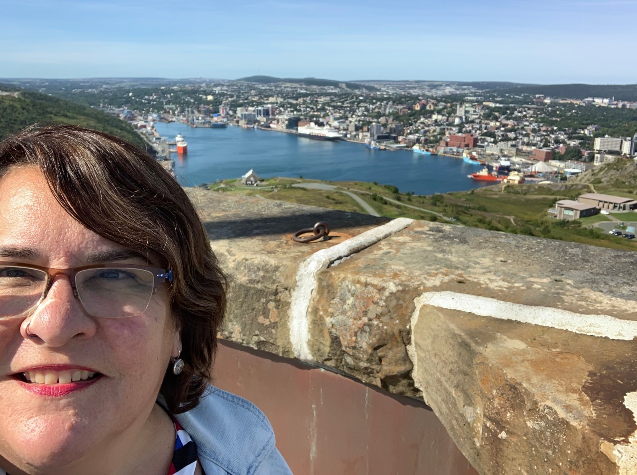 I programmed the route to Signal Hill and wound my way through the maze that is the roadway of St. John’s. Along the way I recognized many of the places my daughter Ashlée had shown me on my visit when she lived here in December of 2014. Part way up I spotted the parking spot that was once the home of my friend Andrea’s Mom and looked forward to letting her know I was thinking of her here.