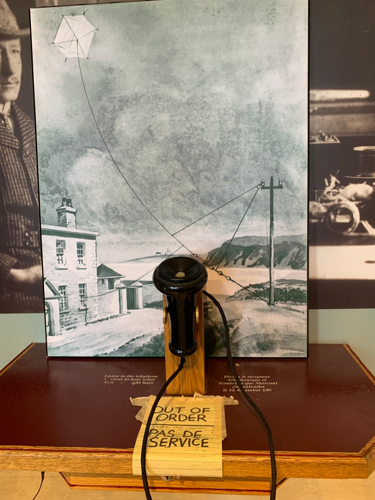 Eventually I wandered my way up to the top of the building which involves flights of winding stairs with no passing zones. Patience was the key but I was too tired to be annoyed. The view was spectacular and there was a sweet irony that the phone to listen to the first transmission was out of order.