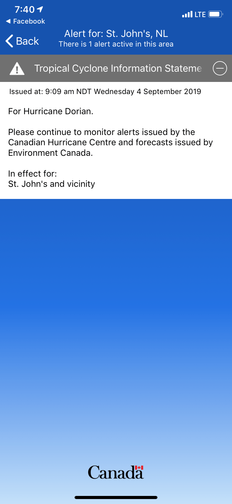 While sitting there I saw the Cyclone warning for St. John’s area and hope it passes on by.