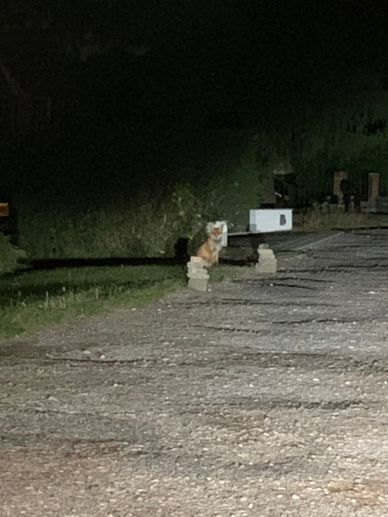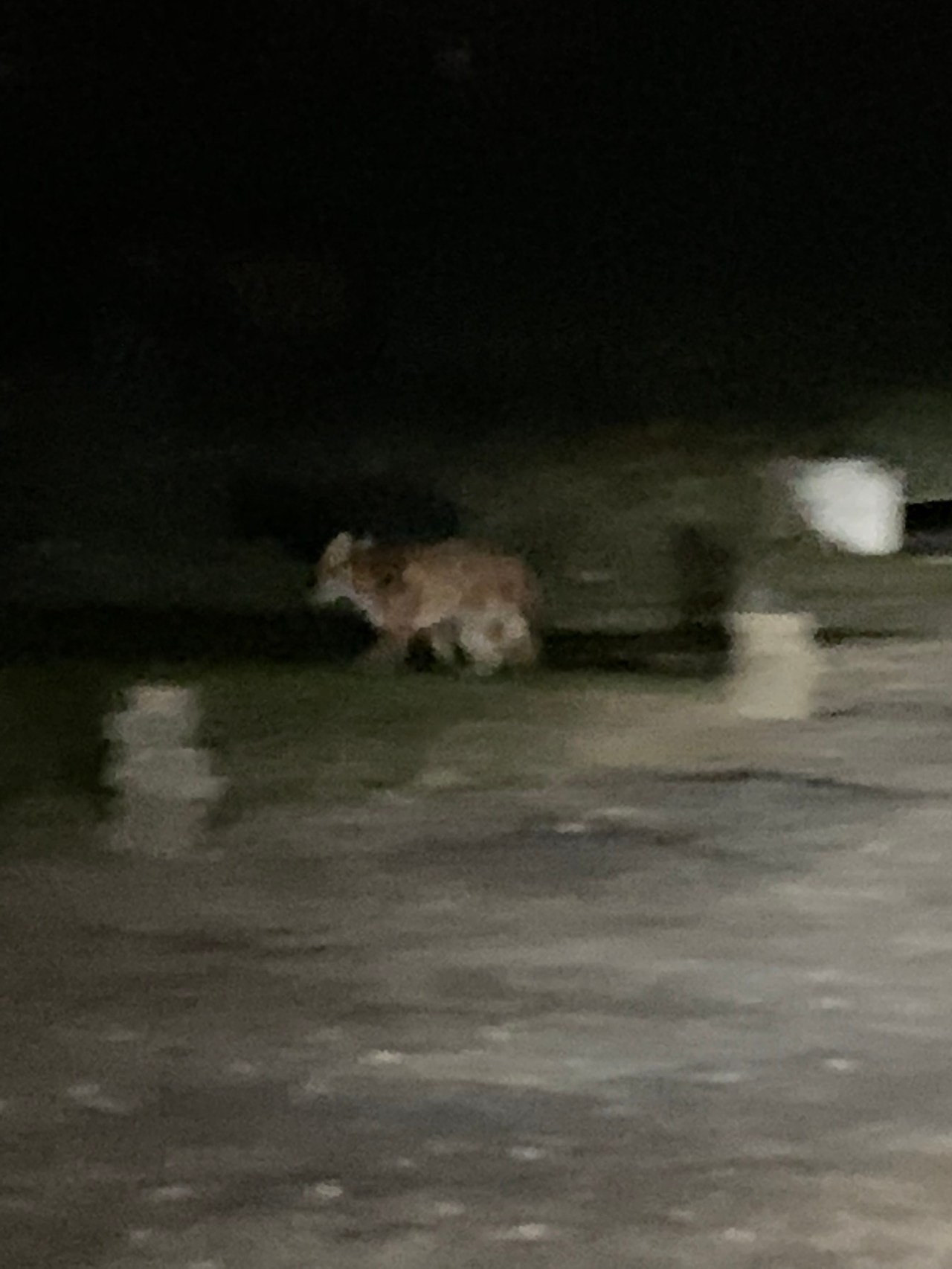I only wish it had been daylight to see the beautiful village we went through. Came back to their neighborhood to have a fox sitting watching us.