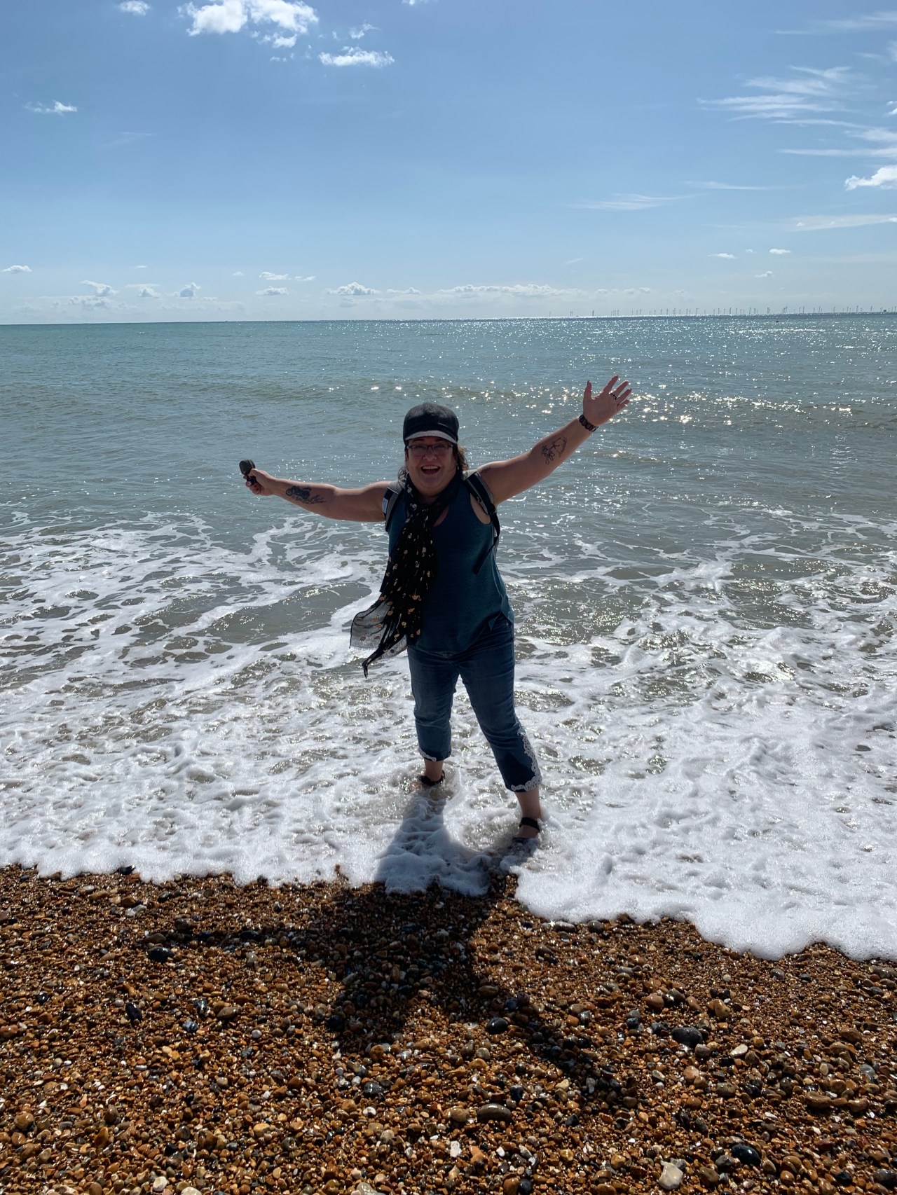 We crossed the tracks to walk on the lovely beach and allow me to put my toes in the English Channel. Now when I say beach.. it’s a lot like Newfoundland, Stoney, not sandy but beautiful rocks to find. I collected a piece of beach glass, a heart stained rock and a rock with a core like glass