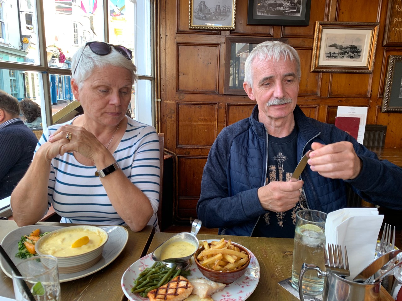 So many interesting places it was hard to choose what to look at but we did finally choose an Excellent spot for fish and chips and my first Pimms.