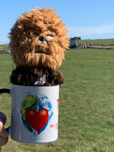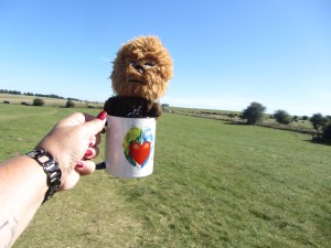 We decided to walk back down through the field and were part way there when I remembered I’d brought my Mug from The Tin Woman to take a picture with. I decided it was an unimpressed Wookiee moment. Nigel was my lovely assistant for the shot.
