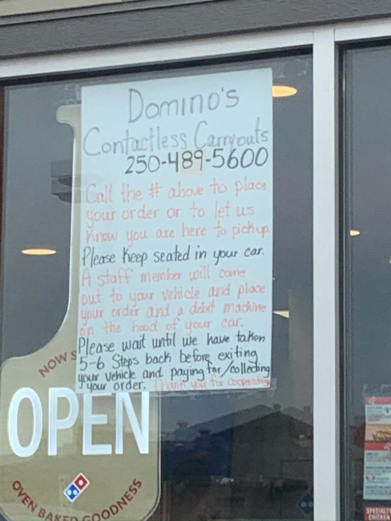 There was also a coupon for Dominos so I reated myself to a curbside pickup of enough ot last the weekend. They really had a great set up except the setting it on my hood….