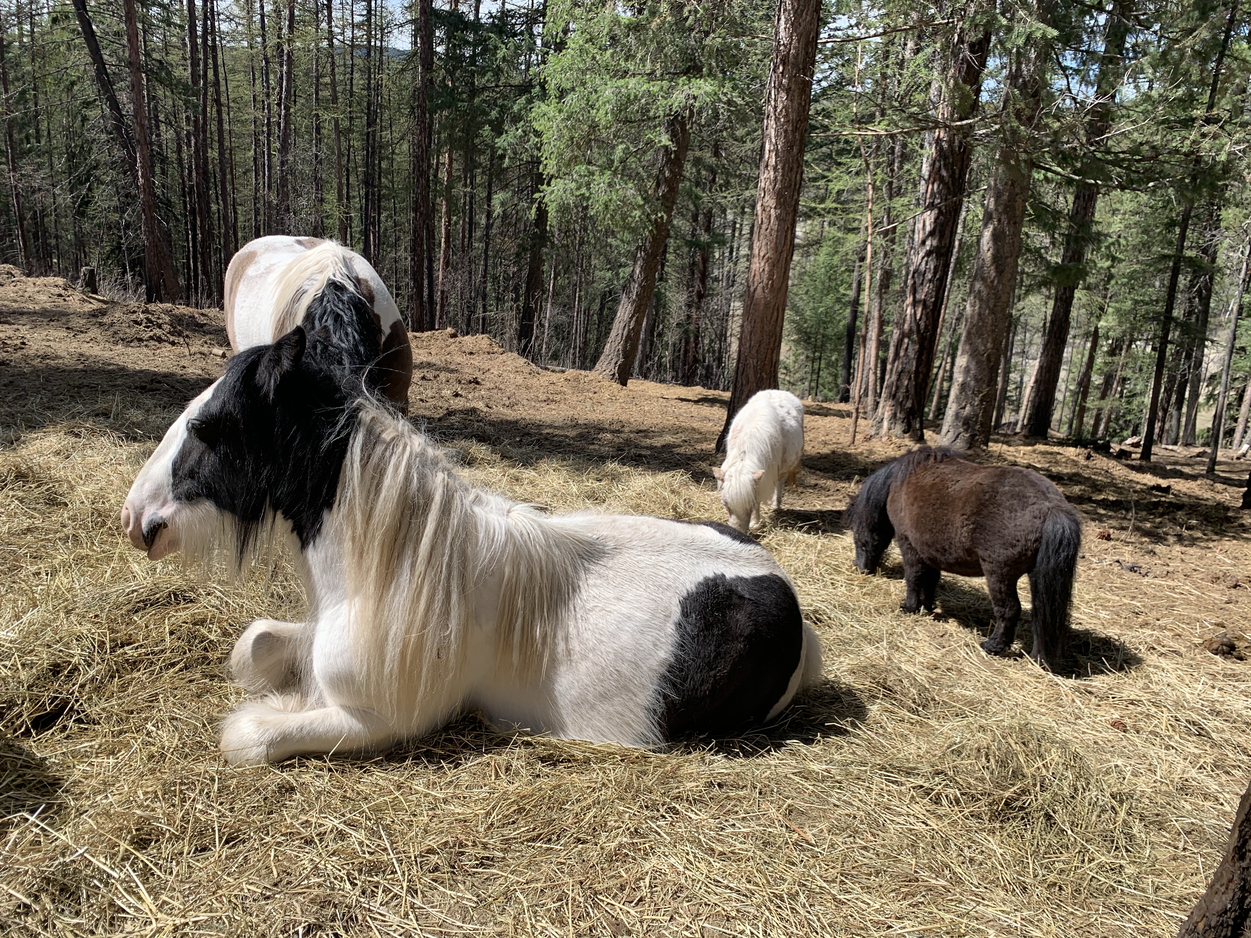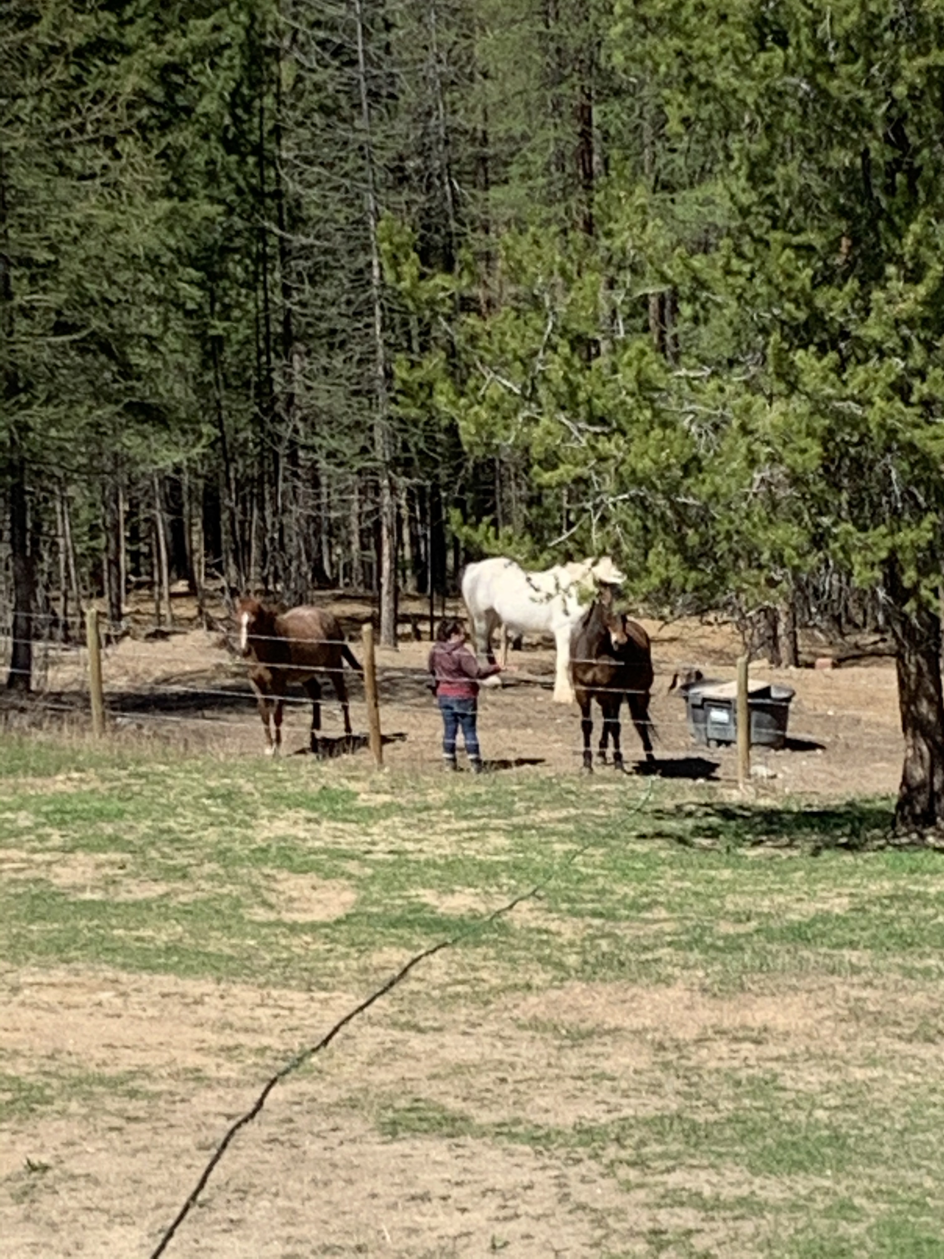 It was when I pulled up and the two big dogs met me as I opened my car door. They were so happy to see me and I could touch them!! While having lunch, little dog came and sat at my feet and it was delightful. I was standing watching the gophers popped out of their hole in the middle of a pasture when it suddenly dawned on me that we could go down and visit the horses. I was unusually excited when Ashlée suggested it. The whole experience brought me to tears. I am not a ‘horse person’ but I was at first just cautious of these large curious of me animals and then fascinated by the beauty up close of each of them. There were Gypsy horses which I didn’t even know existed. They reminded me of glorious Clydesdales mixed with my imagination of a unicorn. I wanted to put a horn on one and take a picture. The two largest ones were highly attentive although all of them allowed me to approach and pet them. I found myself the recipient of kisses and nuzzles and nose rubs on the top of my head and it dawned on me how long it had been. I had not had physical contact with another living being since Friday March 15th. If you know me, you know I am a hugger and toucher and that connection is what fills my tank, keeps me grounded or floating, whichever is necessary. These glorious dogs and horses did all of that for me today. Did I mention that I cried?