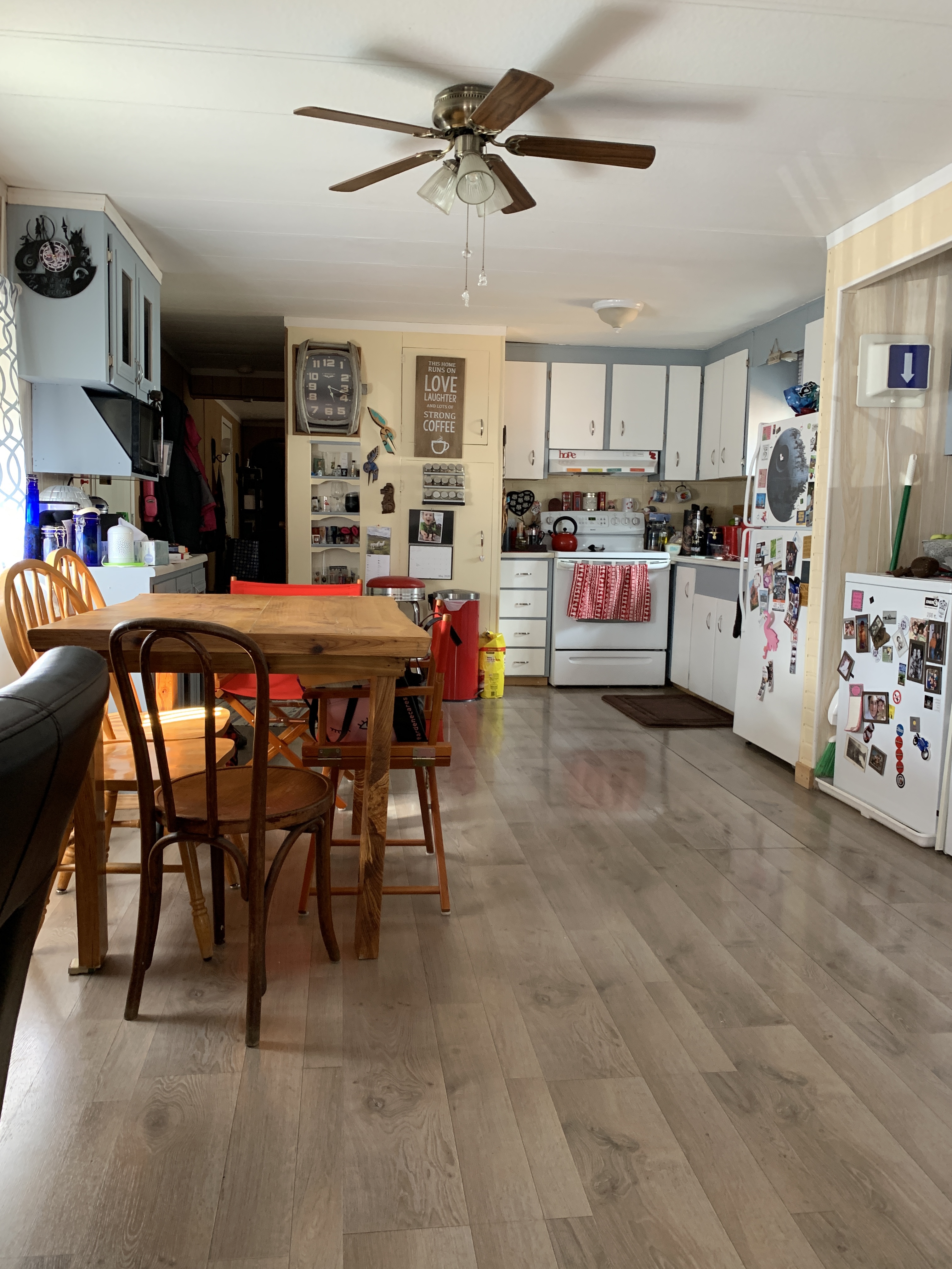 I wanted it for a dining room table until I can get Jackie’s which is currently in Lac La Hache waiting for me to be able to road trip and get it as my plans were changed last week. The table I have now is a drop leaf with two extra leaves so it expands perfectly for all my work needs. I moved it into my den and claimed my living area back.