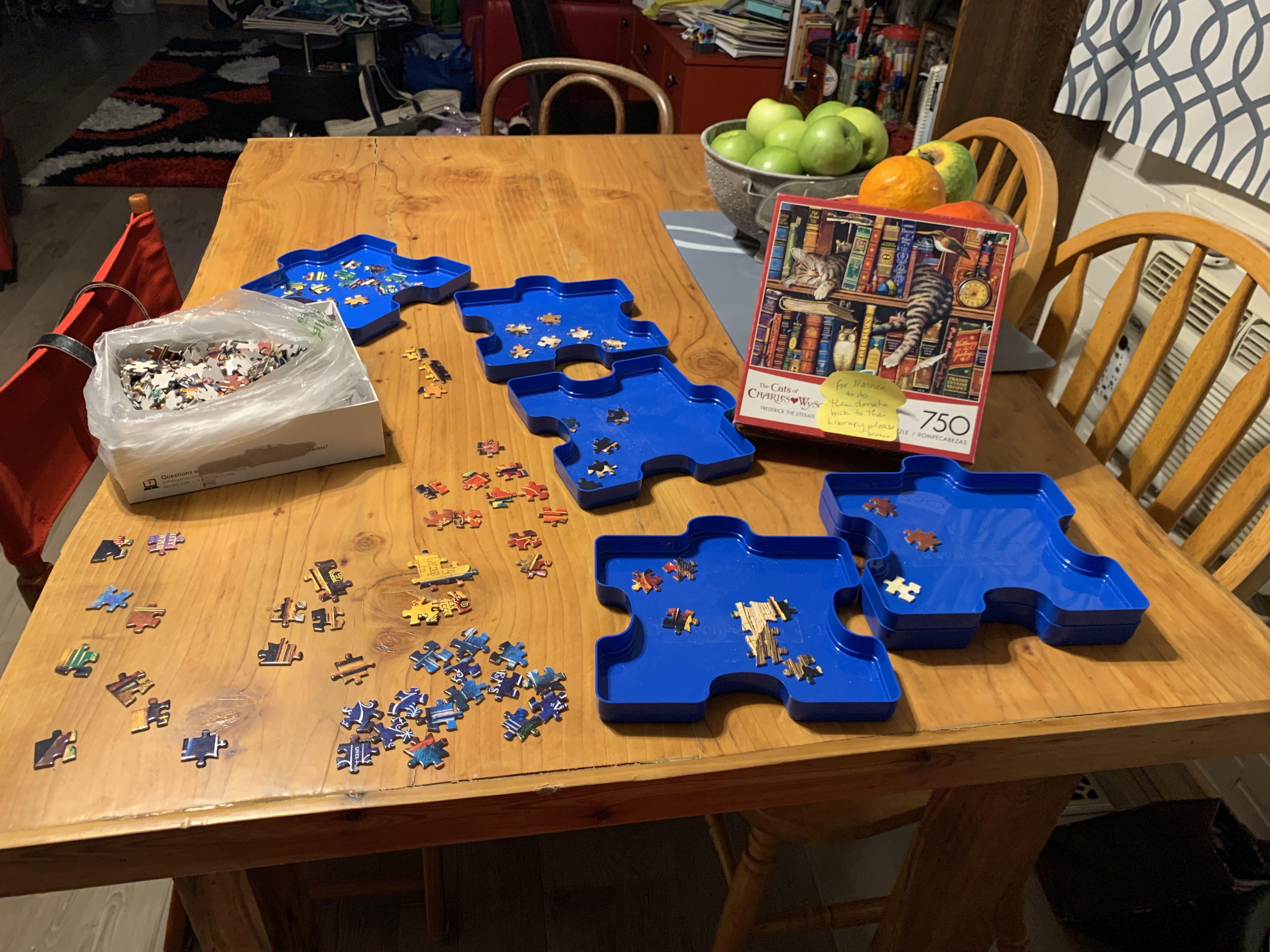 It felt so good to start laying out a puzzle and not be in the shadow of work on my off time. I shoved a lot of stuff aside and will have a bunch of sorting to do but I am happy with the results so far.