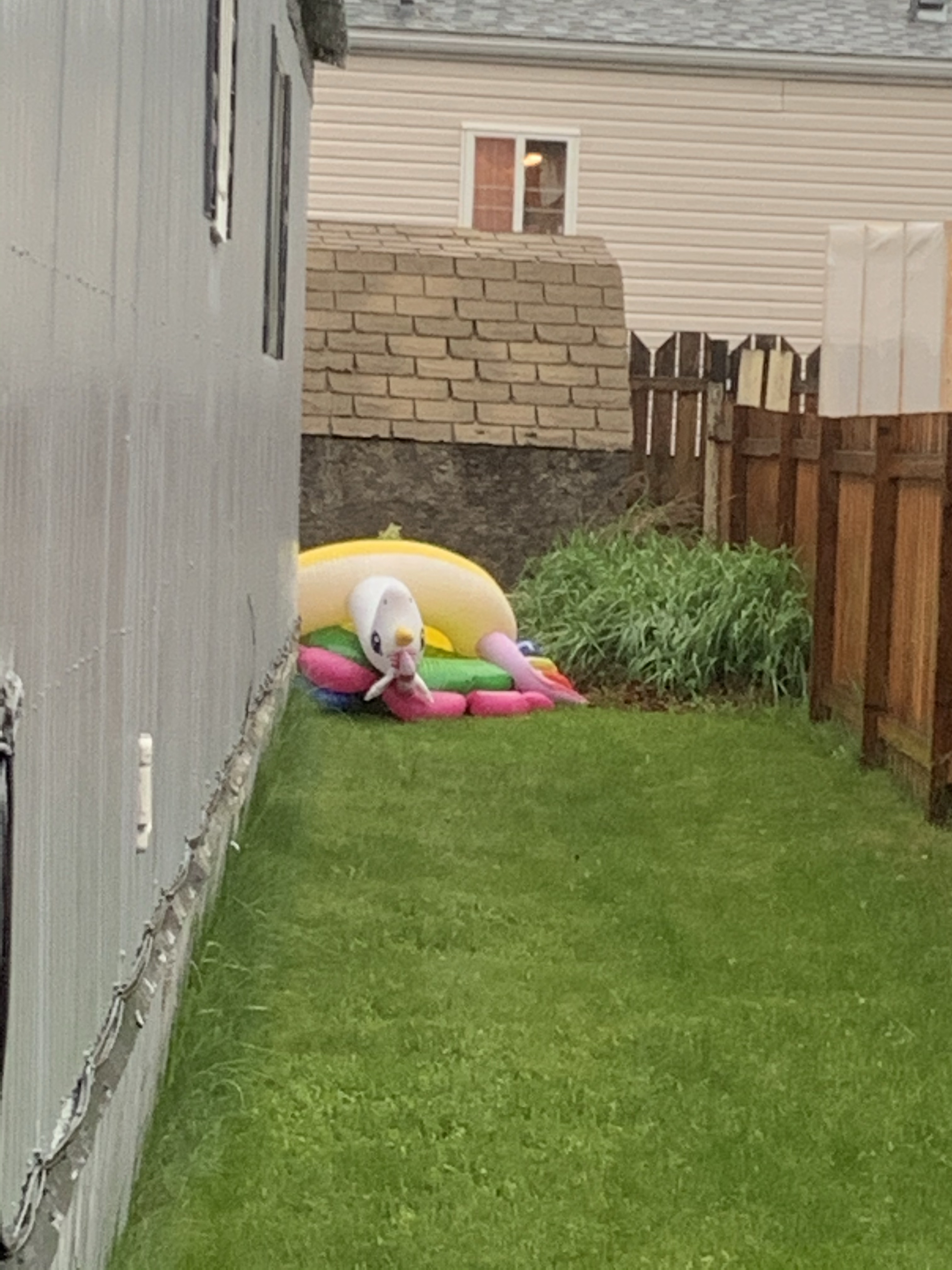 The yard pretty much survived the storm although the trees are weighed down with the rain. The flowers are pretty though.