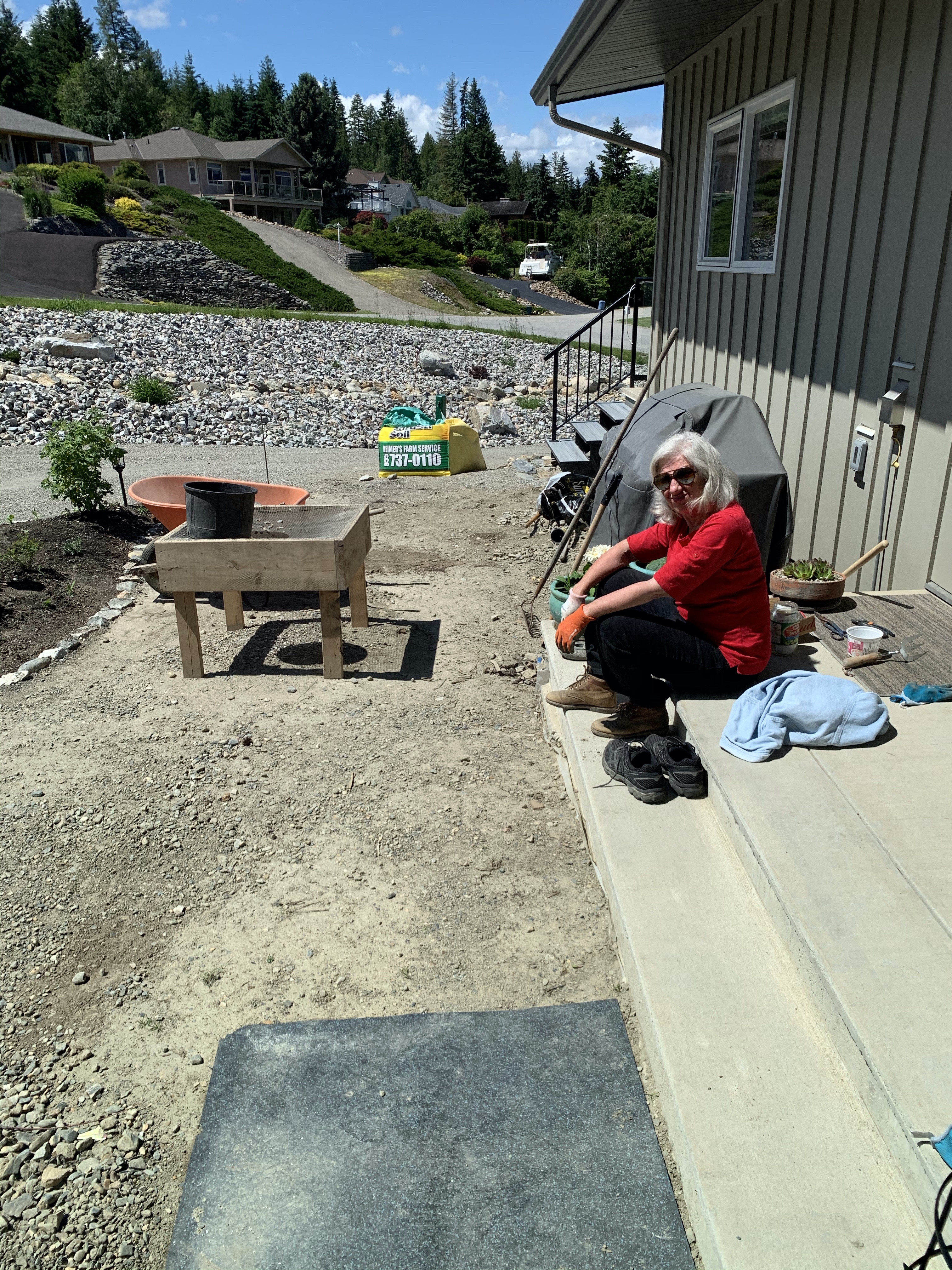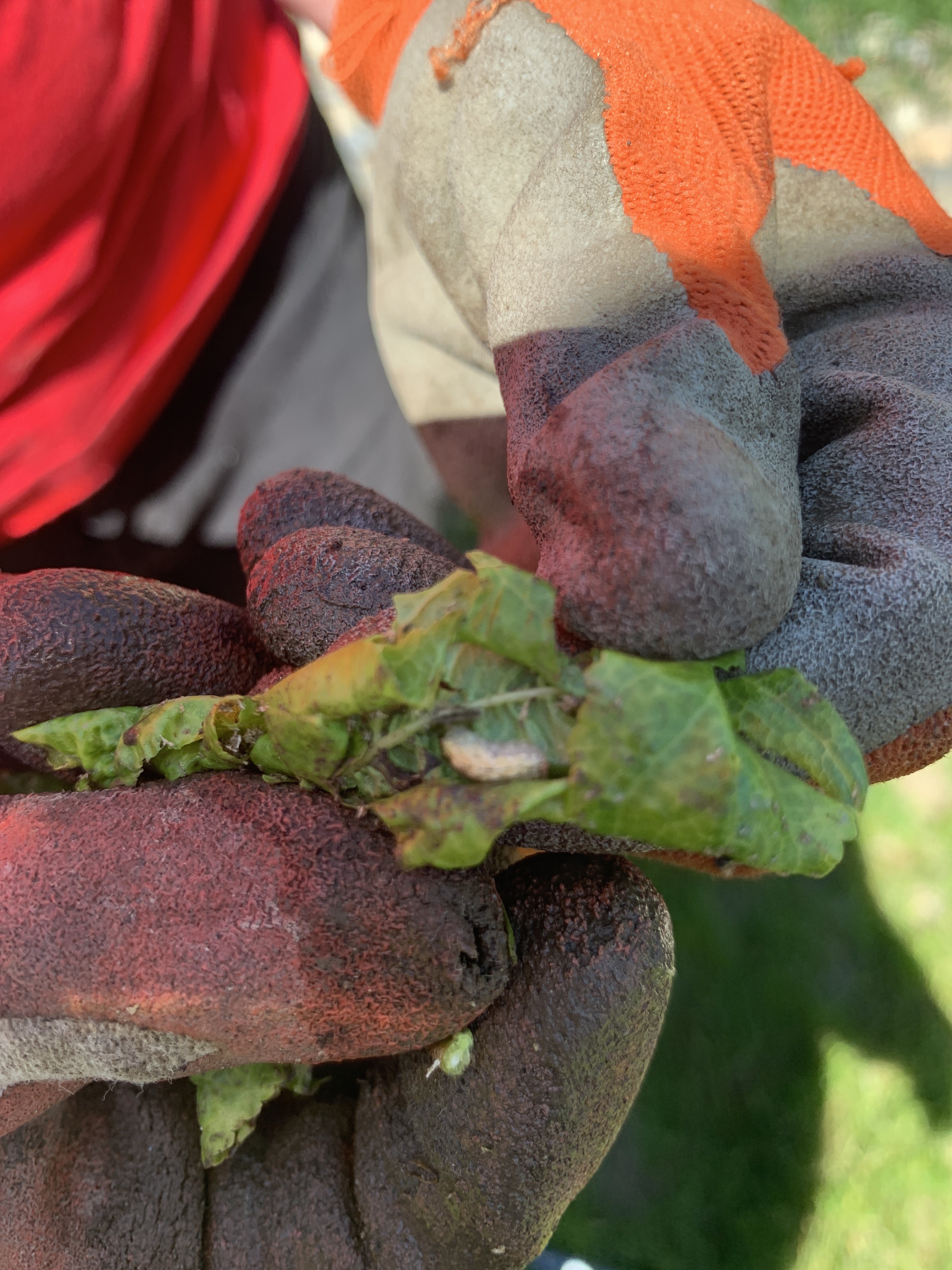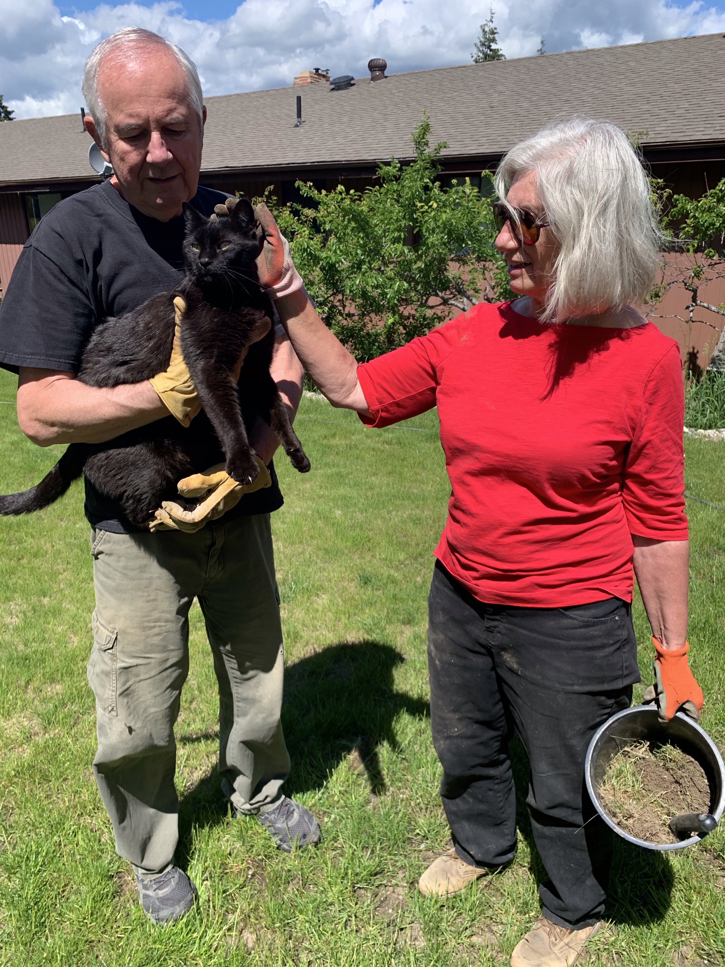 I didn’t sleep very well or long and in the brightness of the early morning I decided to just get out of bed. I didn’t feel well at all though and I just sat on the couch dejected after realizing I had forgotten the crochet hook. I brought my blanket to finish. Rosie managed to find one I could work with. Eventually after watching the news and having a light breakfast I decided to head back to bed for a while. A couple hours later of tortuous brain defragging I got showered and dressed and went outside. Uncle Bryan and Auntie Lynne were puttering away at the landscaping and gardening. Having finished this place last year this is the first spring they’ve had to work on it and it is coming along beautifully. We used my Insect identifier app to try and deduce what is happening with the plum trees. There is a Neighbour cat, Max, who comes to visit regularly.
