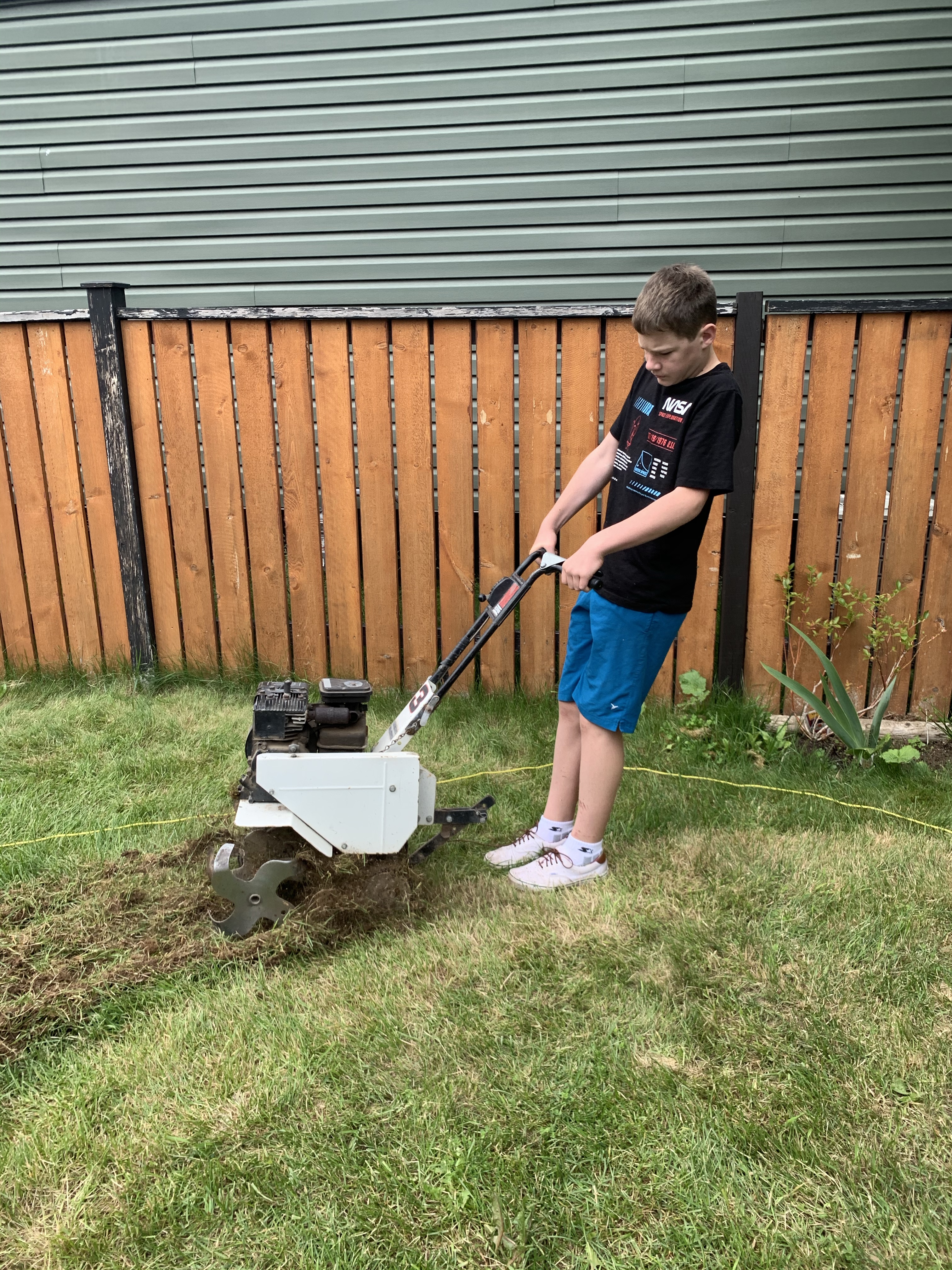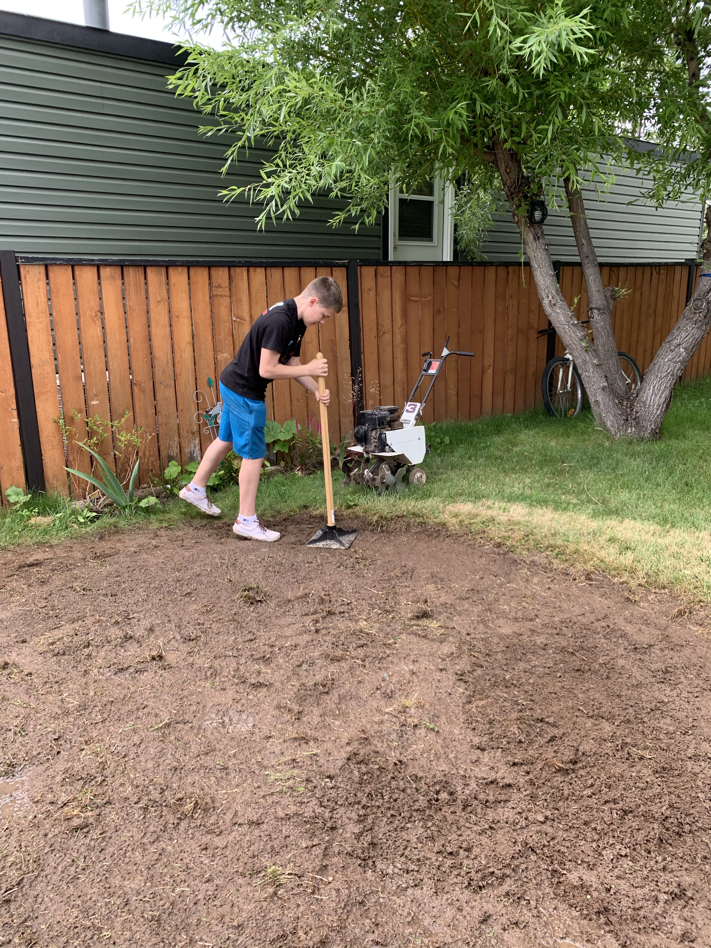Gene and I worked our tushes off to level a spot for the pool. This involved a small rototiller, rakes, shovels and a hand tamper. We did take a break to help Jake return his rental car and go to Rick’s Meats. Gene bought two rib eyes for $40 as a special father’s day treat for his dad.