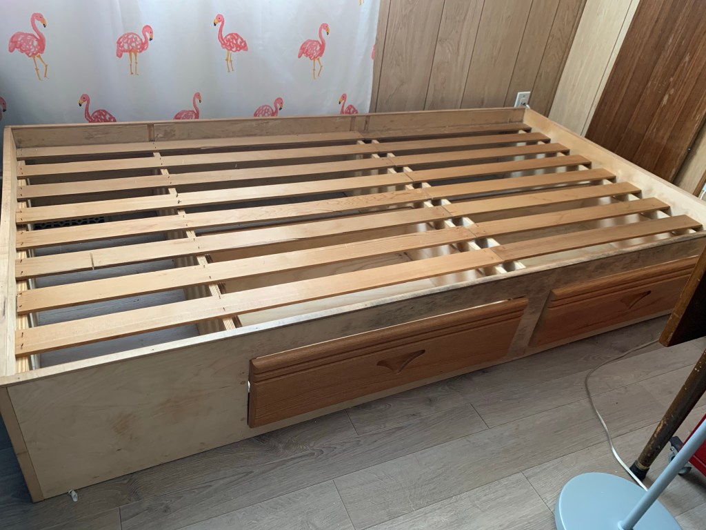 Danika and her boyfriend, Malcom had dropped off the daybed with trundle she gave me which will be great for guests, pretty in my den and better than just the single captains bed I have now. I took pictures of it and posted on the Bid Wars site. I have gotten a bid already so that is good and I won’t have to try and take it anywhere. It does have a lot of memories as my friend Russ who has since died made it for Jake back when when he was young and we were living on Salt Spring. It has gone through a couple Grandkids too through the years. It is heavy and sturdy and will last for years. Nice to rehome it.