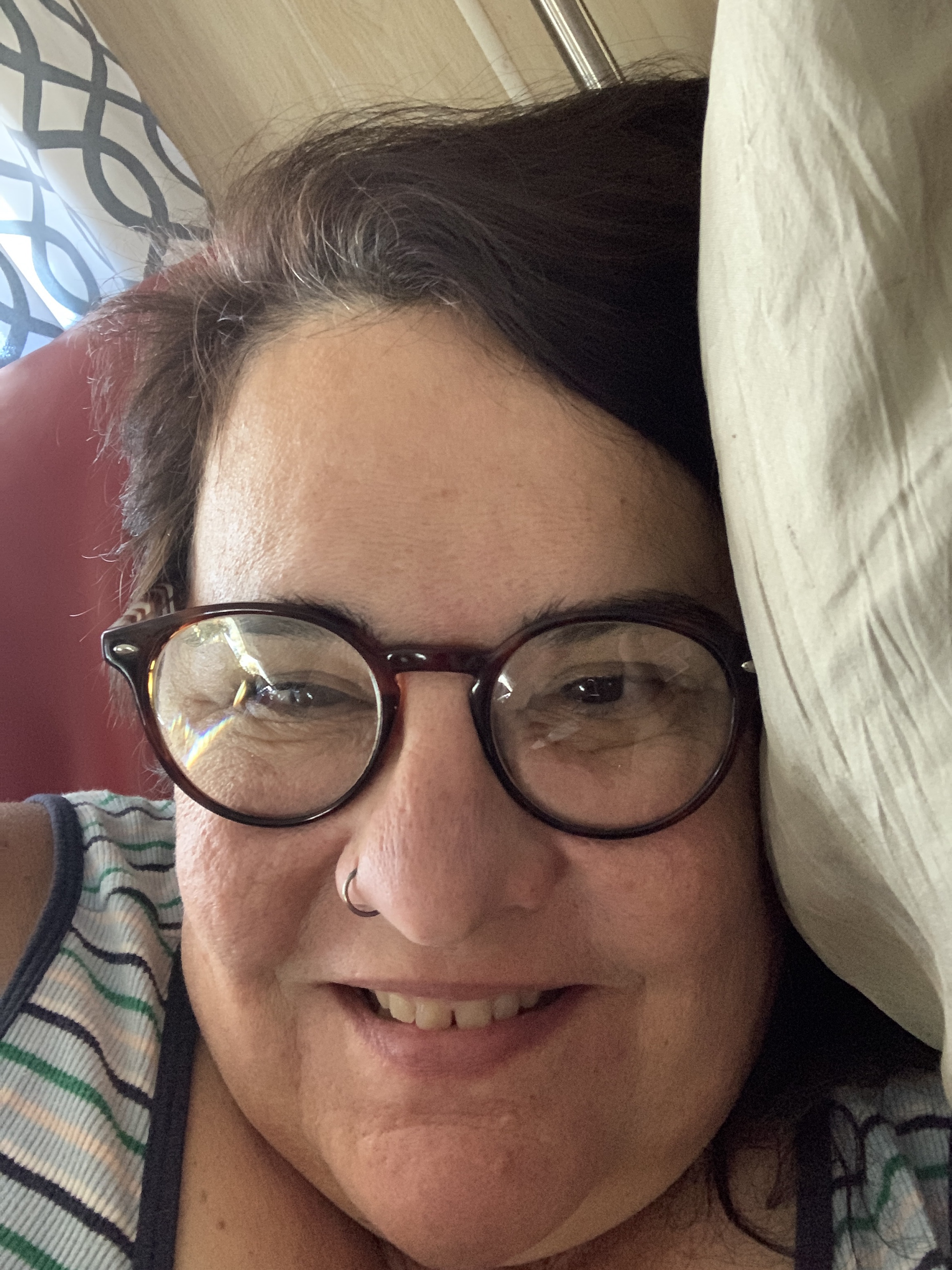 I left to meet Maureen at Home Depot to pick up shelves and bins for the Tech Room. we dropped them at the theatre, checked the rest of the setup going on for the memorial tomorrow and then headed back to her place for a cider and a visit on her lovely plant jungle of a deck. She checked my tattoo for me and said it looking good. It’s the first one I can only see in a mirror. It’s a good friend that will make sure you aren’t oozing.