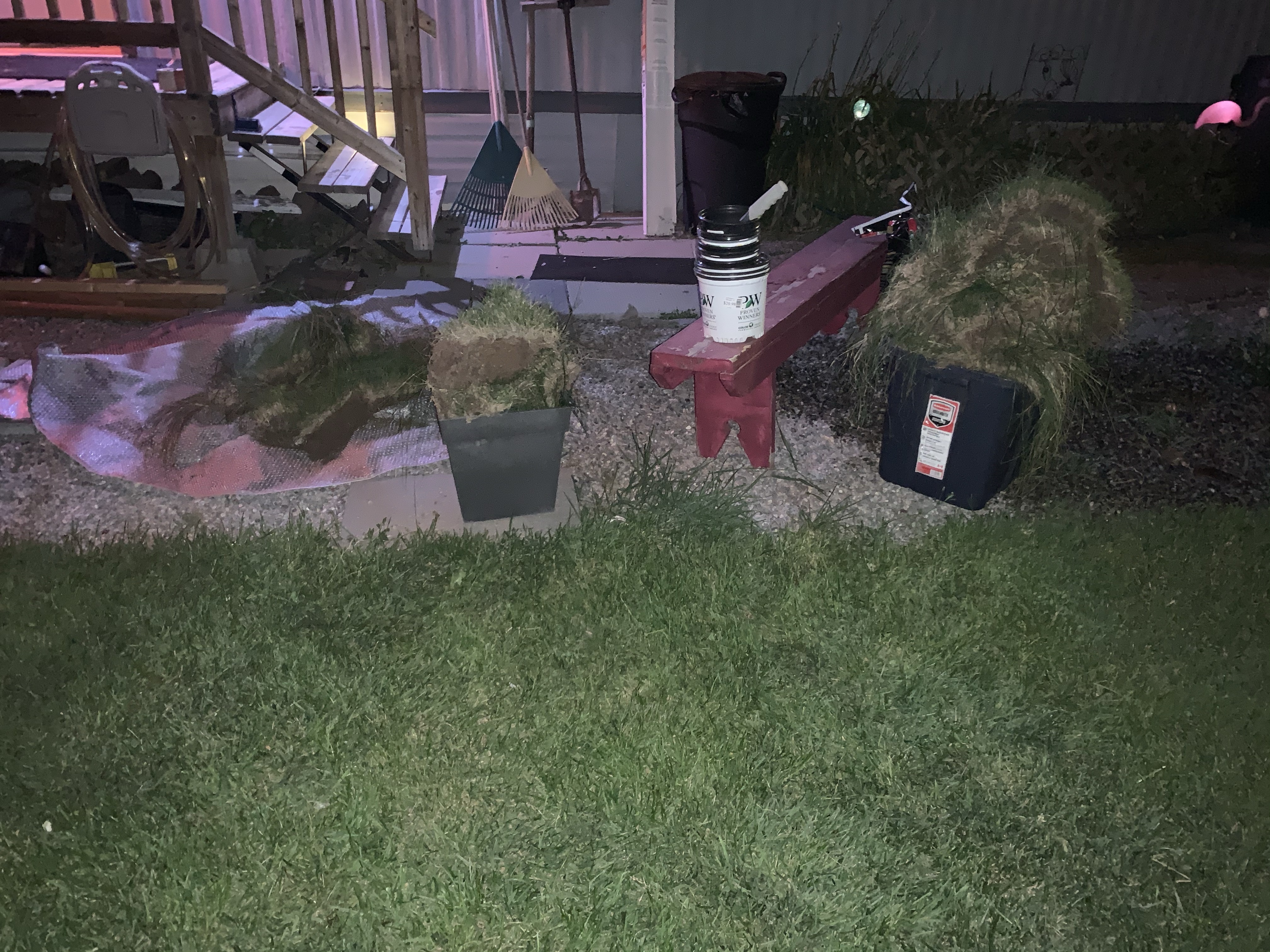 There was nearly nothing that went right in the technical aspects of mine or Julie’s world today. This created a strange amount of panic for me. I didn’t get much done that I intended to and was very grateful to get home. We ate, watched an episode of toughest race and headed outside to dig up sod and plant my bounty from Saturday that would die if it didn’t get in soil soon. We work well together and got it done in the dark. Will see what it really looks like in the morning. The day ended with more race and wine and now I can’t wait to go to bed under my new weighted blanket that was awaiting my arrival home !