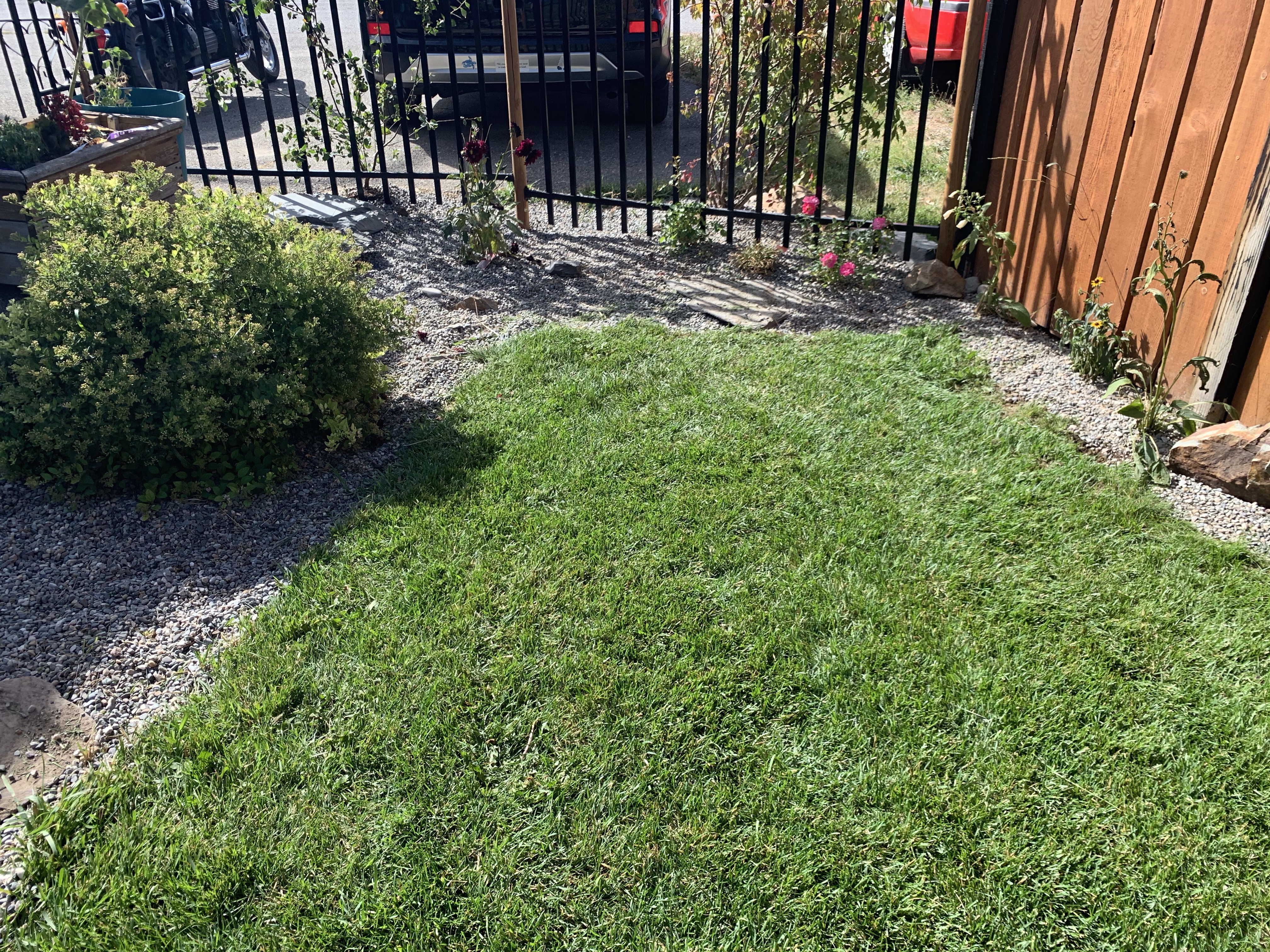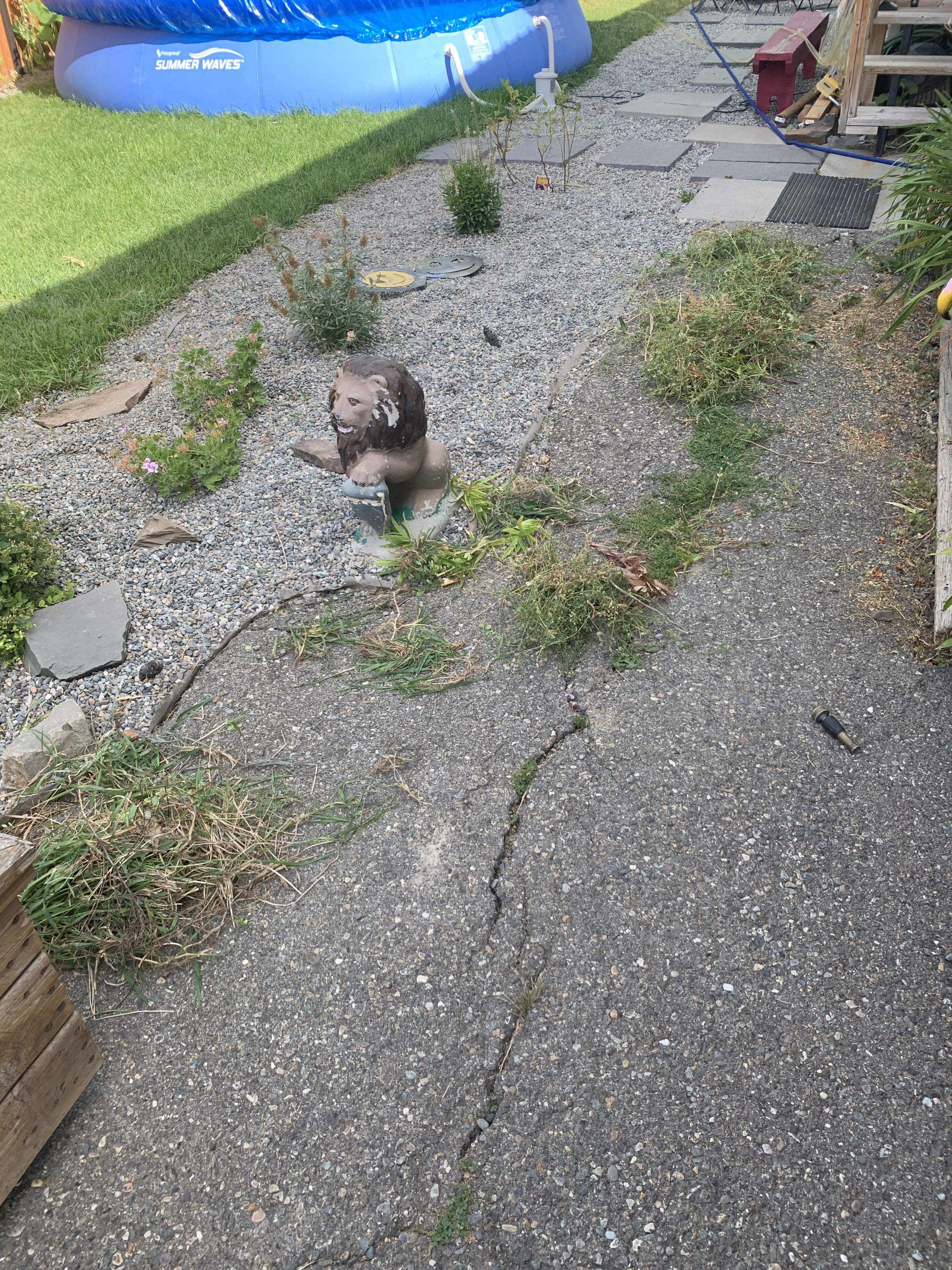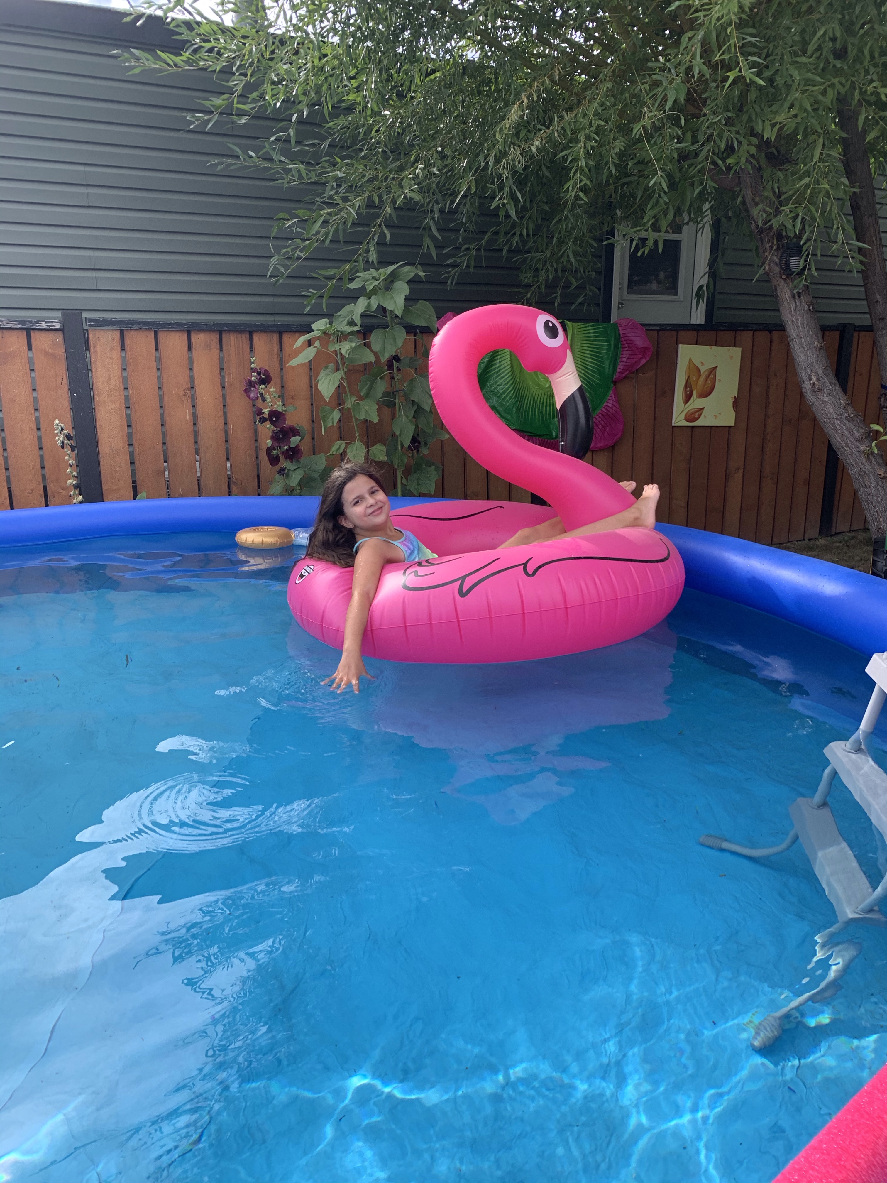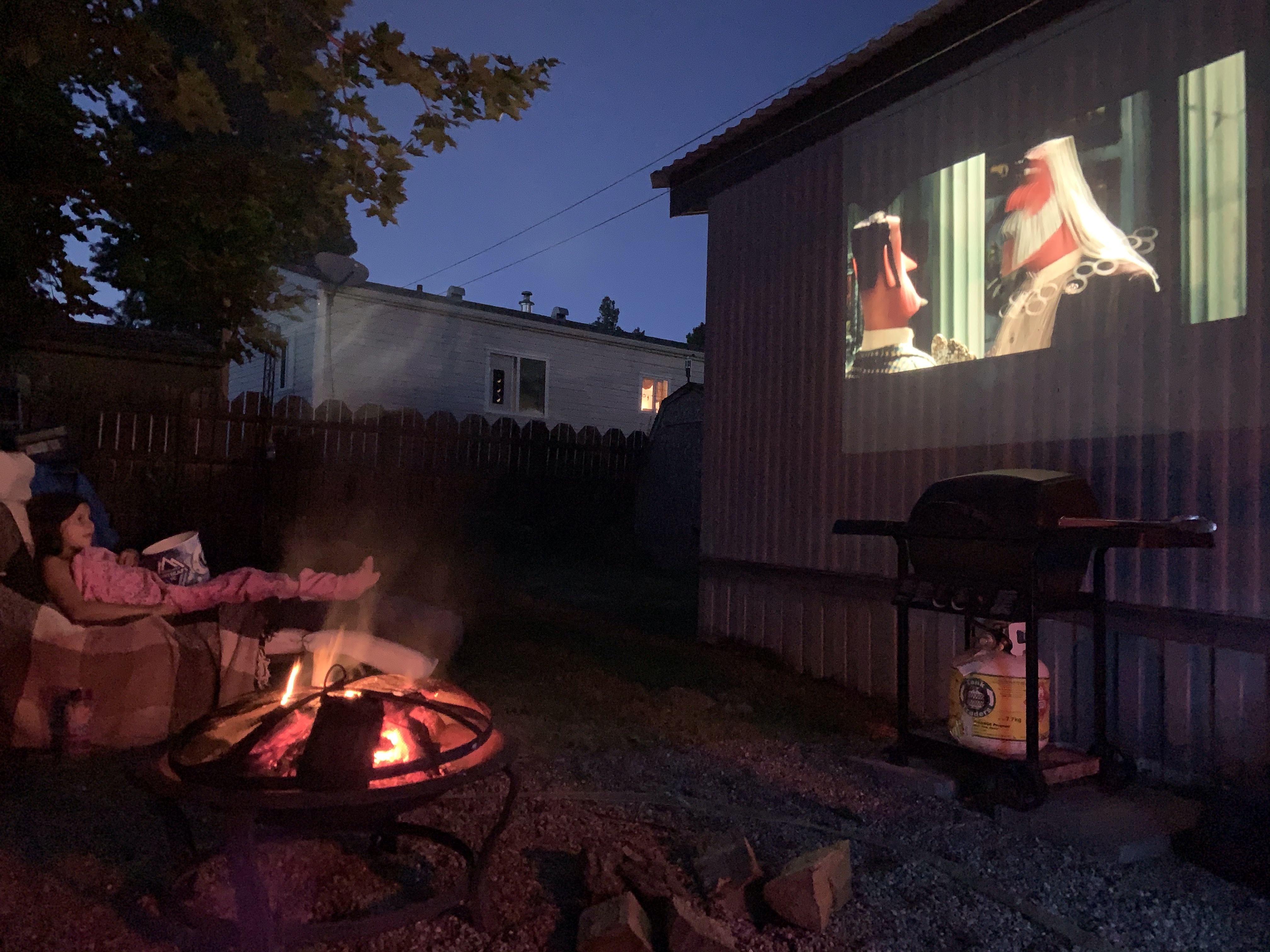 I wanted to ride the couch and catch up on my shows this morning but I realized I needed to finish my yard work before the sun beat down. I dug up some more sod and transferred it to the bare spots, raked in the rocks, planted my strawberries, mowed the lawn and weeded. I shall buy the ingredients to make Julie’s weed spray. A bonus was pictures marked free and left by the community mailbox that go so well on my Fence. Suddenly it was time to rush off to the dentist. It was Crown Day. Unfortunately the experience was marred by acid reflux. I managed to barely hold it together. $1165.00 later I have a shiny tooth. I do like Dr Mike. We usually have a few good laughs. After that I picked up a few things at Home Hardware as my collapsible laundry basket had arrived and then off to Walmart. I was looking for The Brave Little Toaster as Diane has never even heard of it. They didn’t have it but I picked up a few things and managed to drop a jar of Alfredo sauce at the check out. Mortifying! The staff were amazing and more concerned that I was ok. Very impressive. I picked up Zoë to come play in the pool while her parents laid flooring in the basement. Eventually they were all here for a Spring Salmon and corn on the BBQ, baby potatoes, fresh beans and salad. We ate and then lit the fire and watched The Missing Link outside. It was a most lovely relaxed evening. Good times with good folk.
