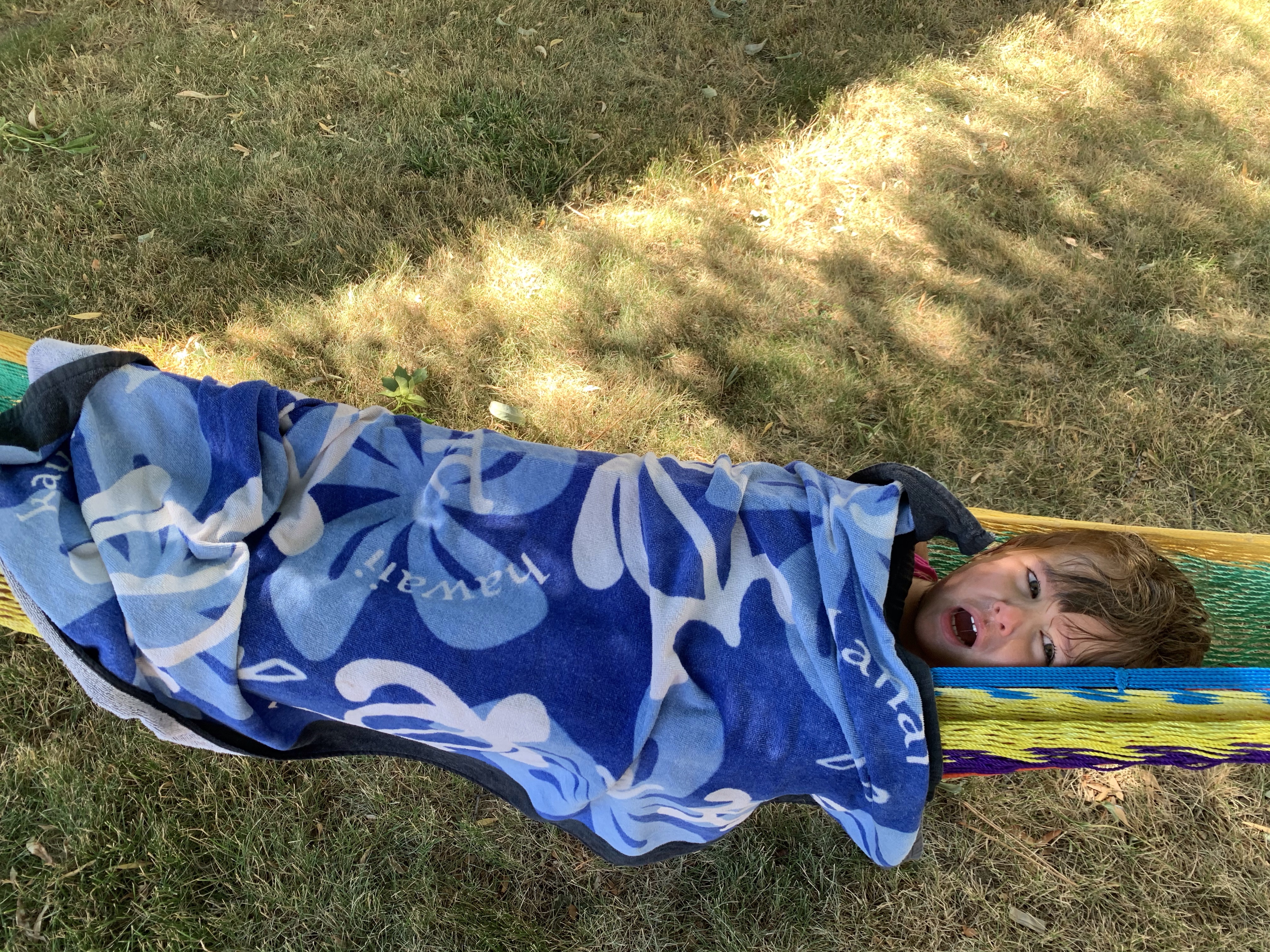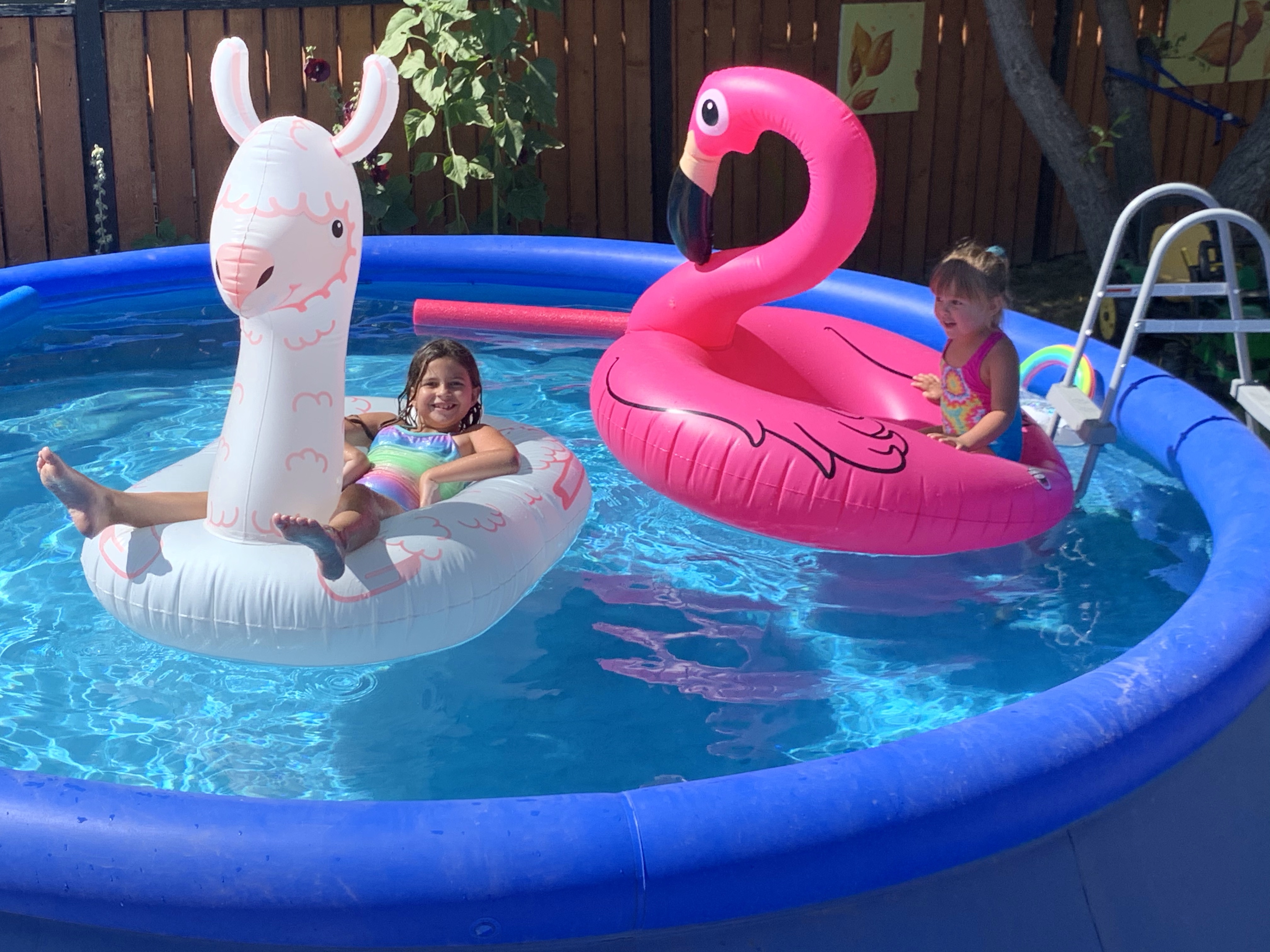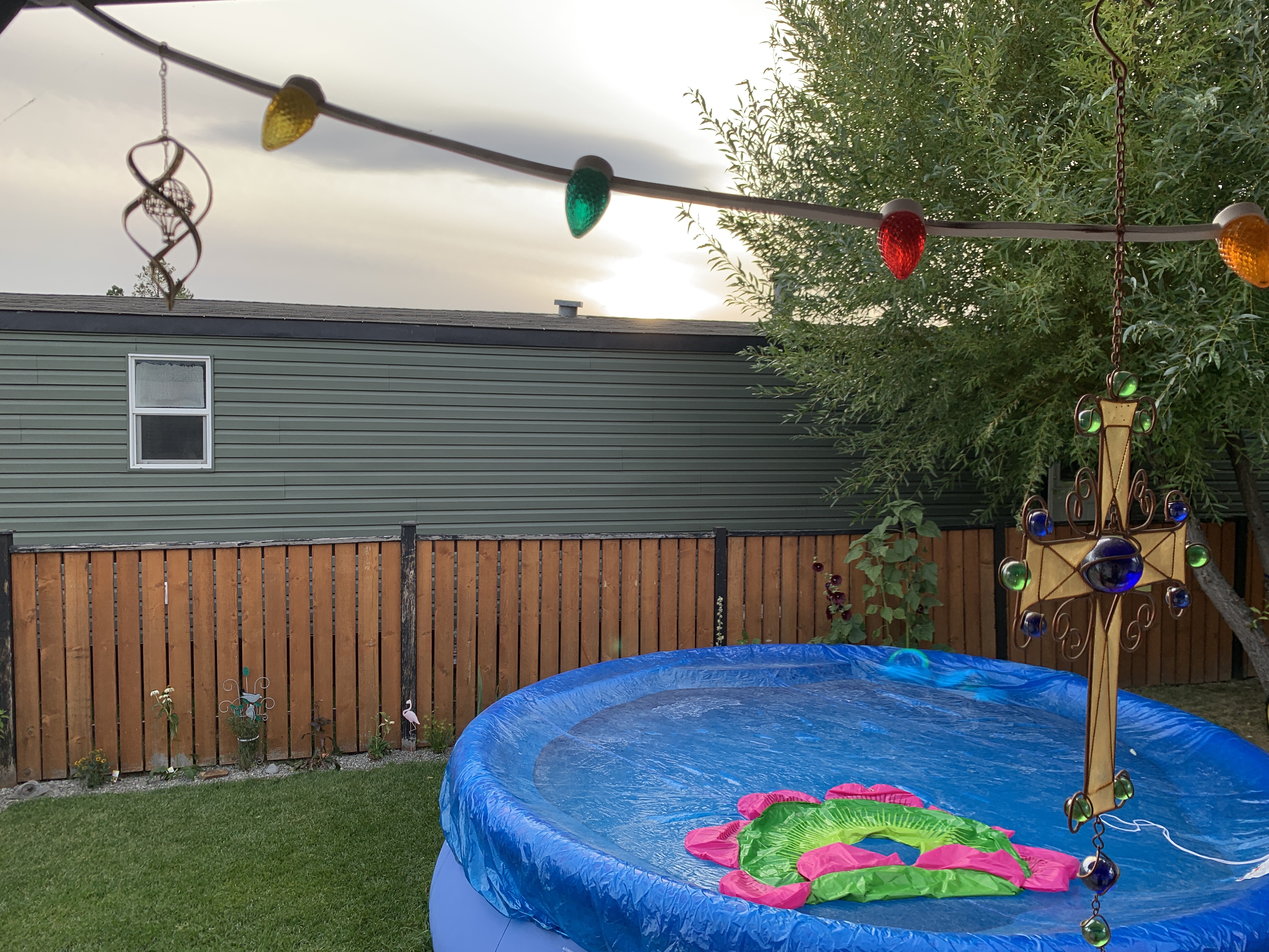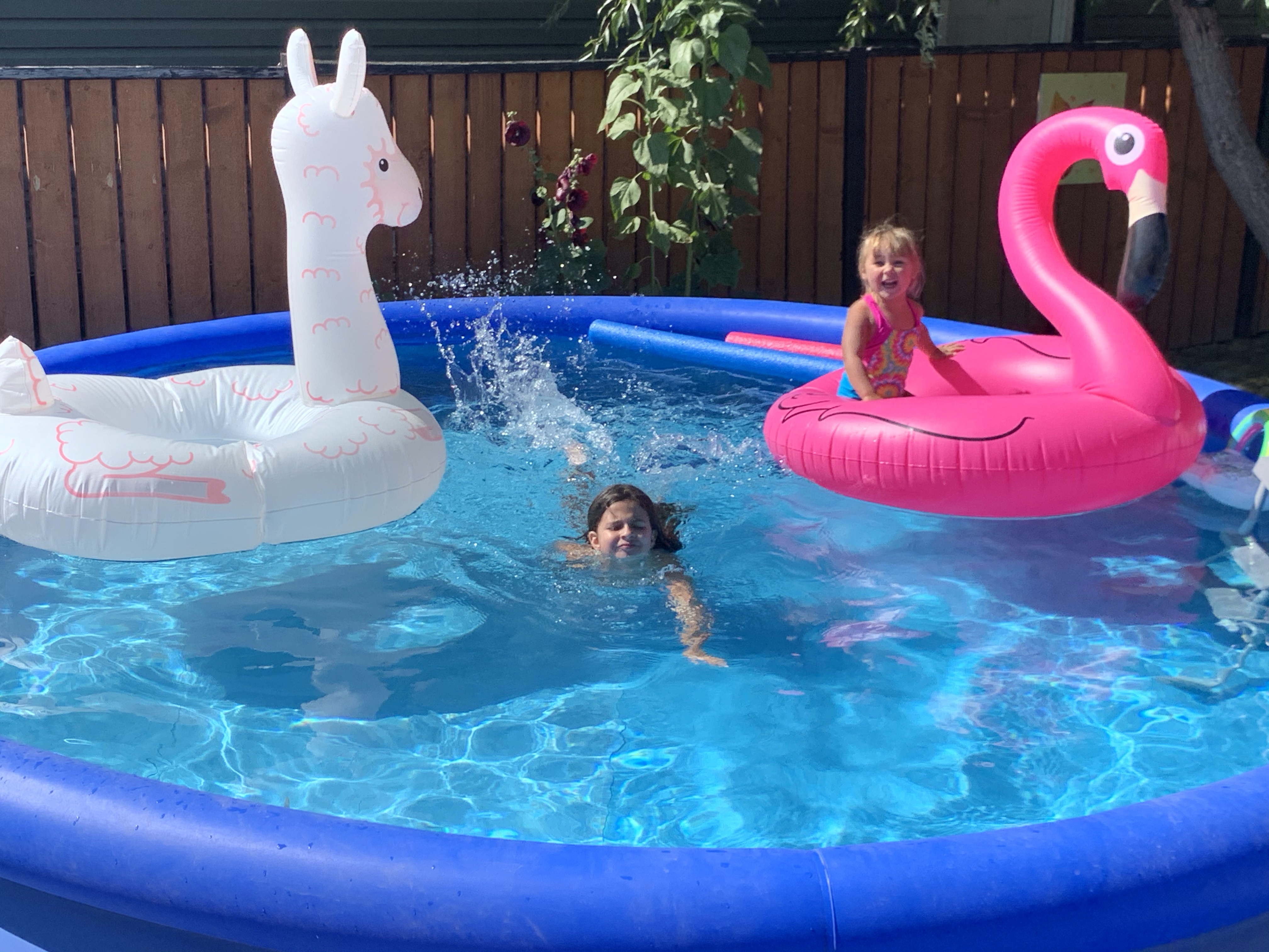 Dug the holes and installed the last two fence posts. Hot work but less hot than last week. Danika arrived to drop off Emmy just as I was finishing. Emmy played in the pooled and told me stories. A while later Zoë got dropped off and the two became fast friends at first meeting. They played and made me laugh, especially the interviews. Zoë said it was like having a little sister. So sweet. Danika came for leftover dinner and we had a nice visit. Spent the evening on theatre things and posting items for sale. Immediately sold a screen door and when I noticed he had pavers in his truck we ended up trading. Good deal as I want to make a bit of a patio space. I find the pea gravel horrible to walk on. He had just left and I was tending to watering when I got a text that the other Diane in my life was in my driveway. Haven’t seen her in too long and we wandered the yard and caught up. Hope to go walking tomorrow. my nose is very dry, the sky is Smokey.