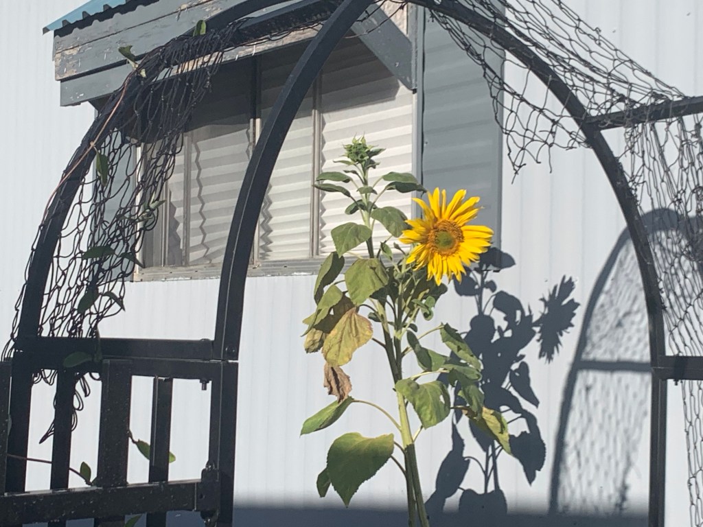 My joy was in returning home to the beauty of my only blooming sunflower shining bright in the 14 degree day