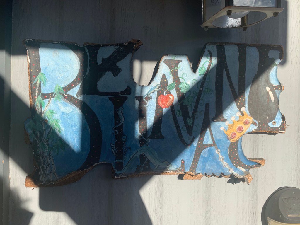 I brought in my laundry and loaded up the empties and Bill’s post hole augers I’d borrowed as well as a thank you bottle of wine. Before I left to deliver I finally hung my name sign in the shelter of my porch. It was painted for me years ago by my dear friend Jenny Bradford. I miss her and her love Erin very much. They were always good and kind and freaking entertaining.