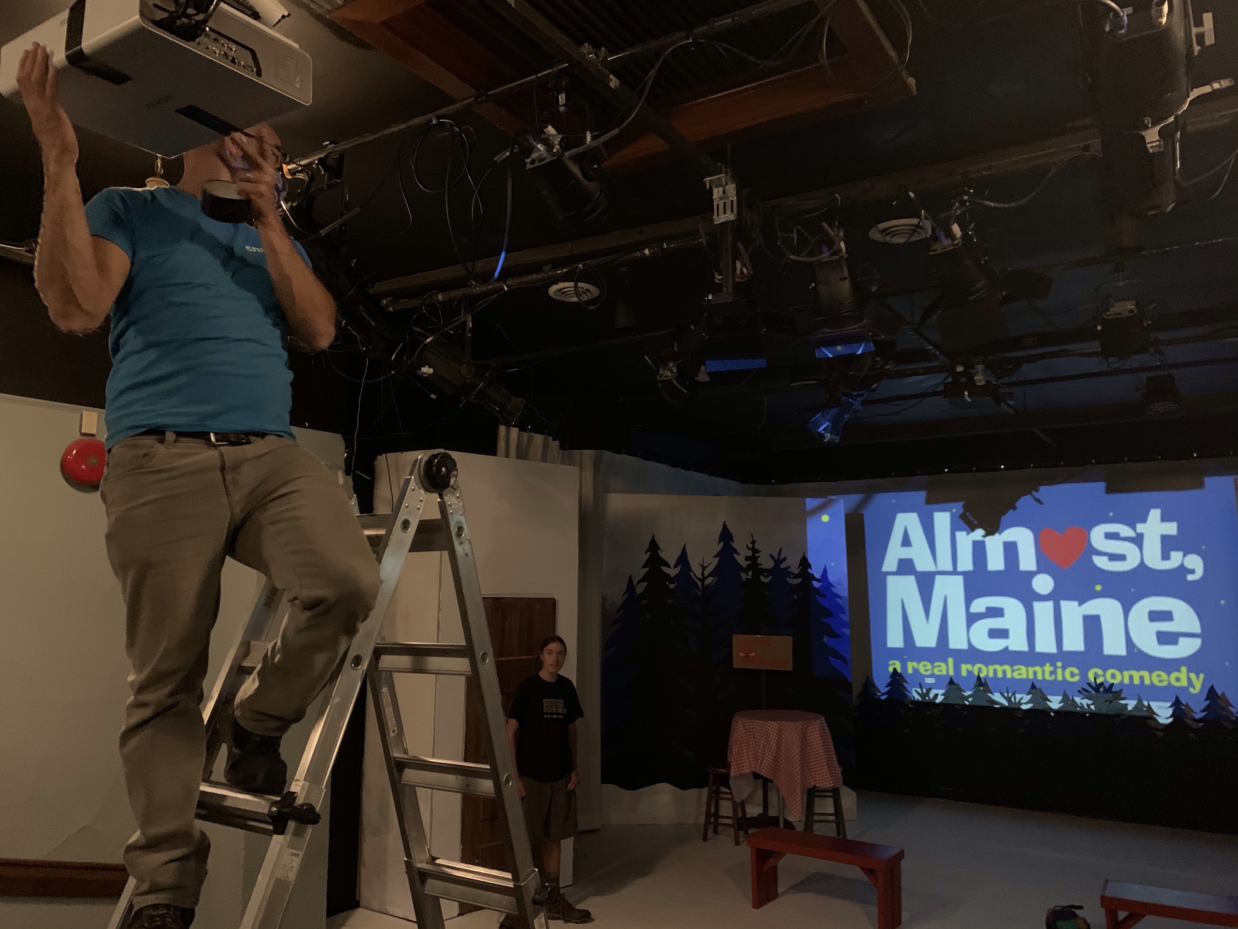 It was so satisfying to solve a problem we were left with in tech world last night. Sanjay was happy when I pointed out the changes and hooked the laptop up to run the curtain call via the projector. I instructed and he climbed the ladder. together we got it working and Michelle, one of the Directors was very happy. I will admit to being sad when credit was only given to one person. It shouldn’t matter but I feel so fringed. I know there is no one else who would come and sit on the floor for over two hours at awkward angles trying to remain hidden while following the script so as not to get distracted and then climb a ladder every night to reset a special effect before locking it down and going home. I am 57 , not 27. Grouchy moment over. It is all for the greater good, right? And don’t get me wrong, I really appreciate this man.