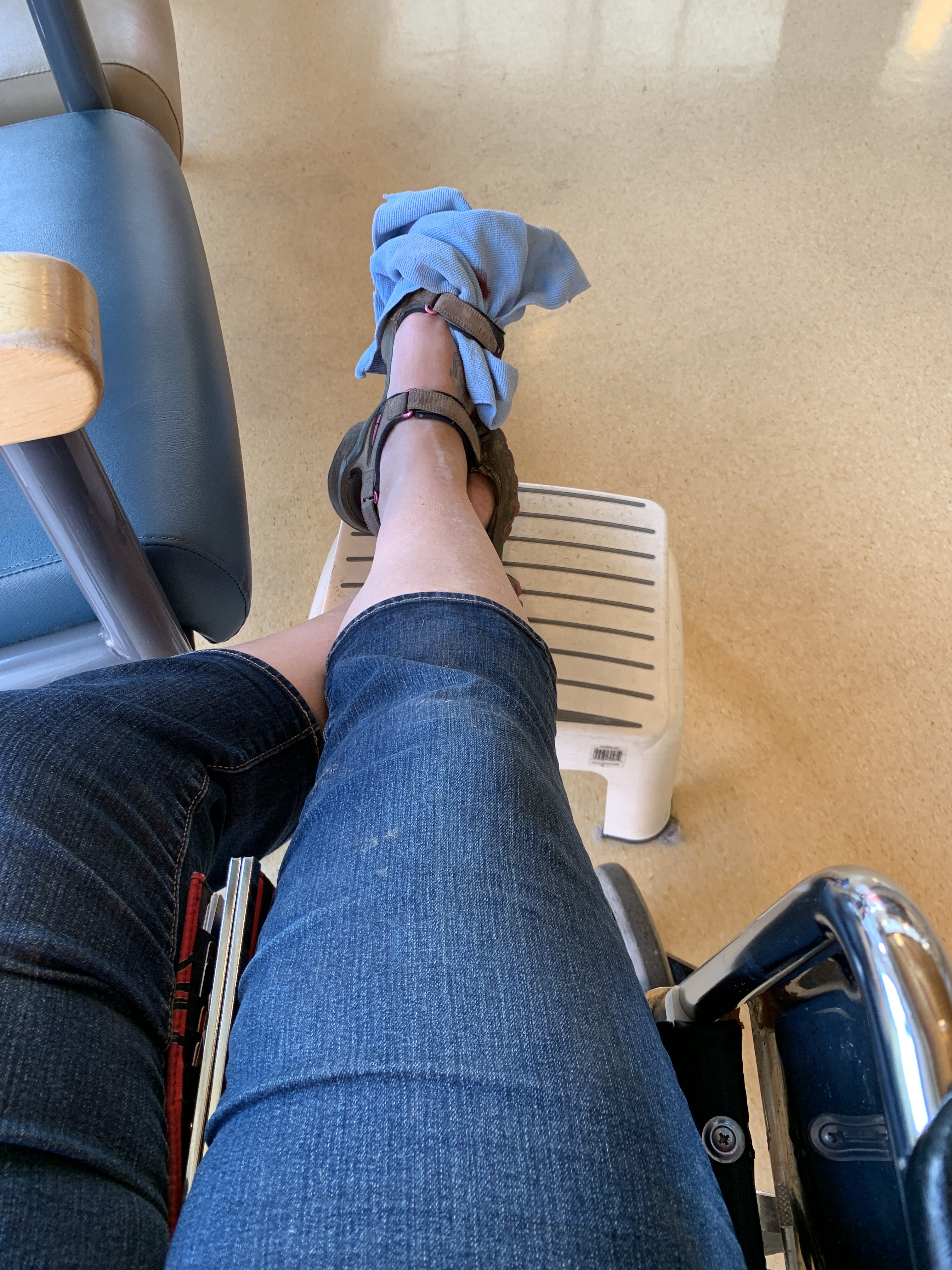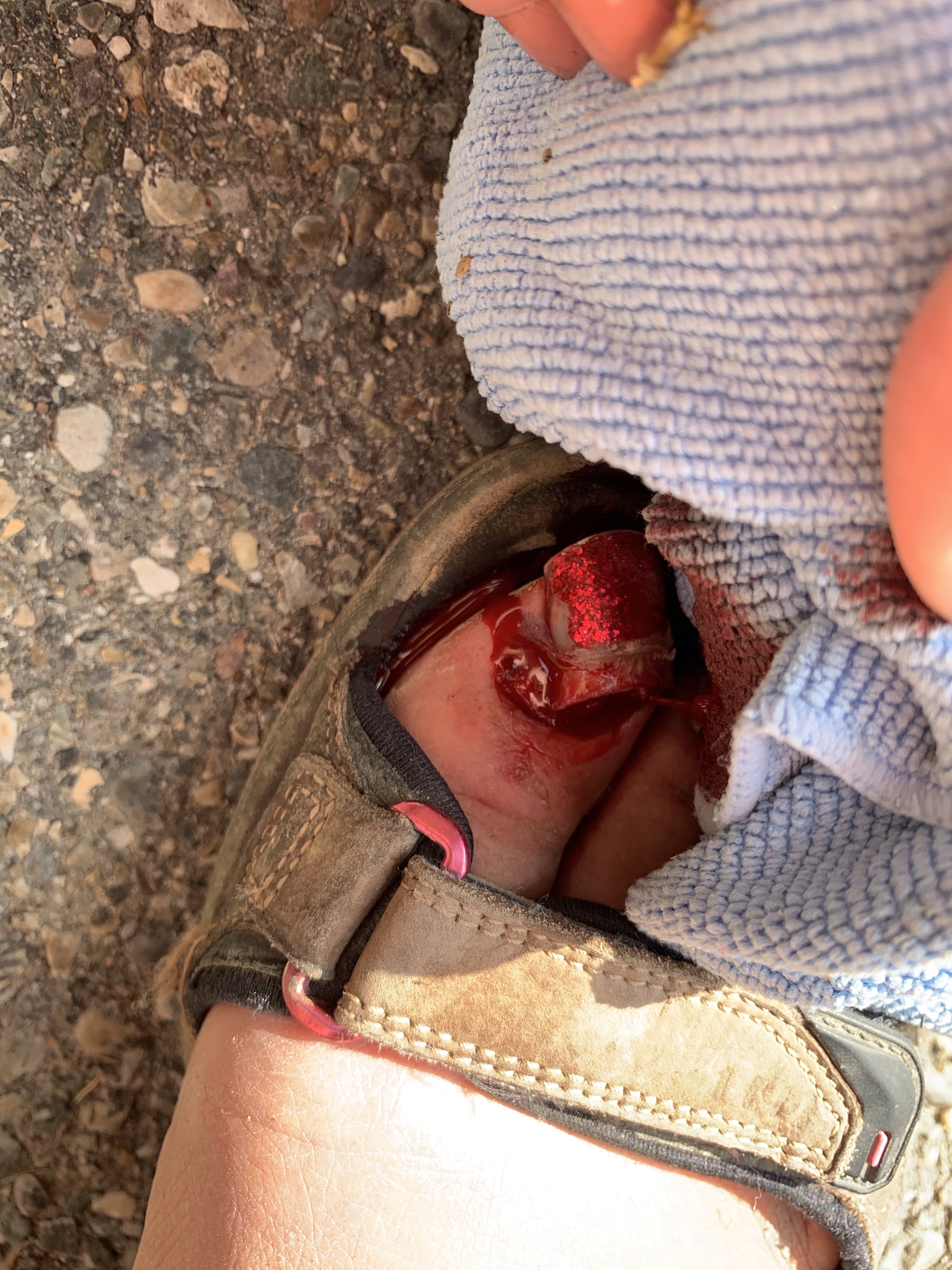 I called out to the neighbour’s across the street and she and the one two doors down came running. they applied a wrap and dropped me at the hospital. Over 2 hours later I was admitted and X-rayed to find my toe was broken and informed they would remove the nail completely, reposition it and sew it in place so the new nail would hopefully grow in place. Dr Bowden was amazing, the freezing hurt a lot and the nurse who helped was so kind and said it was a first that she had my nail in her hands and had to remove the beautiful polish so it could be used. The shock wore off about a half hour before they took me in so it was painful for the freezing, and I was freezing. Before the X-rays they had to soak my foot as it was glued to my shoe from blood. The nurse who’s name es apes me was so kind and even cleaned the rest of my foot before she wheeled me to the pharmacy to get anti-biotic seems and an air cast. The pharmacy staff were amazing getting me fitted for my ‘boot’. Reaping led me up for a family dinner at her Dads and Ashlée drove me home and took away the rest of my garden mess I’d left. I arrived to a get well card and a gift from the neighbour’s who helped me which just blows my mind. I’ve arranged a ride to work from Diane and will figure it all out from there. Pisses me off that my riding season is done. Roger will come help put my bike away.
