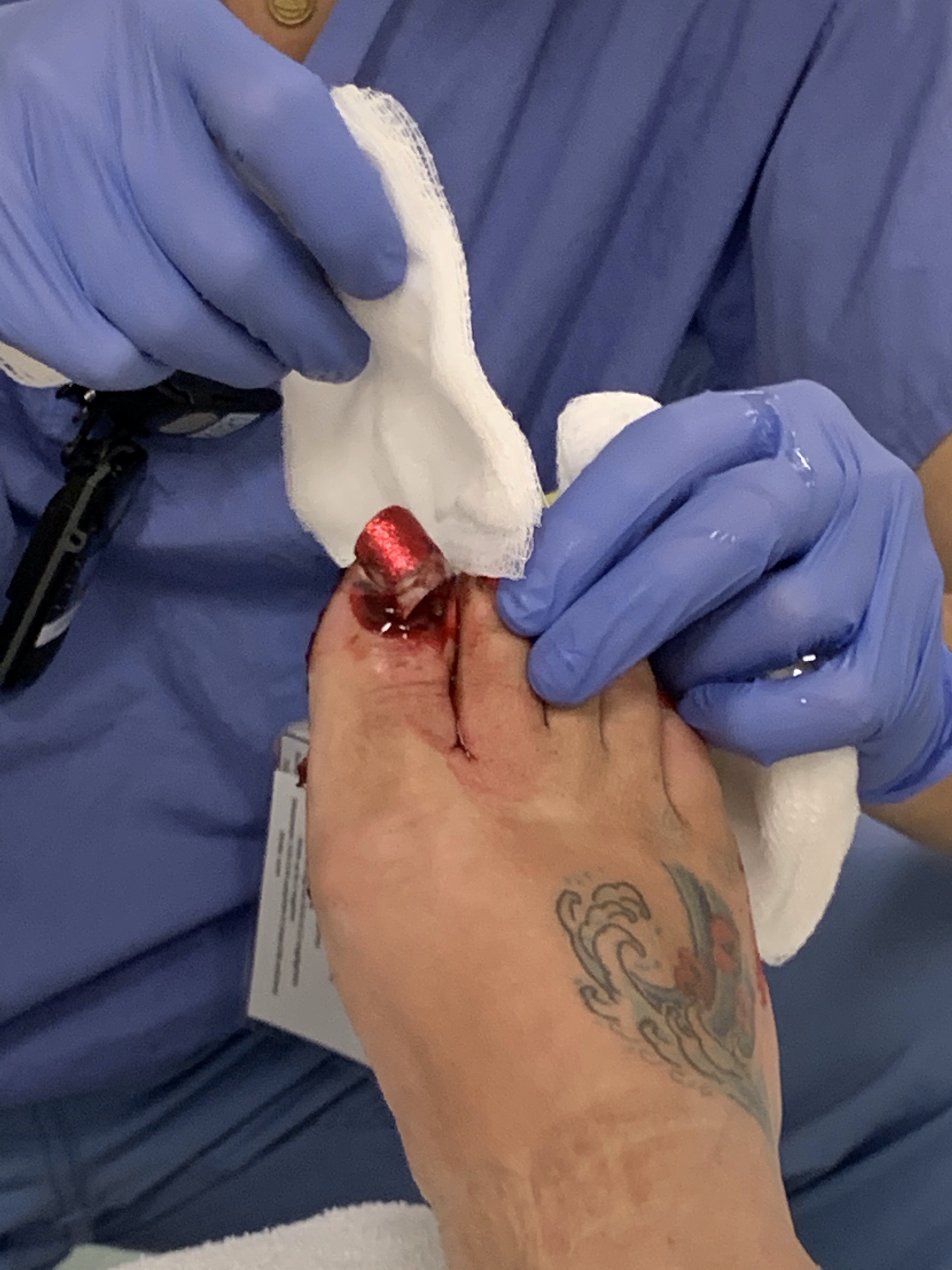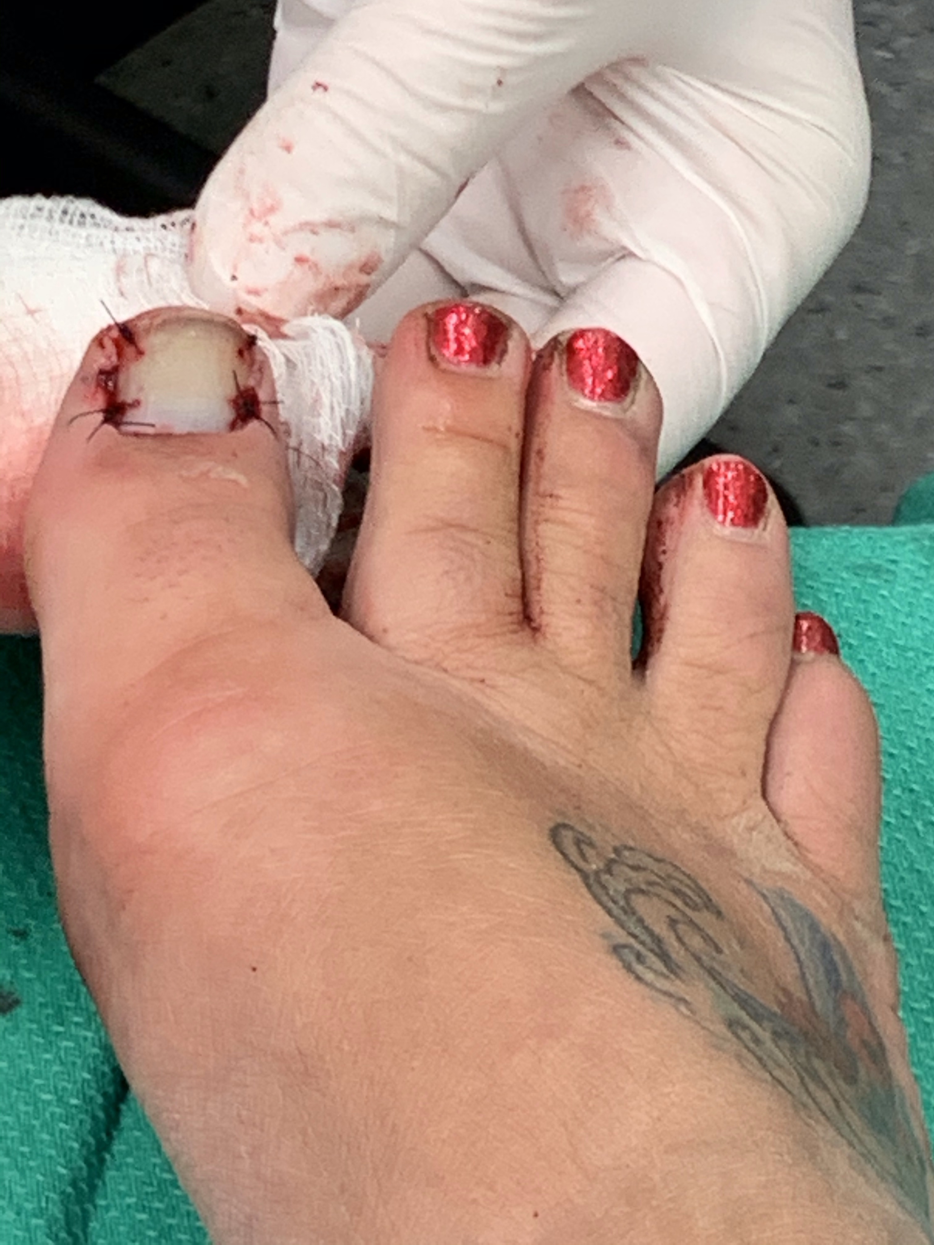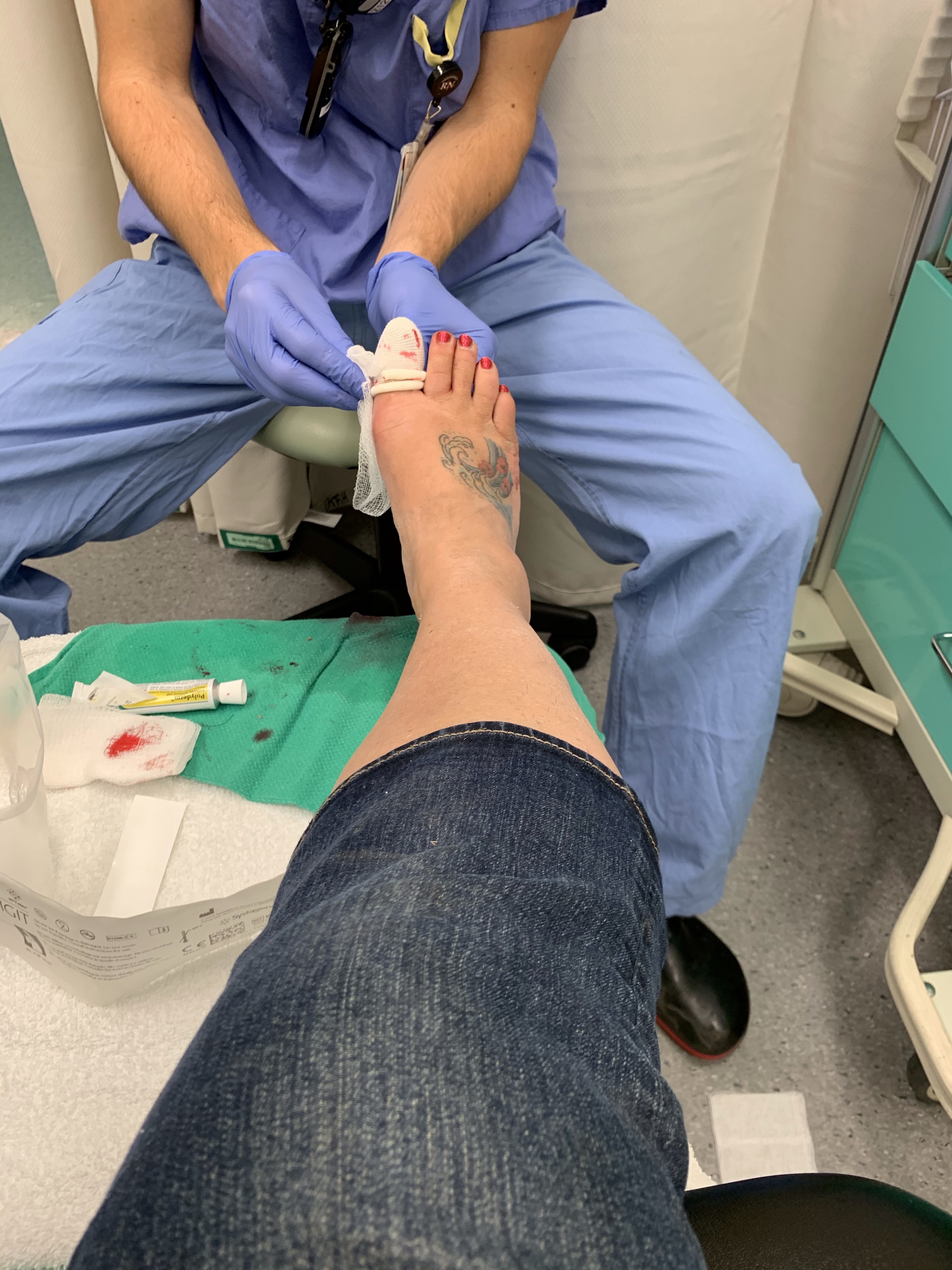 Set out to do some gardening. Got my whole bulb bed redone and then everything went sideways. The previous owners left a very heavy concrete lion. It has been a topic of conversation but I wanted it moved. I picked it up and started moving it when suddenly it fell sideways onto my foot. It was super painful but I have a high pain tolerance so just lifted it off to find it had done serious damage which nearly made me pass out upon seeing it (stop reading now if you have a weak stomach)