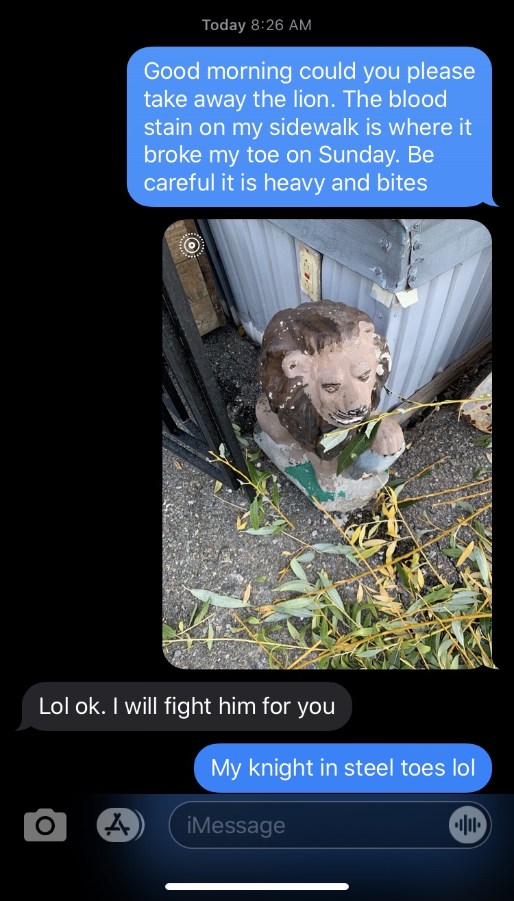 I had a decent sleep dispute the fireball attached to me. I have always been a hot sleeper and now I have a hot sock and boot to enjoy. It’s garbage day so I texted Matt. His response was the best!