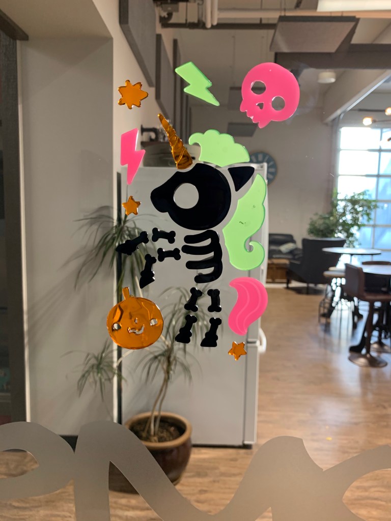 Keri picked me up, bless her heart. There really are so many sunny sides to this. I admit to general bitchiness for the first two thirds of today. Healing takes energy and I think the perfect day would be work, nap, work nap, repeat. I did hang my new clings from Ashlée and Ken. I may only remove pumpkins and keep up year round.