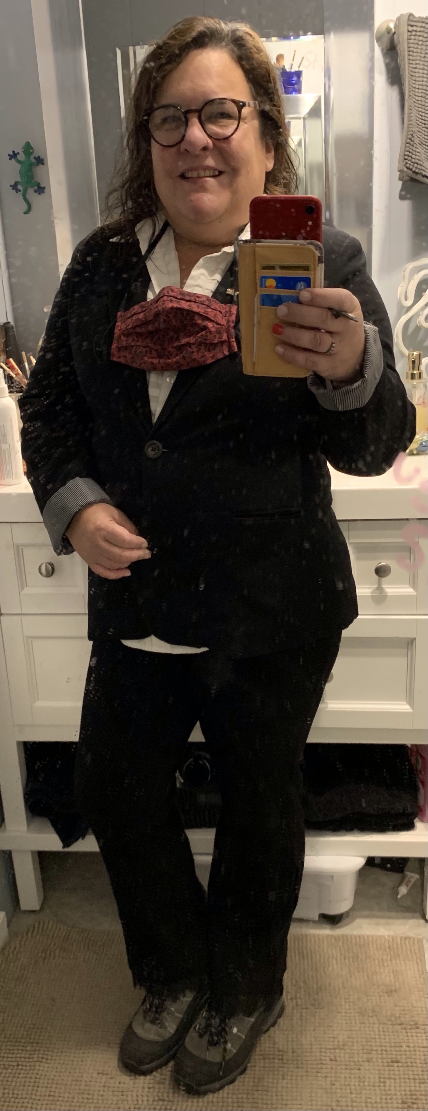 The better part of my day was spent on not making money stuff but that is ok. First off was dressing for the part of an agent for a scene I had to film. Trevor Lundy sent a two person scene to me, asked me to film my part and he would combine it with another’s. I don’t know who that will be so I look forward to the result. Took a few tries but I was pleased with the ultimate result and sent it off. Part way through the day my new order of masks showed up and I love them! They are the kind that have ear and neck loops. So great for keeping clean and handy. Eshakti for the win.