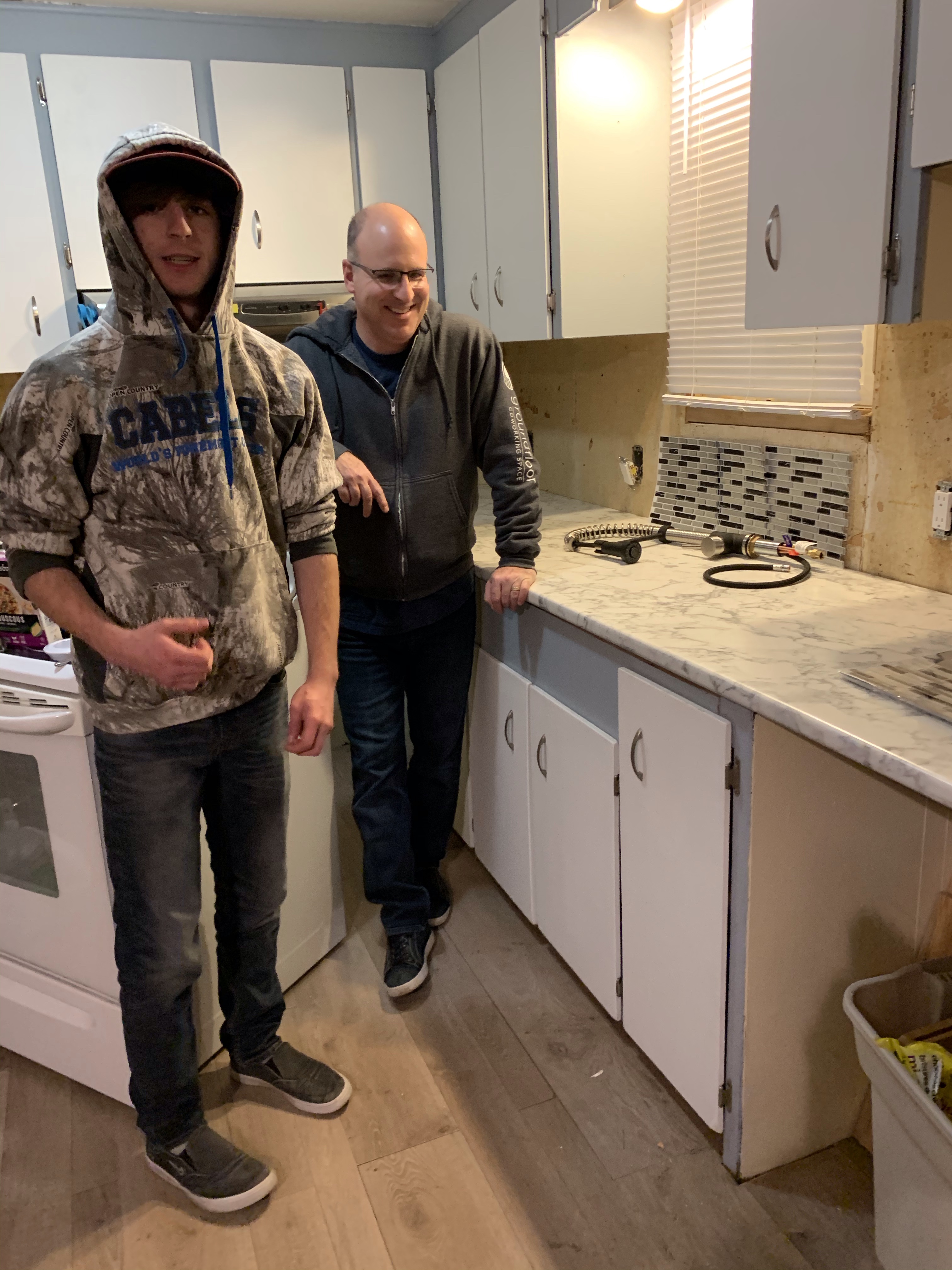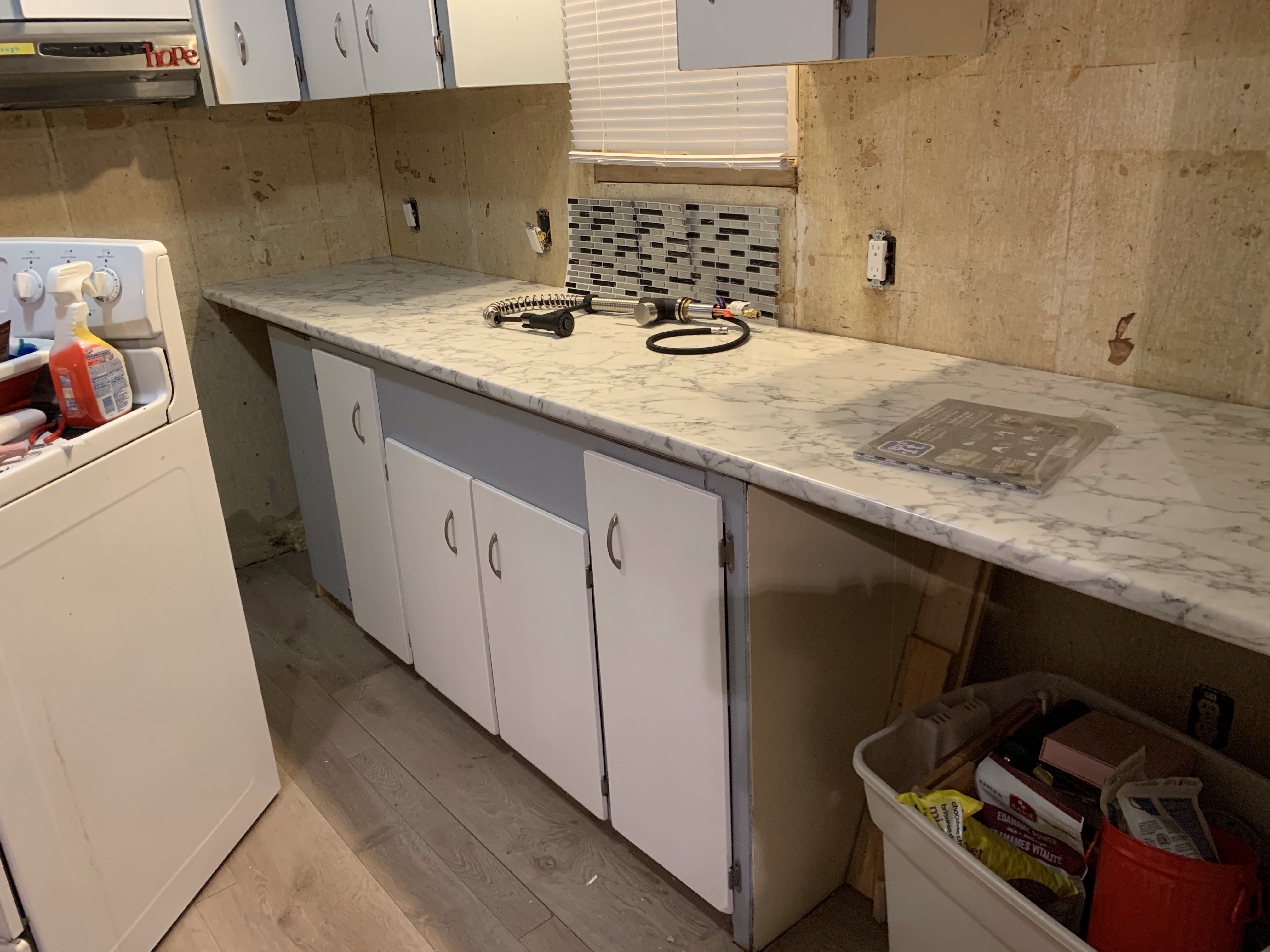 I removed the old top with some difficulty and made sure the new one would fit then texted Sean. The two of them came over again and we put it into place. It was an exact fit! I love the new look. Can’t wait to get my sink.