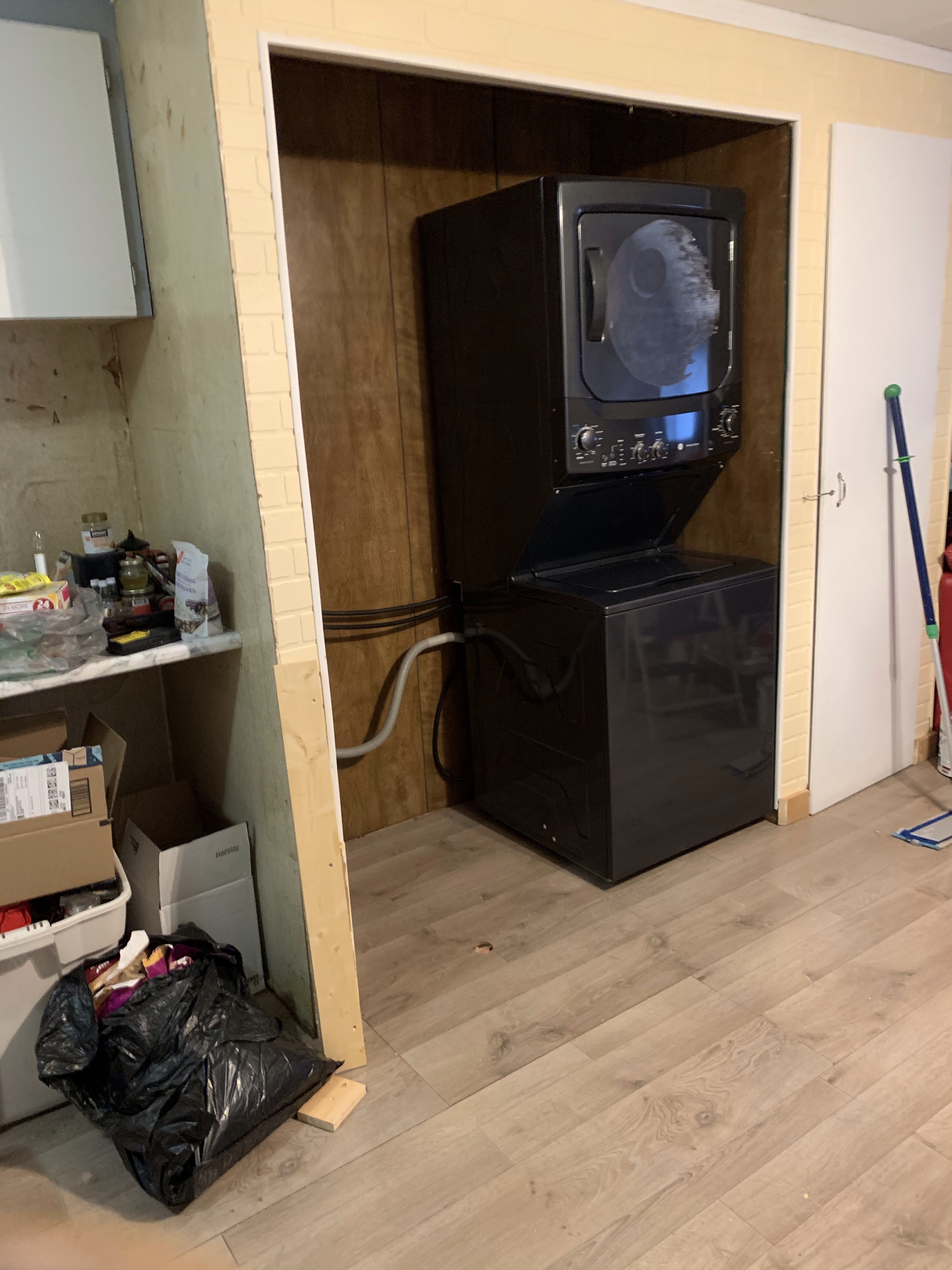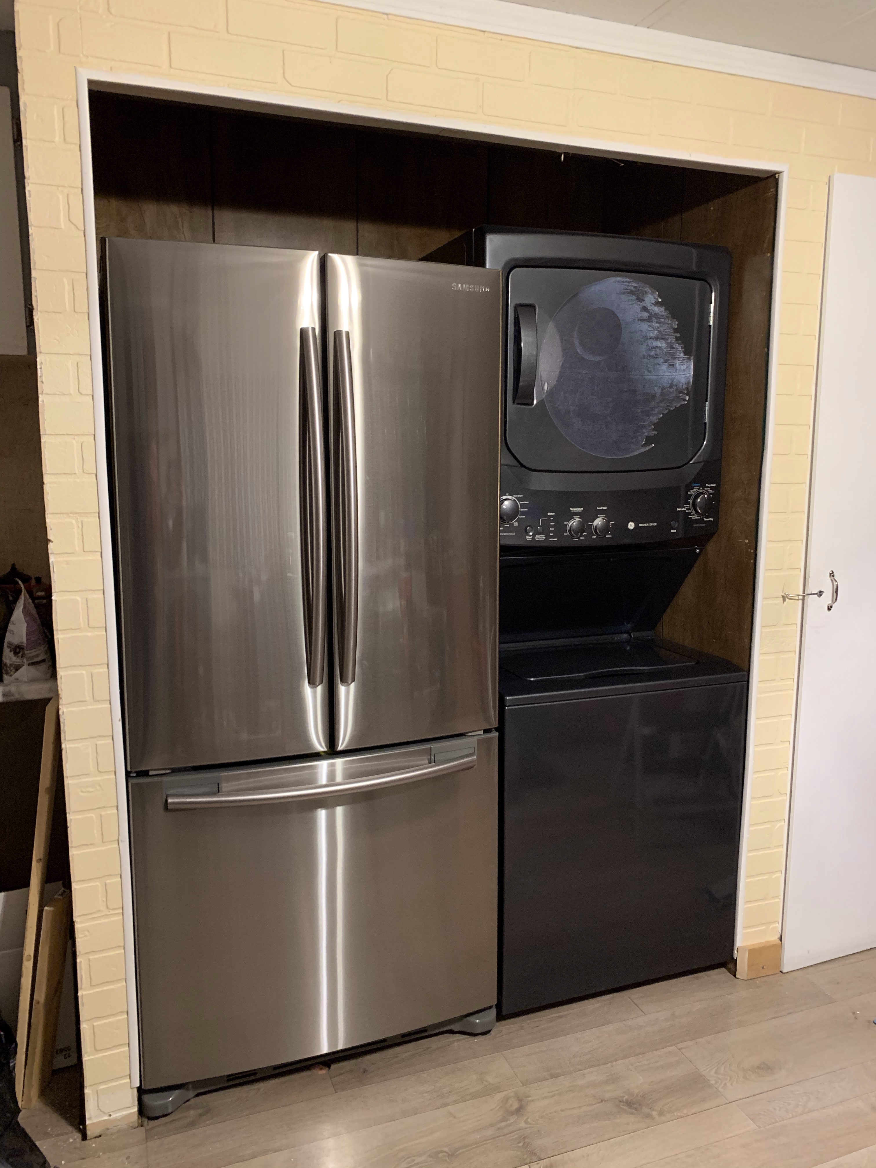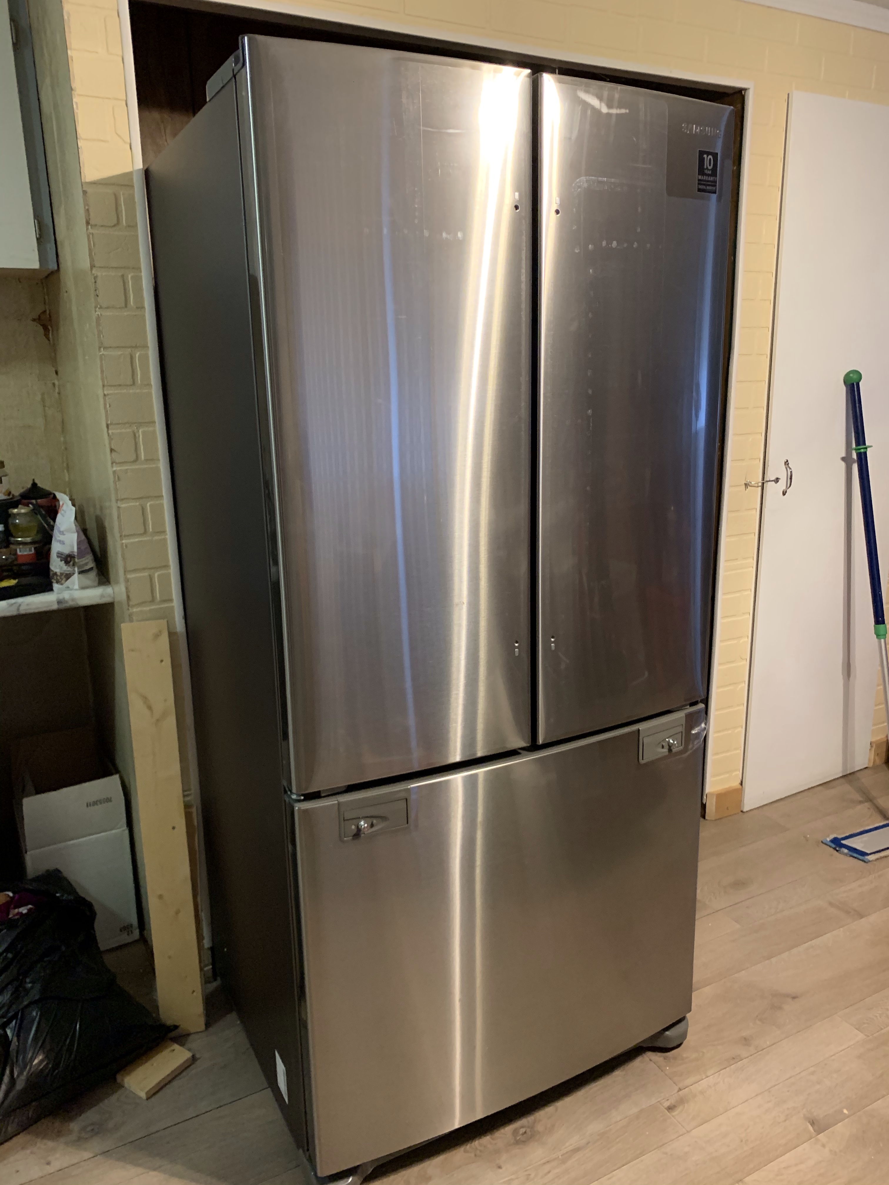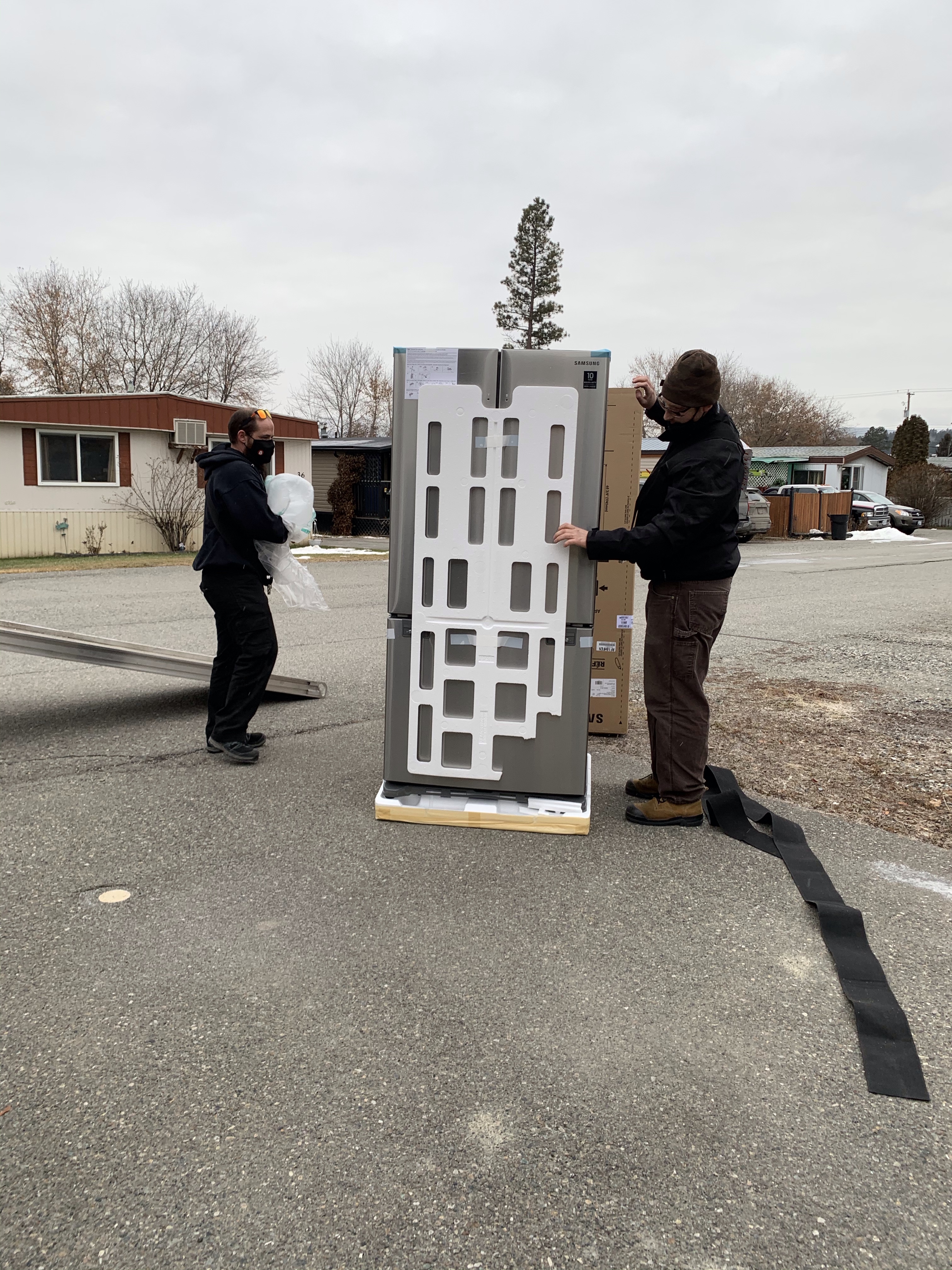 I was so excited when I got the call from The Brick that my fridge was available. They would be delivering it some time after 2. I got what I needed to done at work and then went to 1st Street Appliances whom I had bought my current fridge from and asked if they would like to come pick it up. They said yes which saved me having to deal with it and when The Brick guys showed up they brought it out first. It really is amazing how they hook up the strap to their harnesses and bring in appliances. It was too big for the rental truck they were using though so they had to lay it down which meant I couldn’t plug it in right away. It just exactly fits the space and I am thrilled with it. I gave the drivers big chocolate bars as a tip.