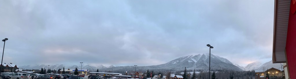 In the afternoon I headed to Fernie for a Mystery Shopper gig. It was a beautiful drive and the roads were bone dry. The snow on the mountains and the clouds hanging like crowns on them made for an incredible experience. Once I got there I did the tobacco assessment and the young man at the counter passed with flying colours. I had to stop and take a photo.