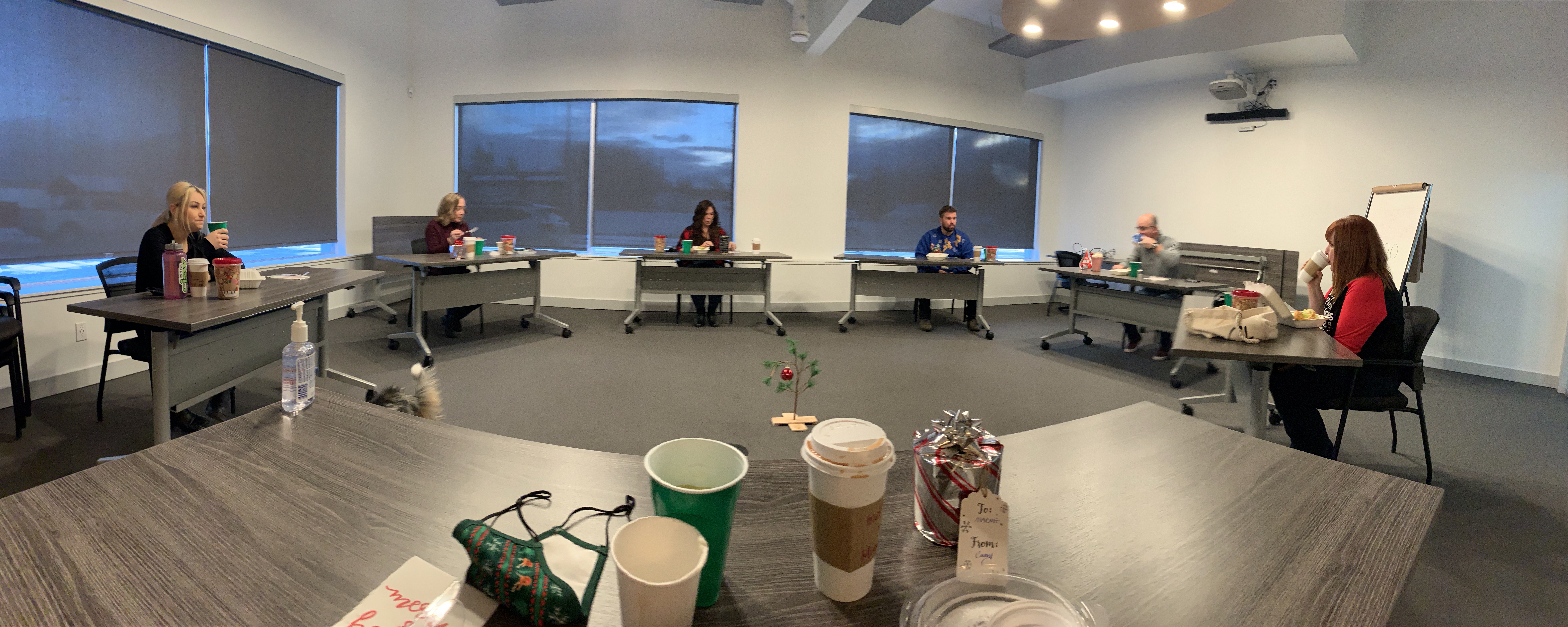 This morning started so lovely with a CFEK breakfast together in very distanced fashion from Hot Shots. Stuffed French Toast and mimosas along side a Chai Latte. So good!! I gave everyone the treats I’d made and Cindy had given each a lovely candle for our new offices. It set the mood for a lovely and productive yet relaxed day.
