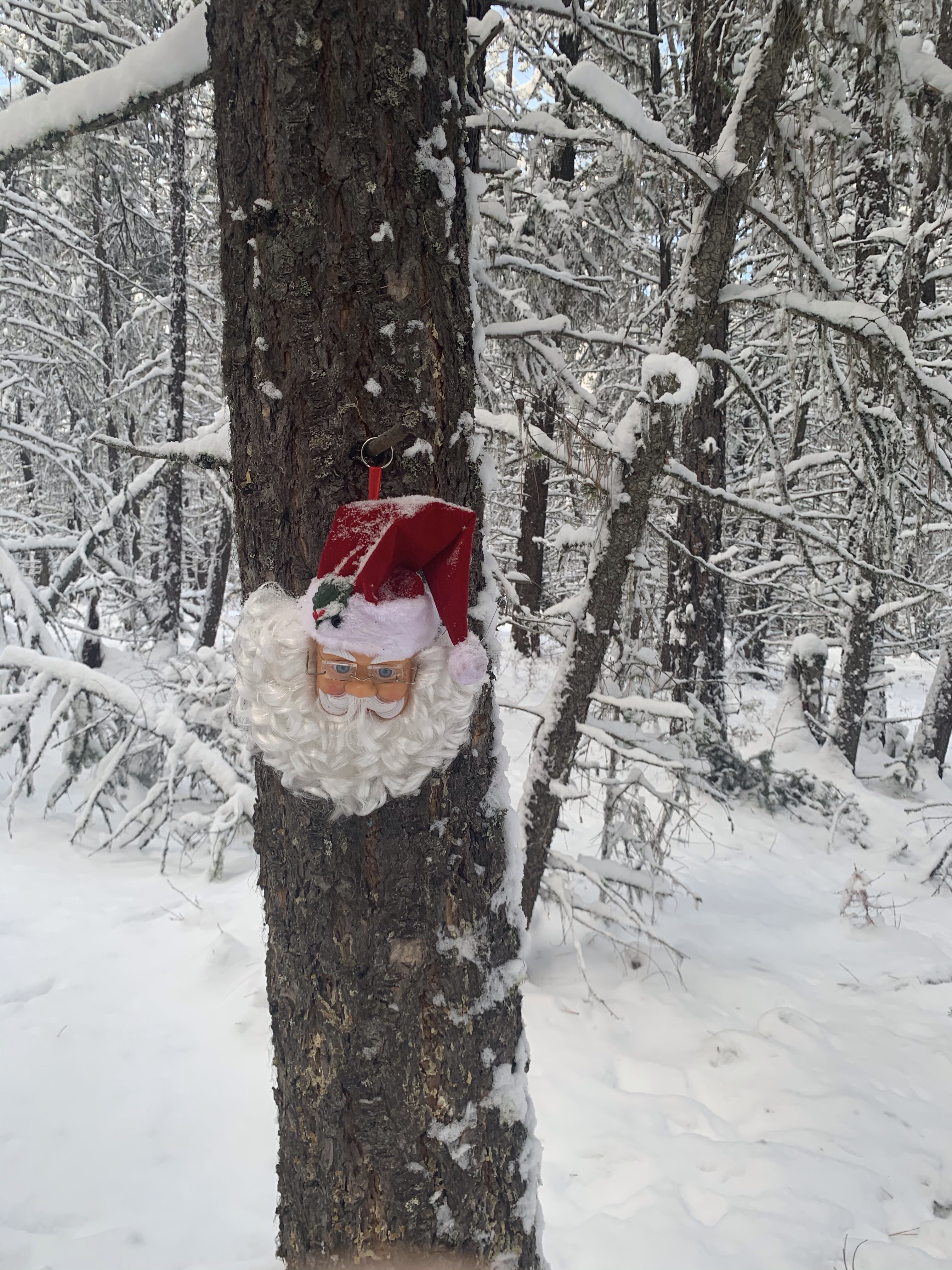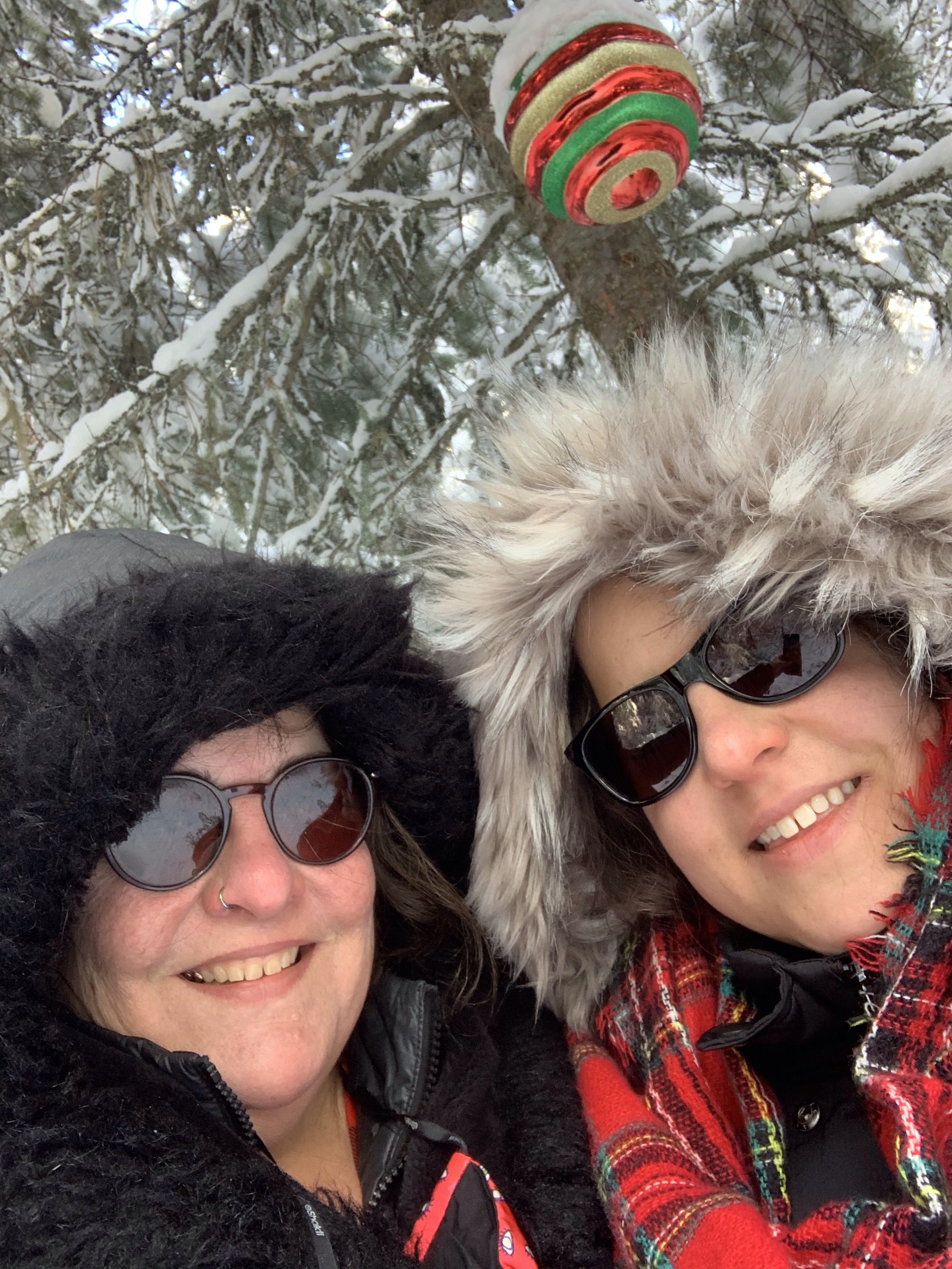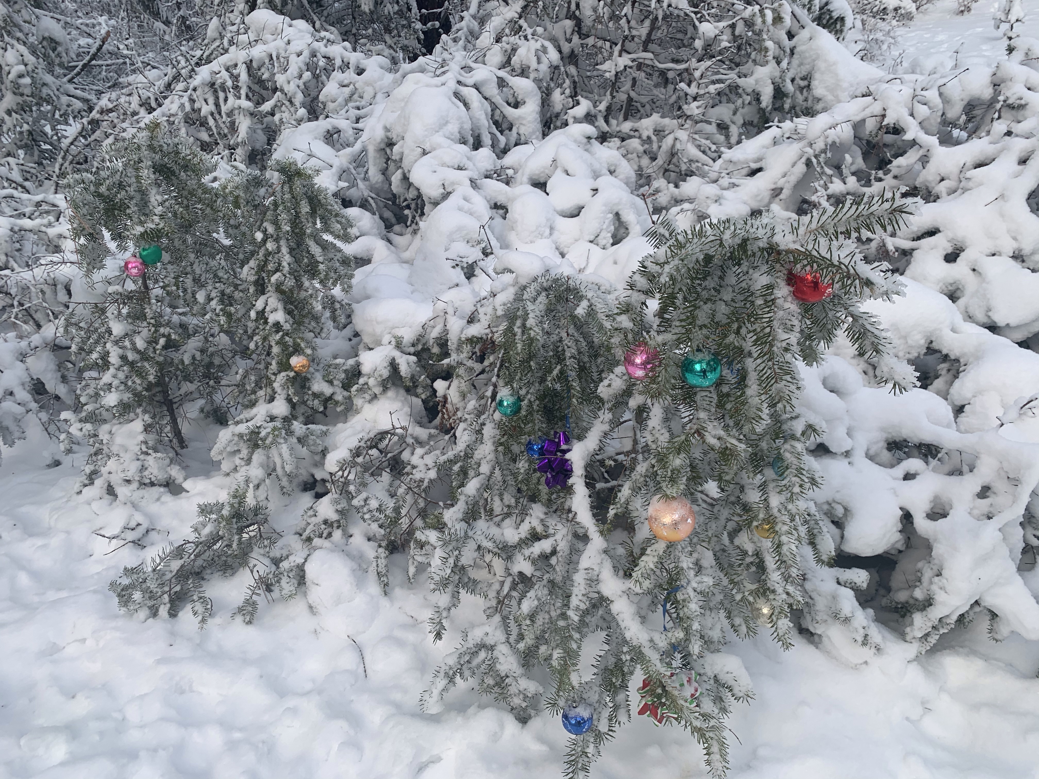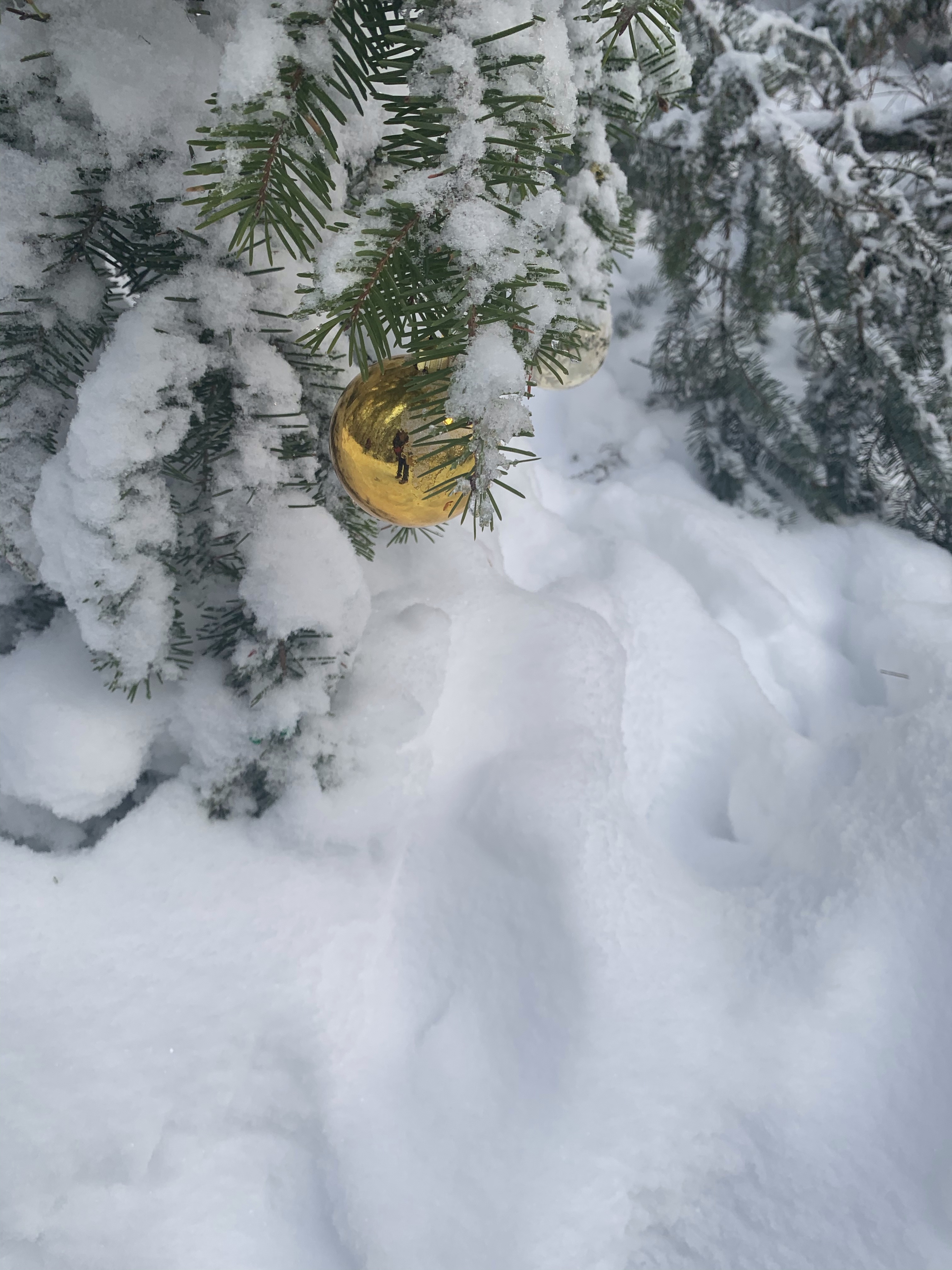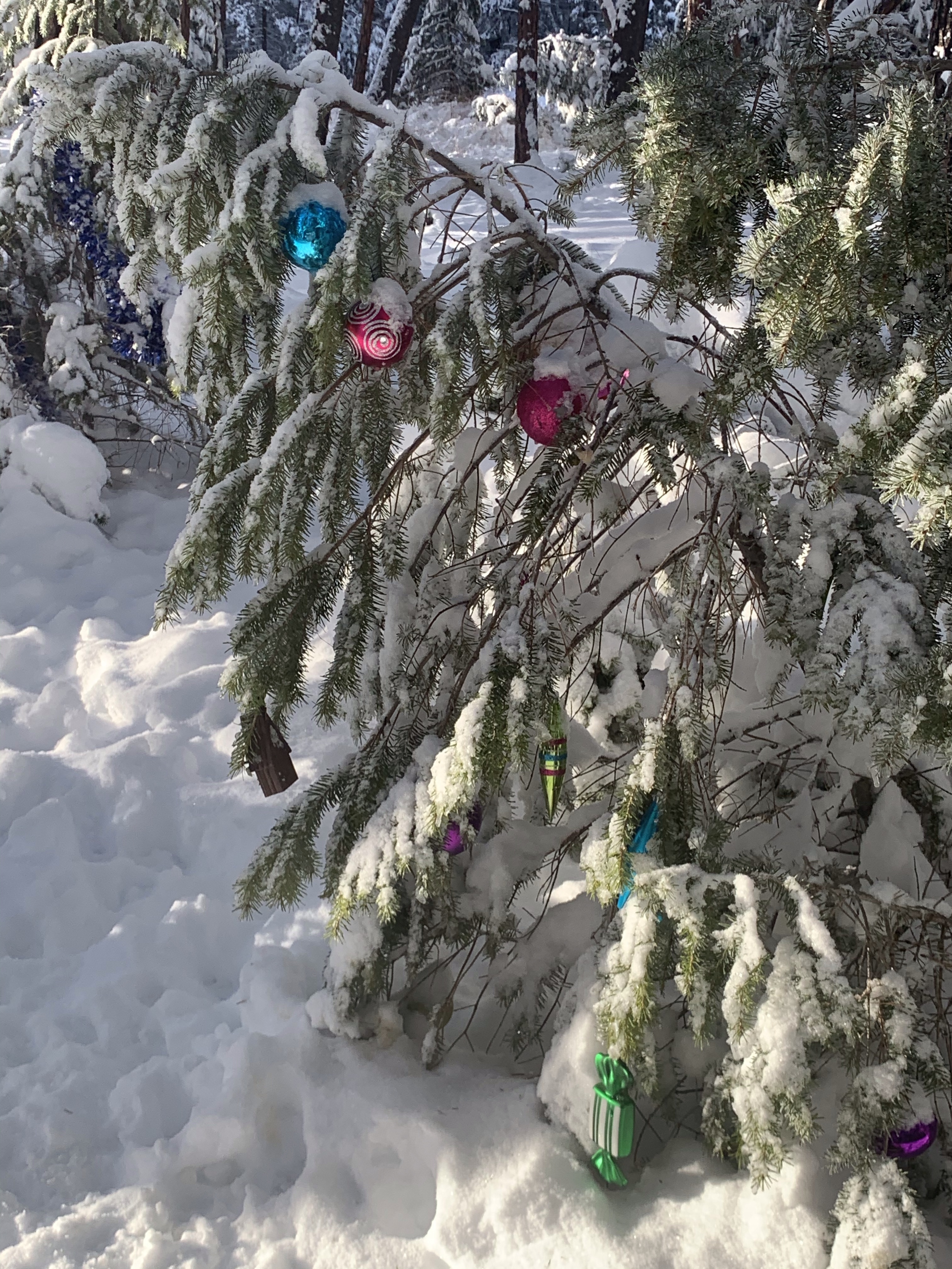 After falling I really wasn’t sure I wanted to go on a long unstable walk but I am sooooooo grateful I did. I had seen pictures and knew of it but never really understood how great it was. Whatever the number of people who come together to decorate and maintain a long stretch of the community forest trail, I am grateful to every one of them. There were handmade, vintage, store bought, sparkly, reflective and so many more. The weather had wreaked havoc so there were broken trees and hidden in the snow bits but it just added to the treasure hunt. So incredible. Ran into three couples we knew and all but two groups/singles we passed said hello, happy holidays, etc. It was painful for me as my hip really started to ache but I was able to push it aside and enjoy the winter wonderland. An hour of rest air and sunshine as good for the soul.