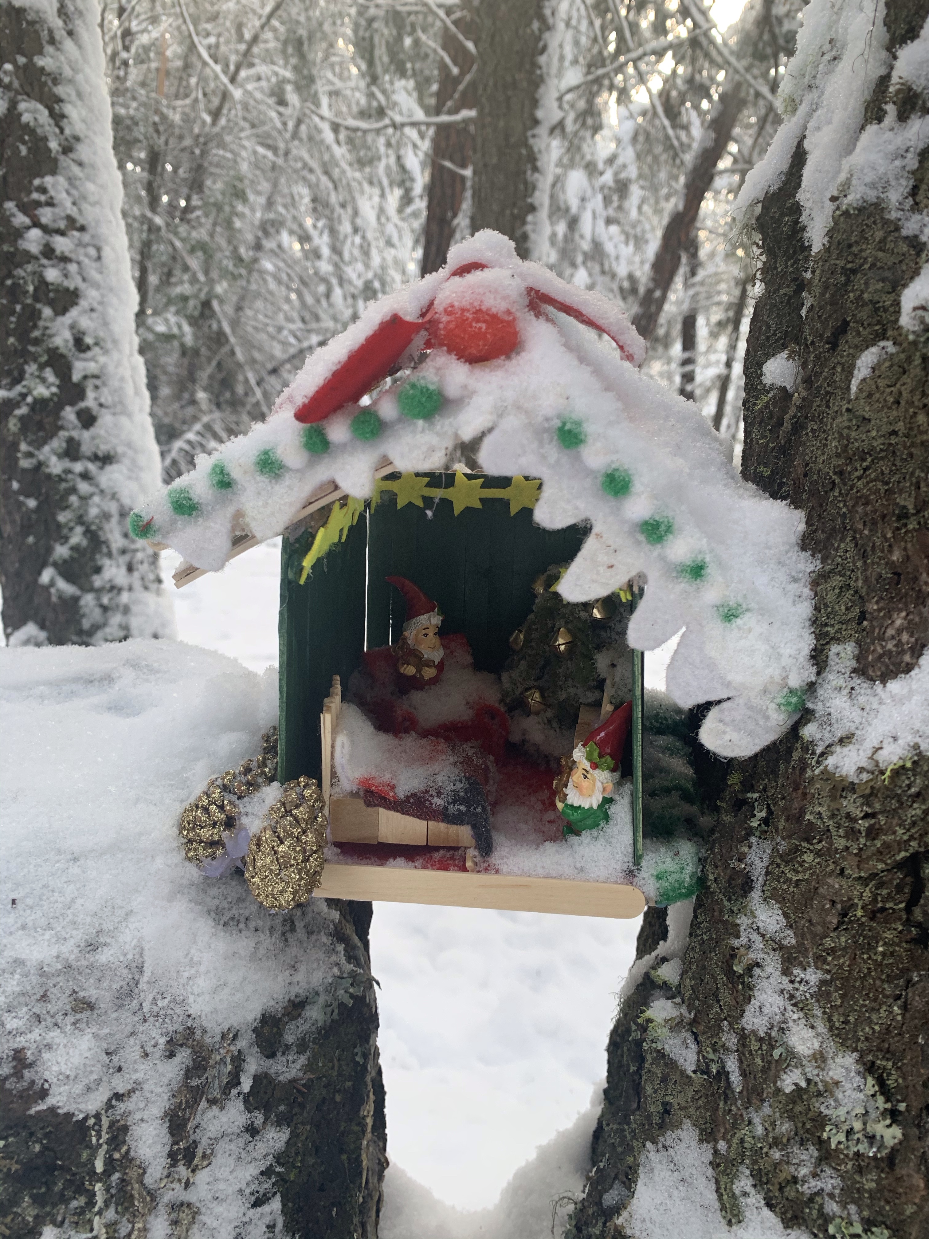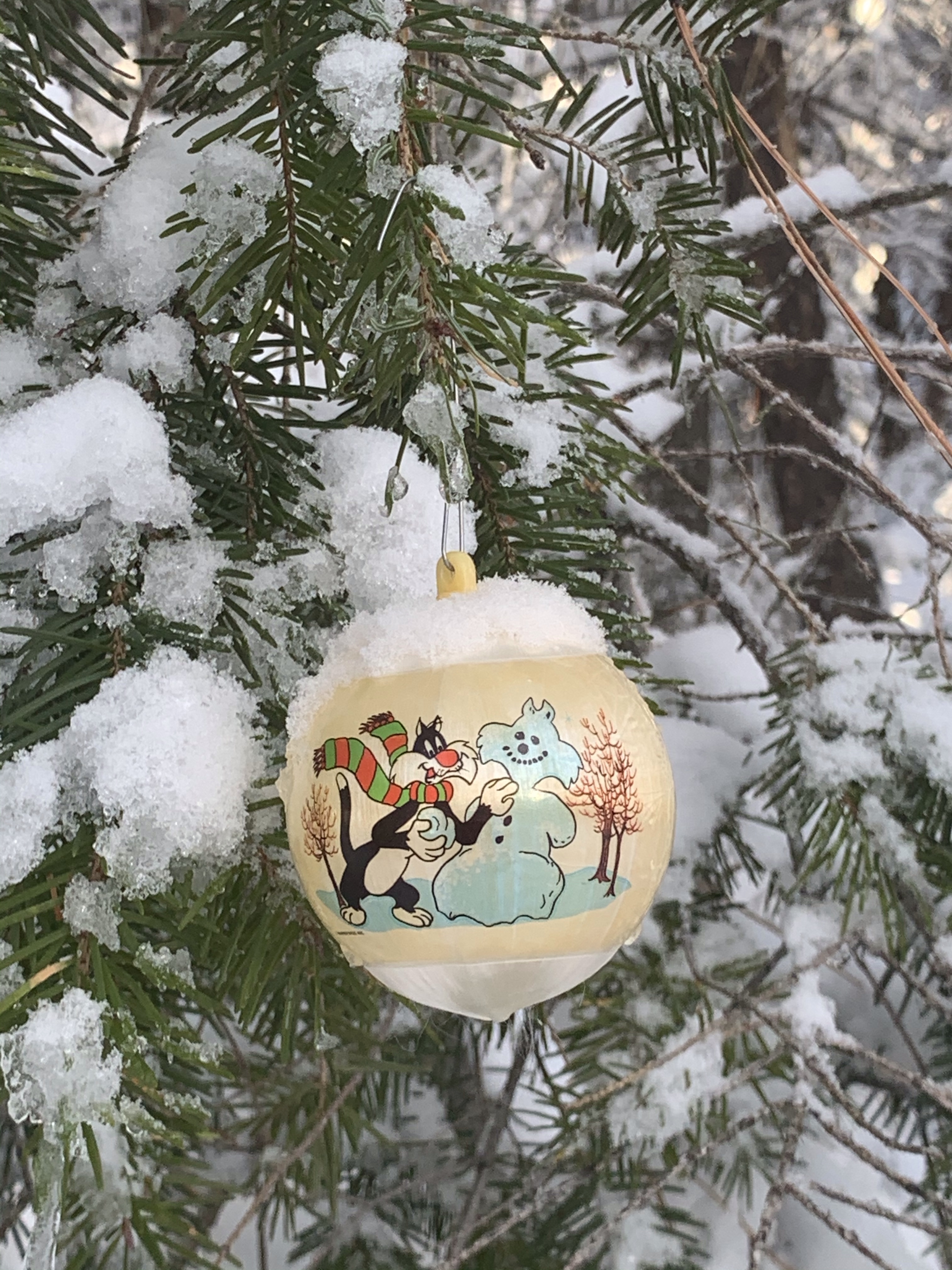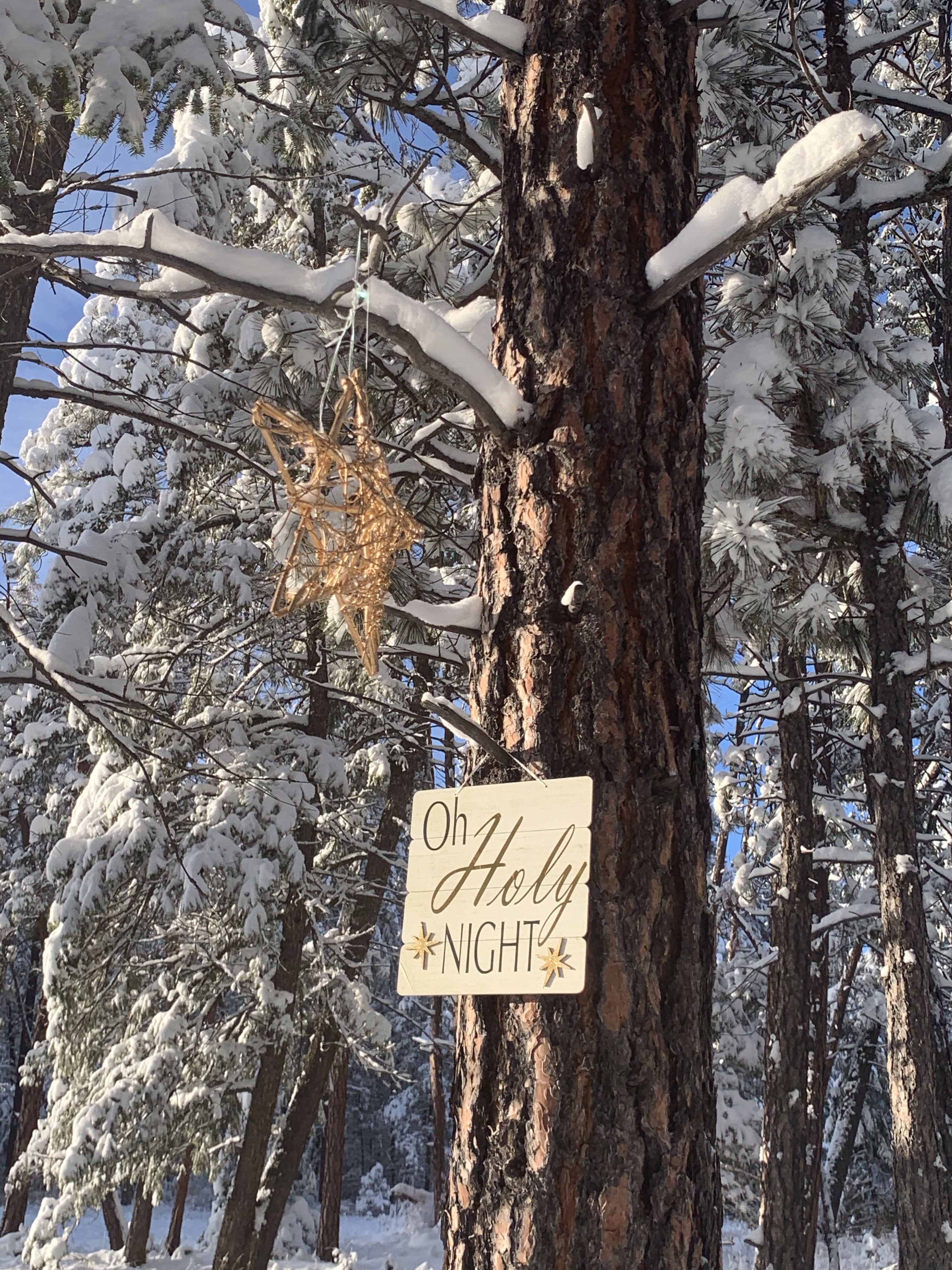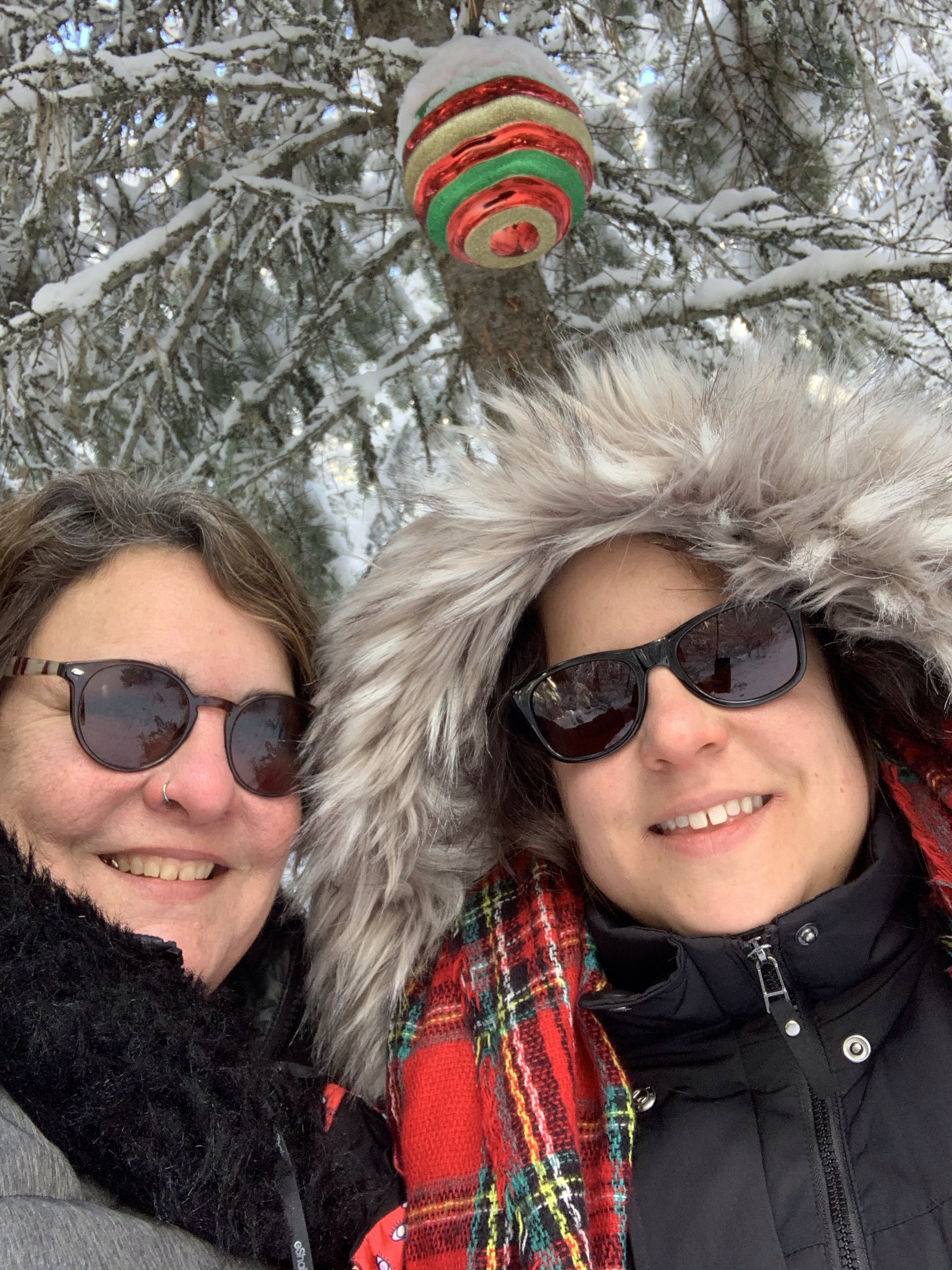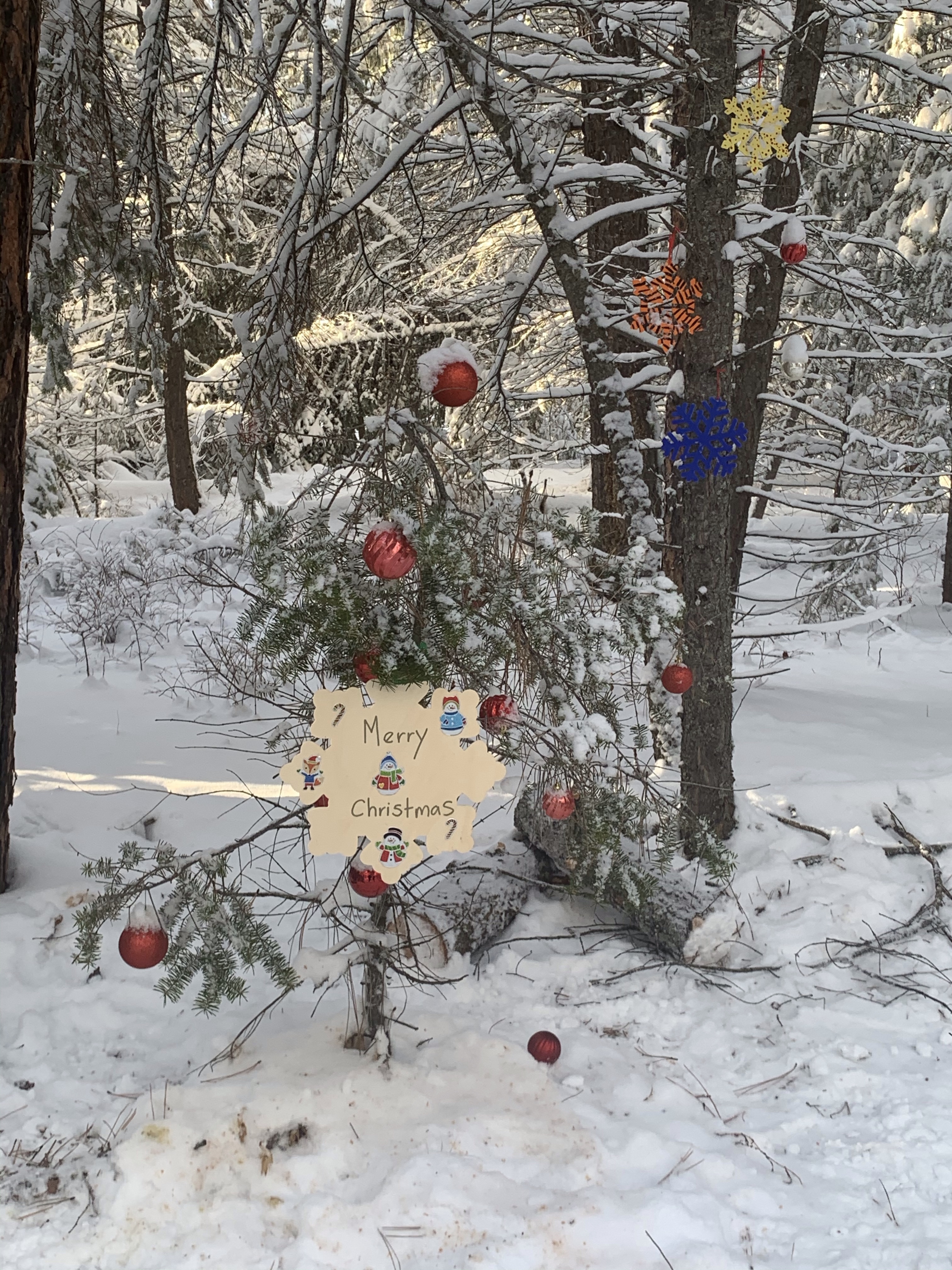 After falling I really wasn’t sure I wanted to go on a long unstable walk but I am sooooooo grateful I did. I had seen pictures and knew of it but never really understood how great it was. Whatever the number of people who come together to decorate and maintain a long stretch of the community forest trail, I am grateful to every one of them. There were handmade, vintage, store bought, sparkly, reflective and so many more. The weather had wreaked havoc so there were broken trees and hidden in the snow bits but it just added to the treasure hunt. So incredible. Ran into three couples we knew and all but two groups/singles we passed said hello, happy holidays, etc. It was painful for me as my hip really started to ache but I was able to push it aside and enjoy the winter wonderland. An hour of rest air and sunshine as good for the soul.
