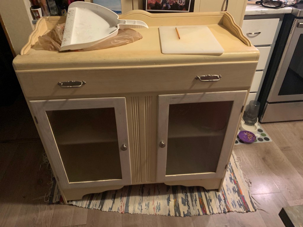 I am now writing my 299th blog in a row. That may be more than anything else I have ever done every day in my life. One of these days I will read through them from start to finish. I will have to refrain from editing. I know my spelling and grammar goes downhill when I am tired or upset. Today was another day of tasks between movies. At 1, Roger and Gene picked me up and all masked up we drove to Meadowbrook, the other side of Kimberley to my Aunts to pick up a cabinet she had given me when I had my house back in 2017. Before I could arrange picking it up I sold my house and it didn’t fit any where after that. I was surfing Wayfair looking for something to hold my glasses when I remembered it. It needs some love but I can make it work and it is a good size for what I wanted.