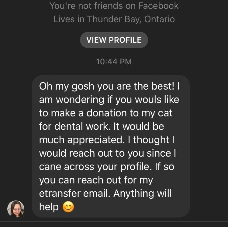 just as I was about to shut down I noticed a strange message via Facebook. How terribly odd as I have never heard of this person before.