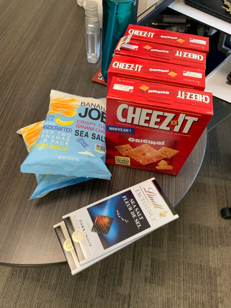 I am enjoying my routine of this week. Treadmill , shower, off to the office, work quietly and steadfastly at many tasks, return home to catch up with a loved one or friend, make a nice meal, do a few chores and then settle in with tea or bubbly water and watch my shows. The morning involves watching WandaVision as I walk and the evening, Bridgerton as I sit. WandaVision got interesting today as I saw things come together that I thought may be true and Bridgerton got downright steamy. I enjoyed bits of my snack pack that arrived today as well. I think I will make more nuts and bolts, now that I have some cheez its.