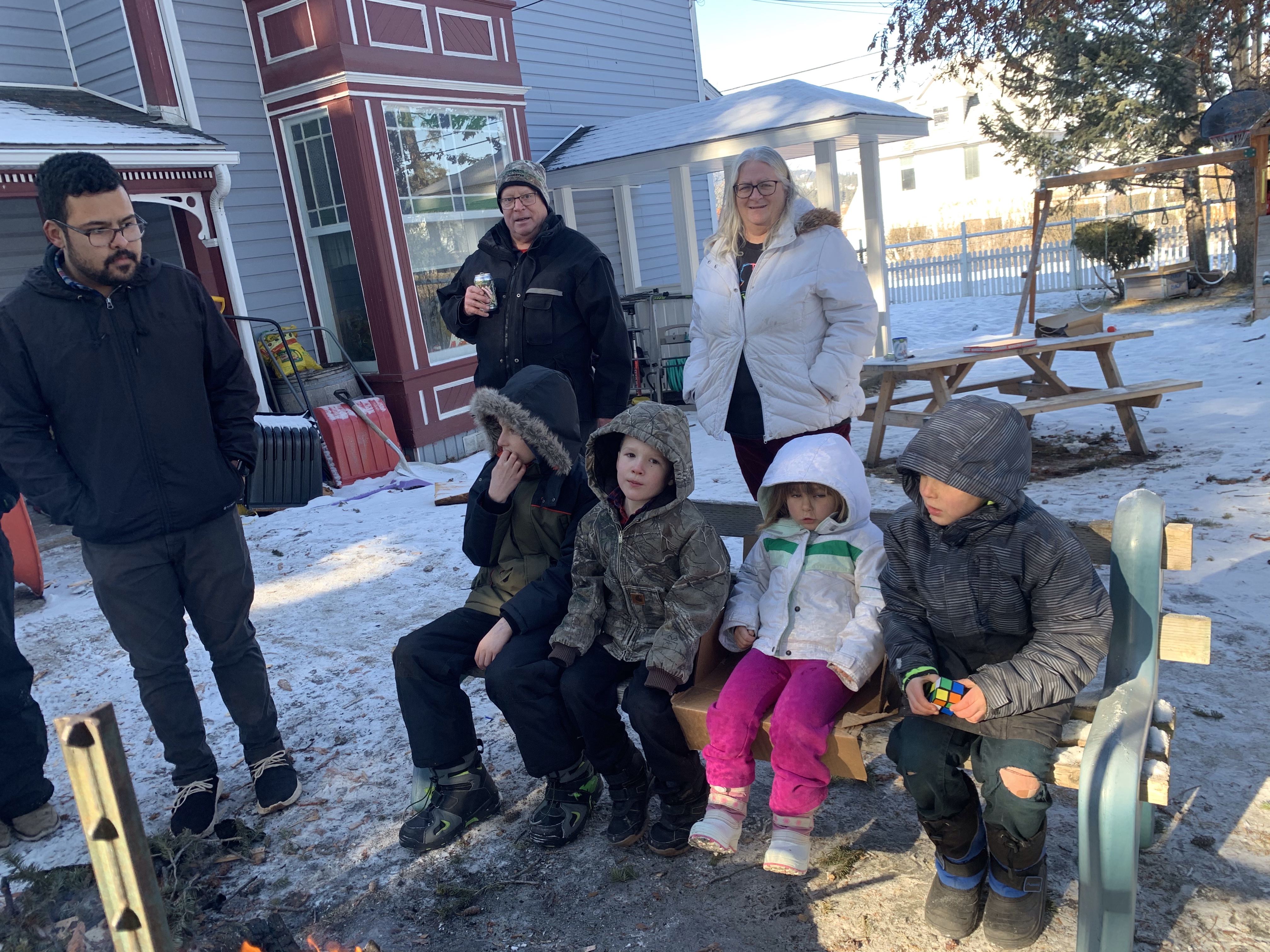 Starting one’s day off at 6:06 am on a Sunday is not always my favourite but when you open your eyes to a granddaughter snuggling in with you, all is right with the world. It has been a long time since I have had snuggles and Emmy is just a treat. I can honestly say, I had a great day. The three of us had breakfast, played Go Fish and Mario Wii together. Laughed a lot, especially when Miss E told a joke which always ended with wacka wacka. She made chocolates and played with all the toys in the tickle trunk I made for her Aunties many years ago. After lunch we all went to Rae and Roger’s to visit around the fire outside. We took a few pictures and had roasted marshmallows and then donned masks and had their new exchange student, Max come down as well. He is in quarantine but is allowed to be outside, appropriately distanced. It was the first time our whole family including Bill and Deanne, Ashlée and Jake has been together probably since Christmas 2019. It was lovely to have a visit but also really cold. After Jake left to take Emmy home I went for groceries and them came home to make dinner for us and Ashlée. We have all agreed to stay appart from others for the rest of the week as we are able. I ‘twas great to spend time with them this evening. We ate, played crib and Ticket to Ride, laughed until Ashlée cried and just enjoyed each other’s company. Also made a batch of nuts and bolts but realized too late I was out of worstershire so I made a substitution with sugar, soya sauce and lemon juice. They turned out perfect great I think but could do with less butter maybe. They seem sweeter than they should be. Could have been the banana cheerios…. I remembered too late to purchase a ticket that tonight was the streaming of an encore presentation of a CCT show. I do have access to watch it as I had to convert it for the streaming company but am just too tired tonight. I shall leave this with a few pics from the day.